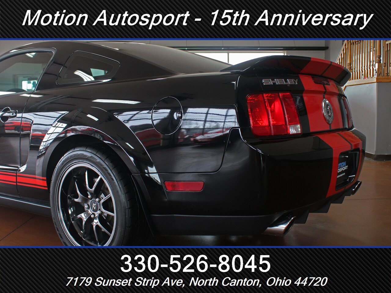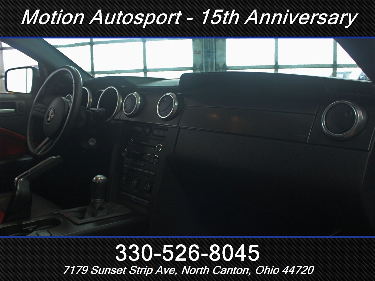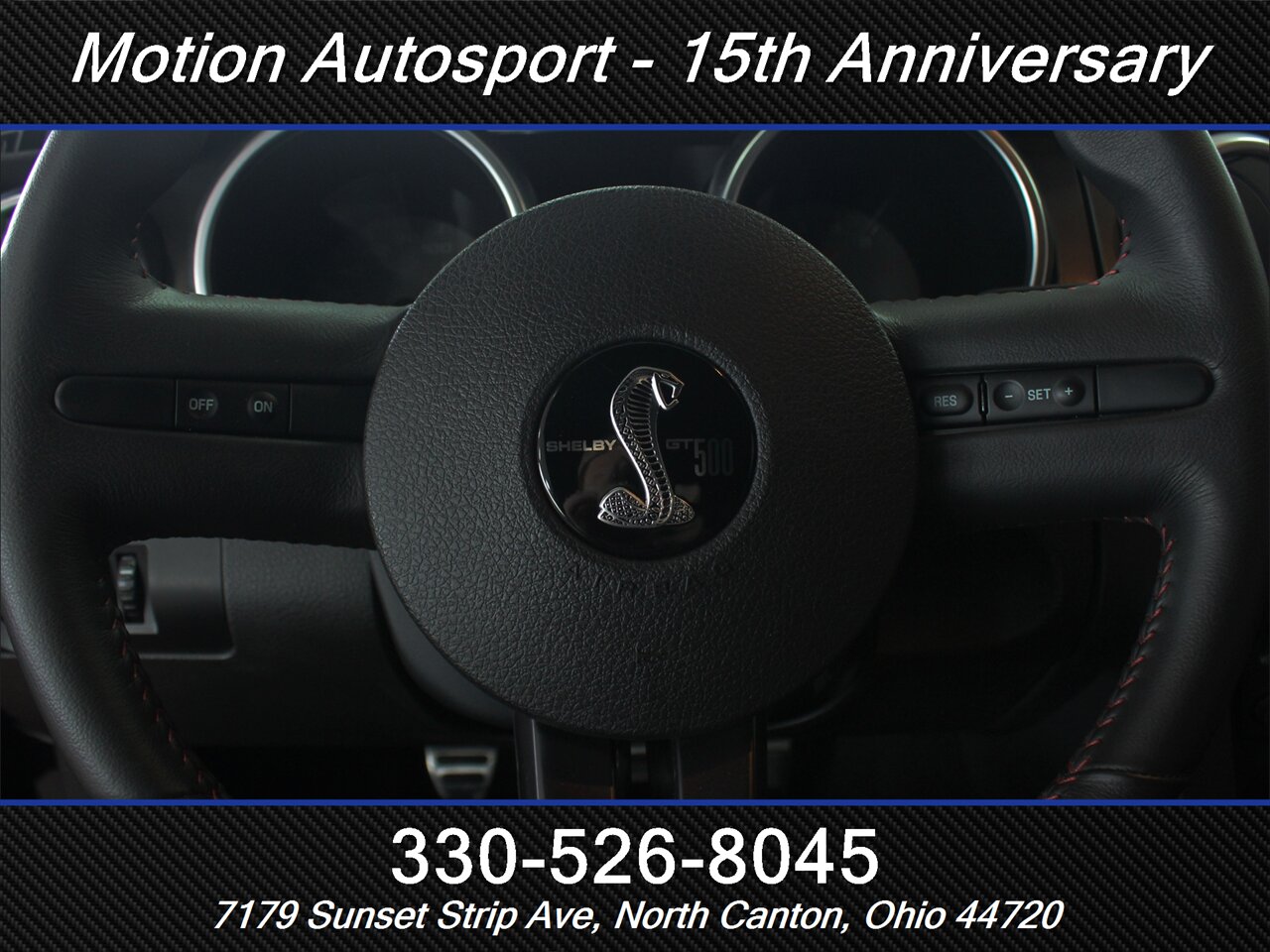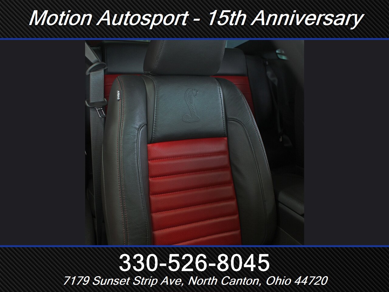 - Interior & comfort: Two-tone Charcoal Black/Crimson Red leather-trimmed sport seats with bolstered support, Shelby-branded accents and stitching, leather-wrapped steering wheel, power-adjustable front seats, and modern driver controls laid out for quick work on the street or strip.