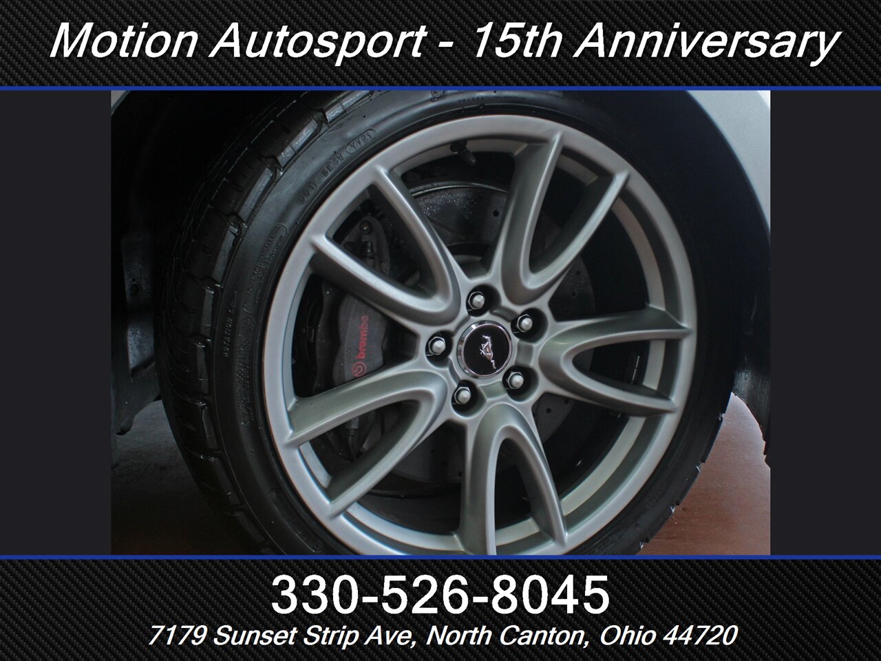 - Exterior: Sculpted Mustang styling in Ingot Silver Metallic, factory aerodynamic cues, and factory alloy wheels that fill the wheel wells with aggressive stance and presence.