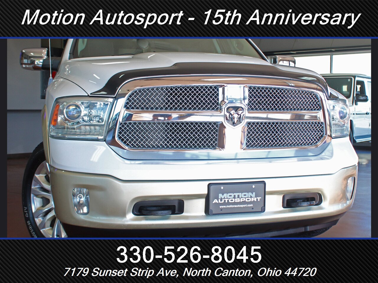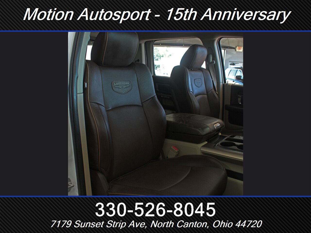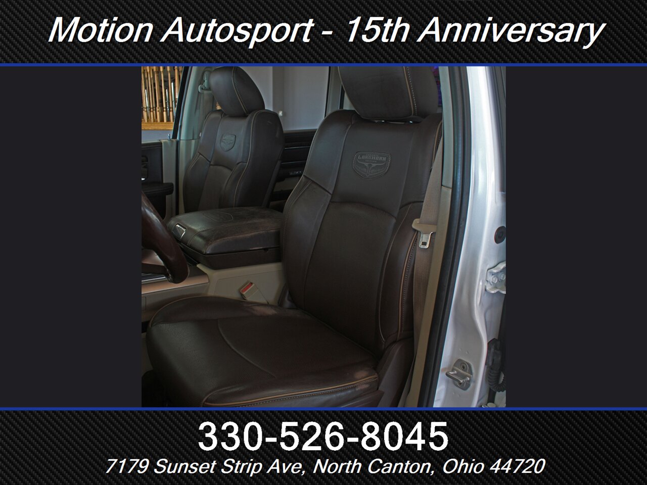 ONE OF THE MOST STUNING AND LUXURY TRUCKS OF THIS YEAR THAT I HAVE SEEN! YOU WON'T FIND IT AGAIN! Only 63,000 very well-kept miles! Full Laramie Long Horn package with hot and cold leather, moon roof, touch screen navigation with Uconnect, Hemi, fresh service with good tires and an impeccable Carfax! THIS TRUCK IS ABSOLUTELY INCREDIBLE! THE COLOR COMBO ON THIS TRUCK IS AMAZING! Ask us about our spectacular financing and extended service contracts. Internet price is dealer finance only. We take trades and ship vehicles nationwide. Visit www.motionautosport.com for 60 detailed photos. Call Ken for more details at 330-526-8045