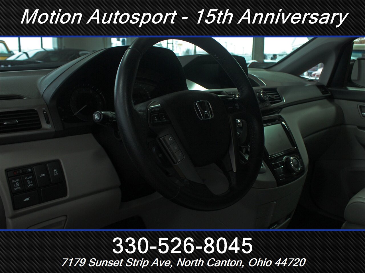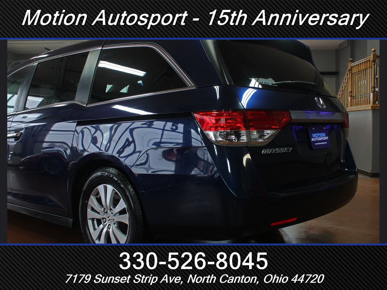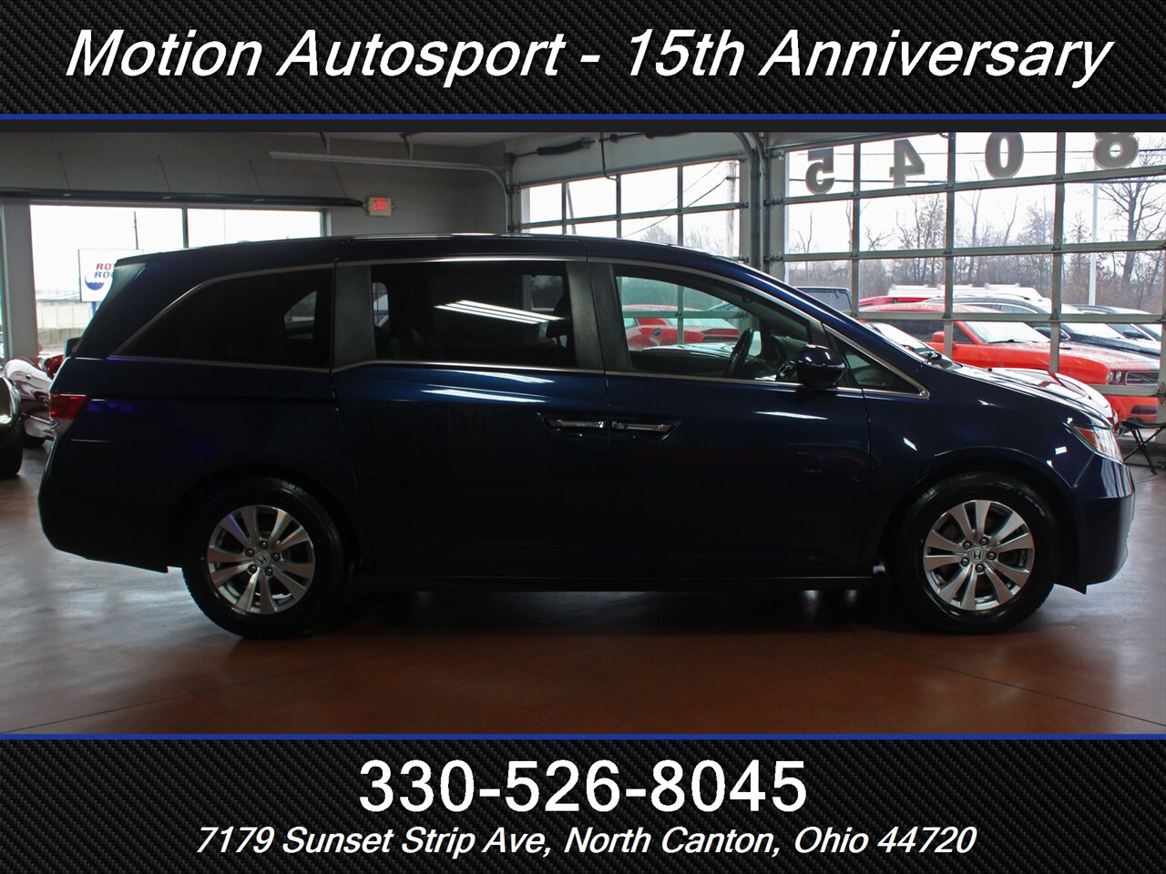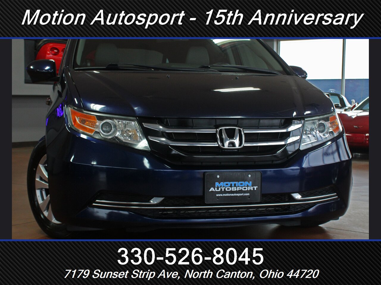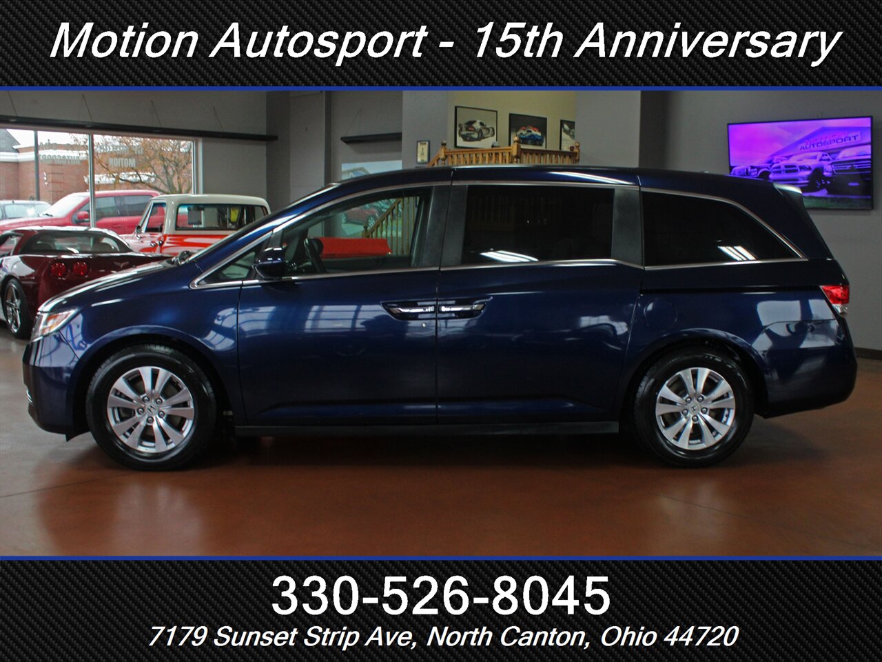Introducing the 2014 Honda Odyssey EX-L, a family-friendly minivan that perfectly balances style, comfort, and performance! Dressed in a stunning Obsidian Blue Pearl exterior, this vehicle is sure to turn heads wherever you go. With its sleek lines and elegant design, the Odyssey is not just a practical choice but a stylish one too!