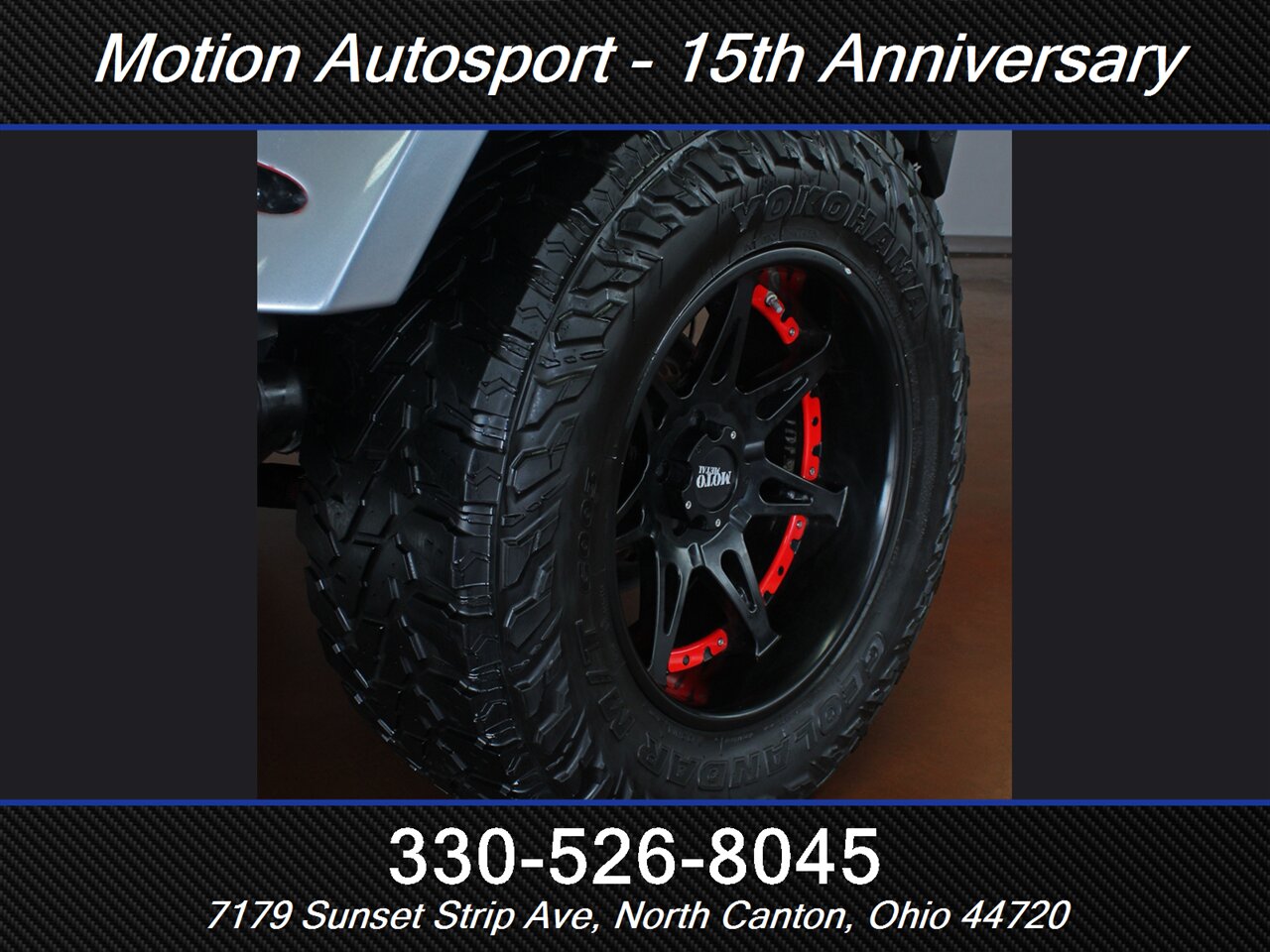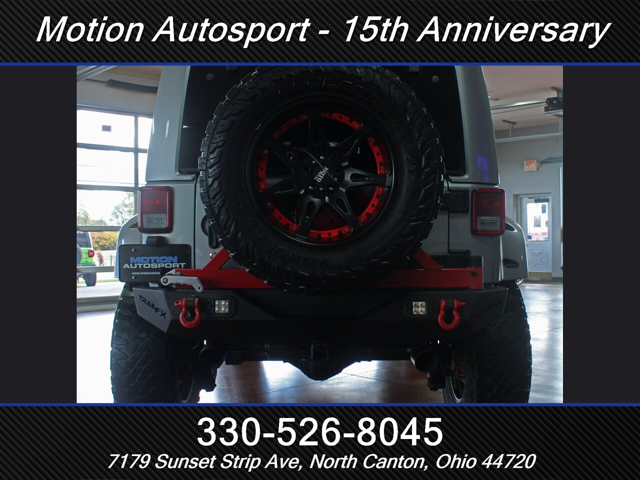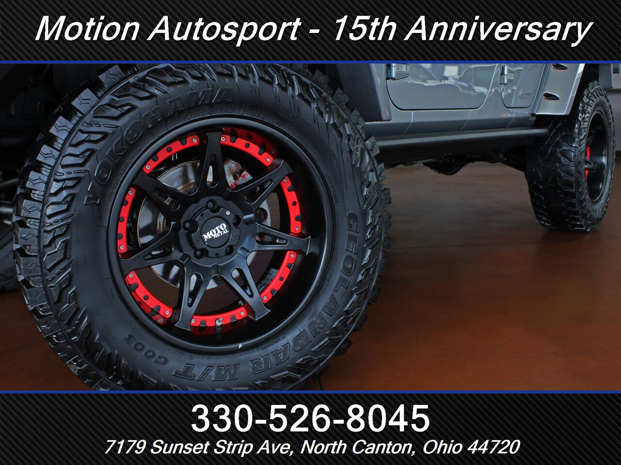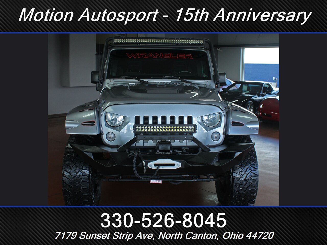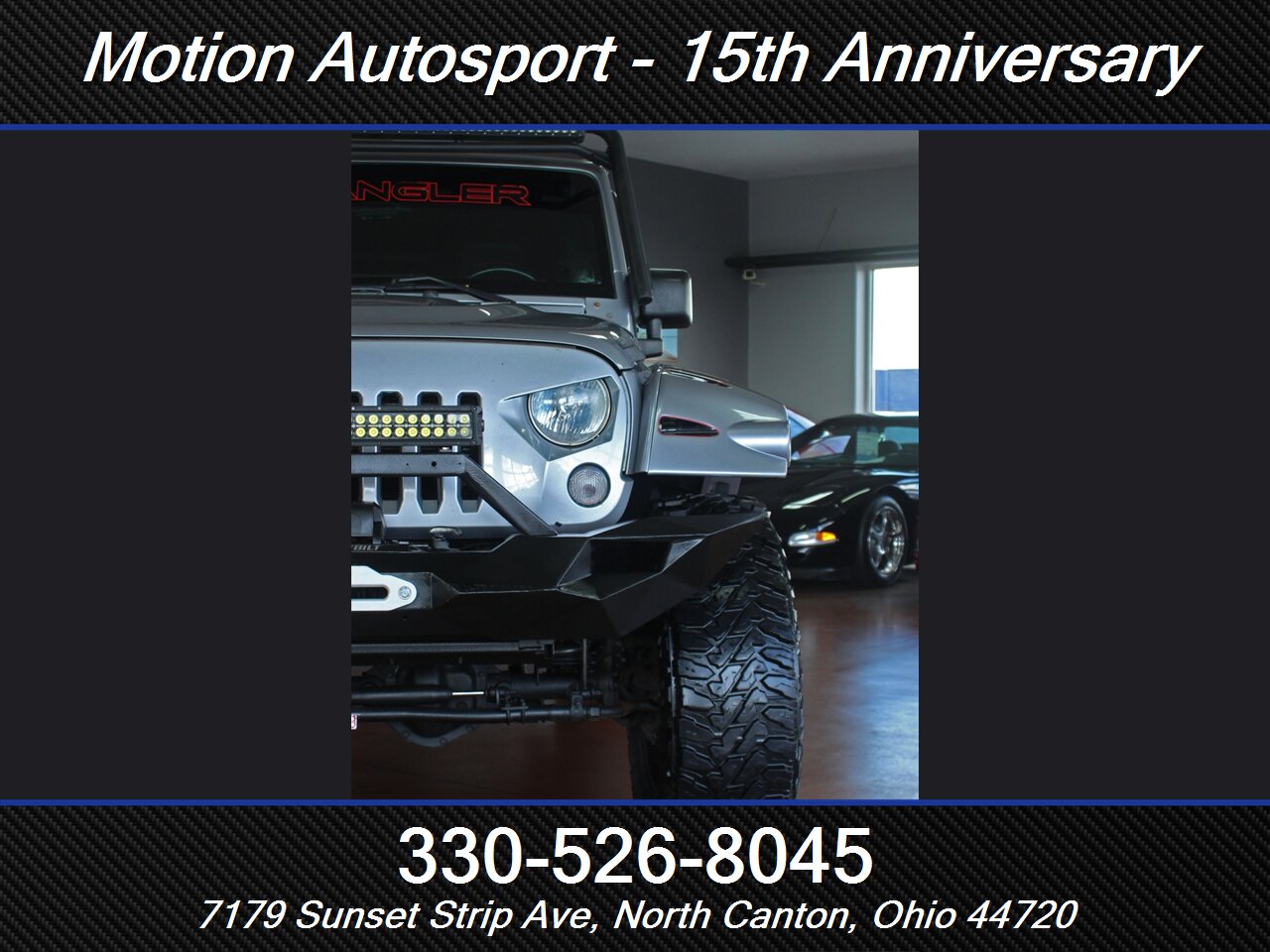Motion Autosport is proud to present this absolutely stunning, one of a kind custom Rubicon Unlimited! Rare Billet silver over black leather with factory painted to match hard top and over 17 grand in extras that will knock your socks off! Highlights include a full 6 inch Skyjacker lift kit, custom wheels on 35s(all five), rock slider off road rockers, off road bumpers front and rear, winch, painted to match pocket flare extensions, off road lights, front and rear lockers, fresh service and detail and more! Very clean! No rust! One of a kind! YOU CANNOT DUPLICATE THIS JEEP FOR ANYWHERE NEAR OUR ASKING PRICE! Ask us about our spectacular financing and extended service contracts. We take trades and ship vehicles nationwide. Visit www.motionautosport.com for 60 detailed photos.