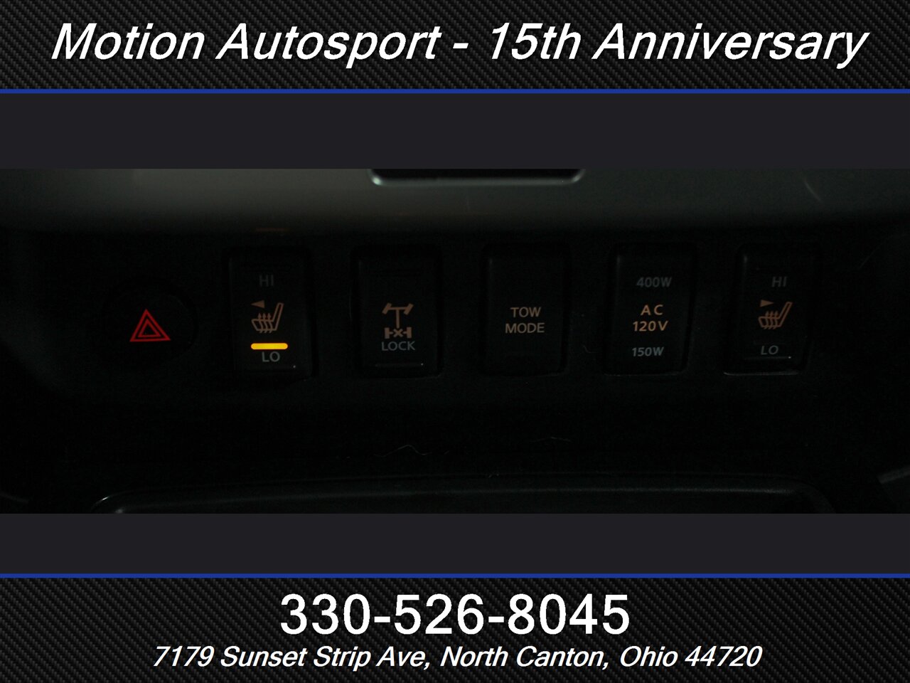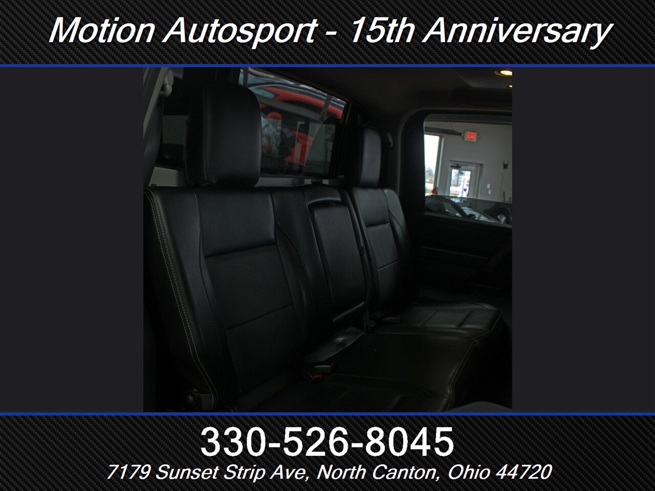 - Storage: front seatback, in bed, sunglasses holder, under rear seats