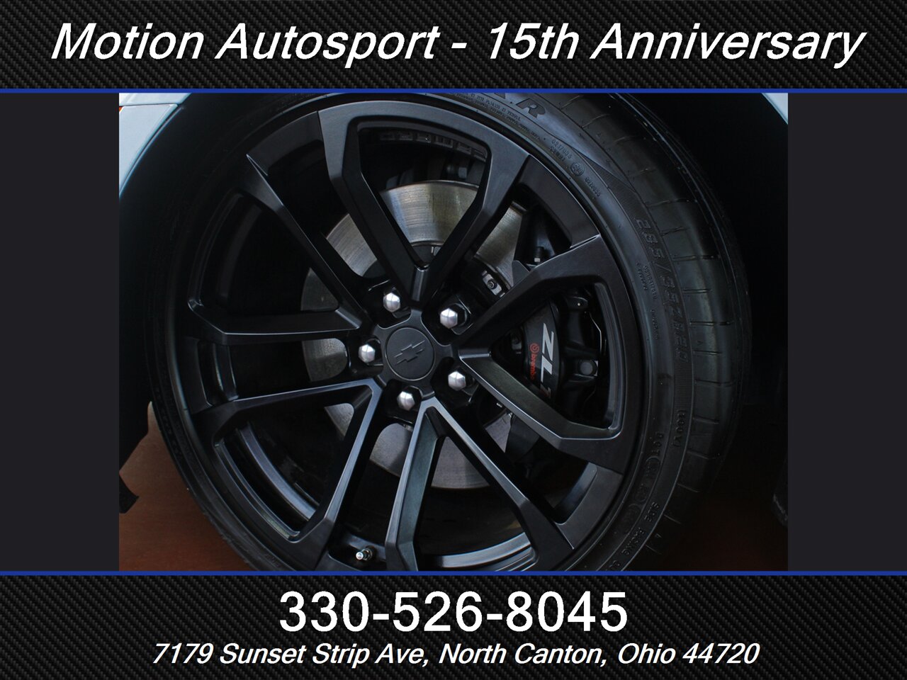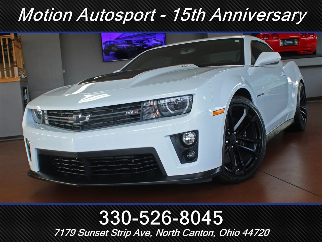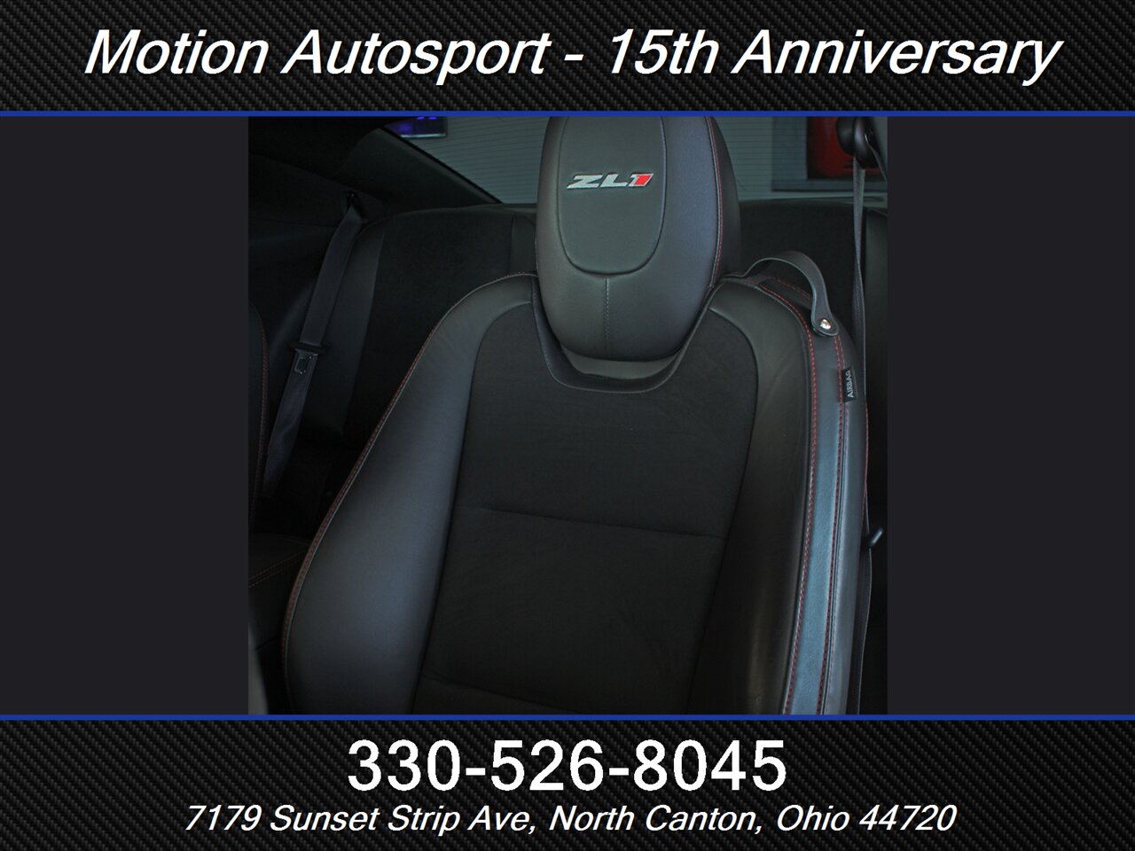 RARE UNIT...DONT LOSE IT! SPRING IS UPON US AND THE GOOD ONES ARE HARD TO FIND! Only 7100 original miles on this loaded out, one of a kind Camaro ZL1! Stunning car with black wheels, very tasteful performance upgrades, fresh service and detail and an impeccable Carfax! CAR IS ABSOLUTELY STUNNING! Ask us about our spectacular financing and extended service contracts. We take trades and ship vehicles nationwide. Visit www.motionautosport.com for 60 detailed photos. Call Brandon for more details at 330-526-8045