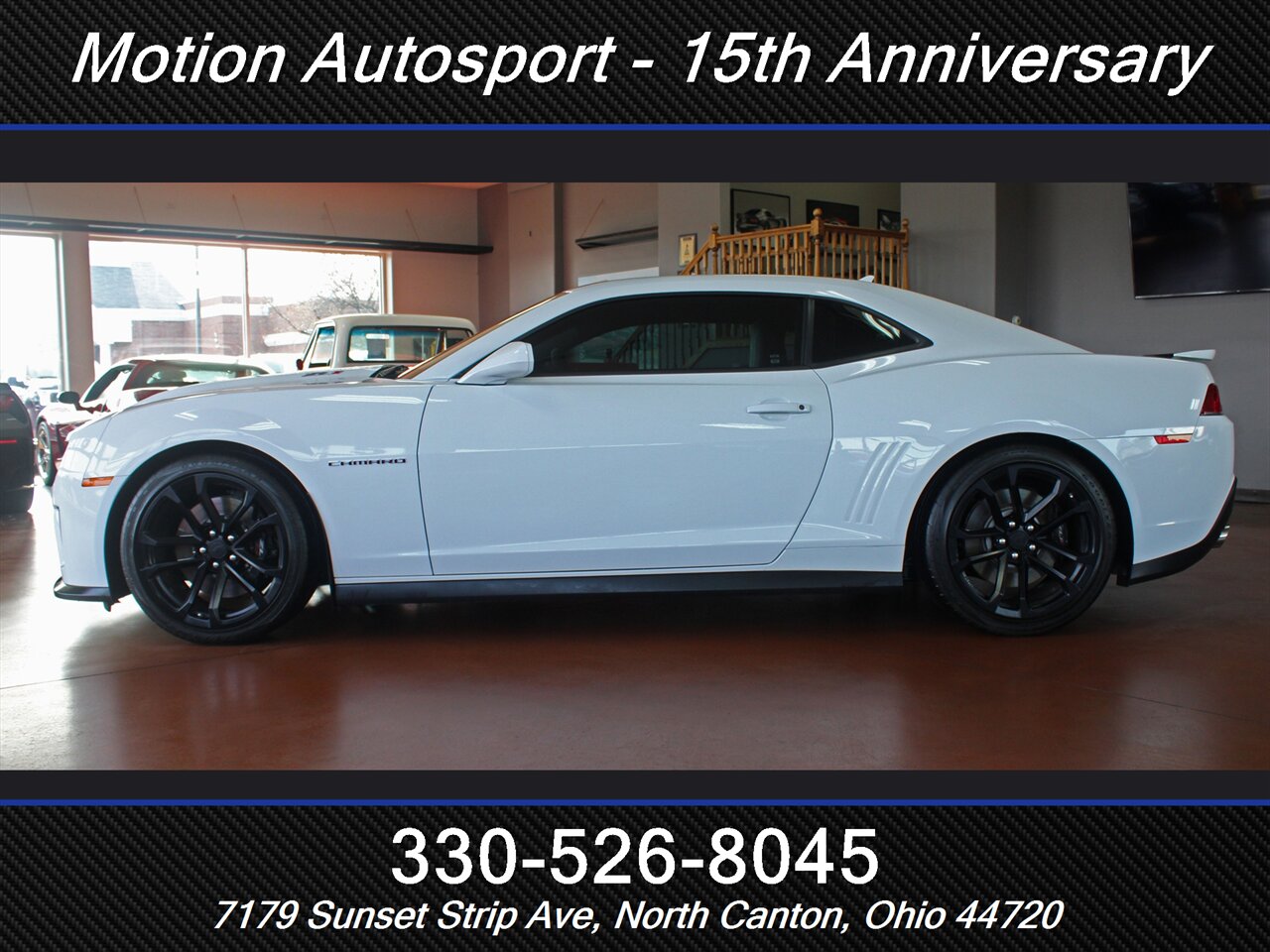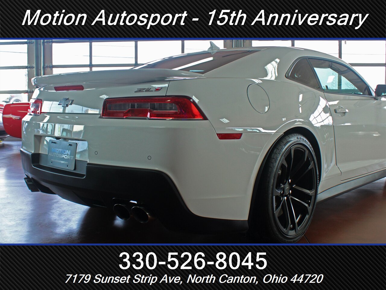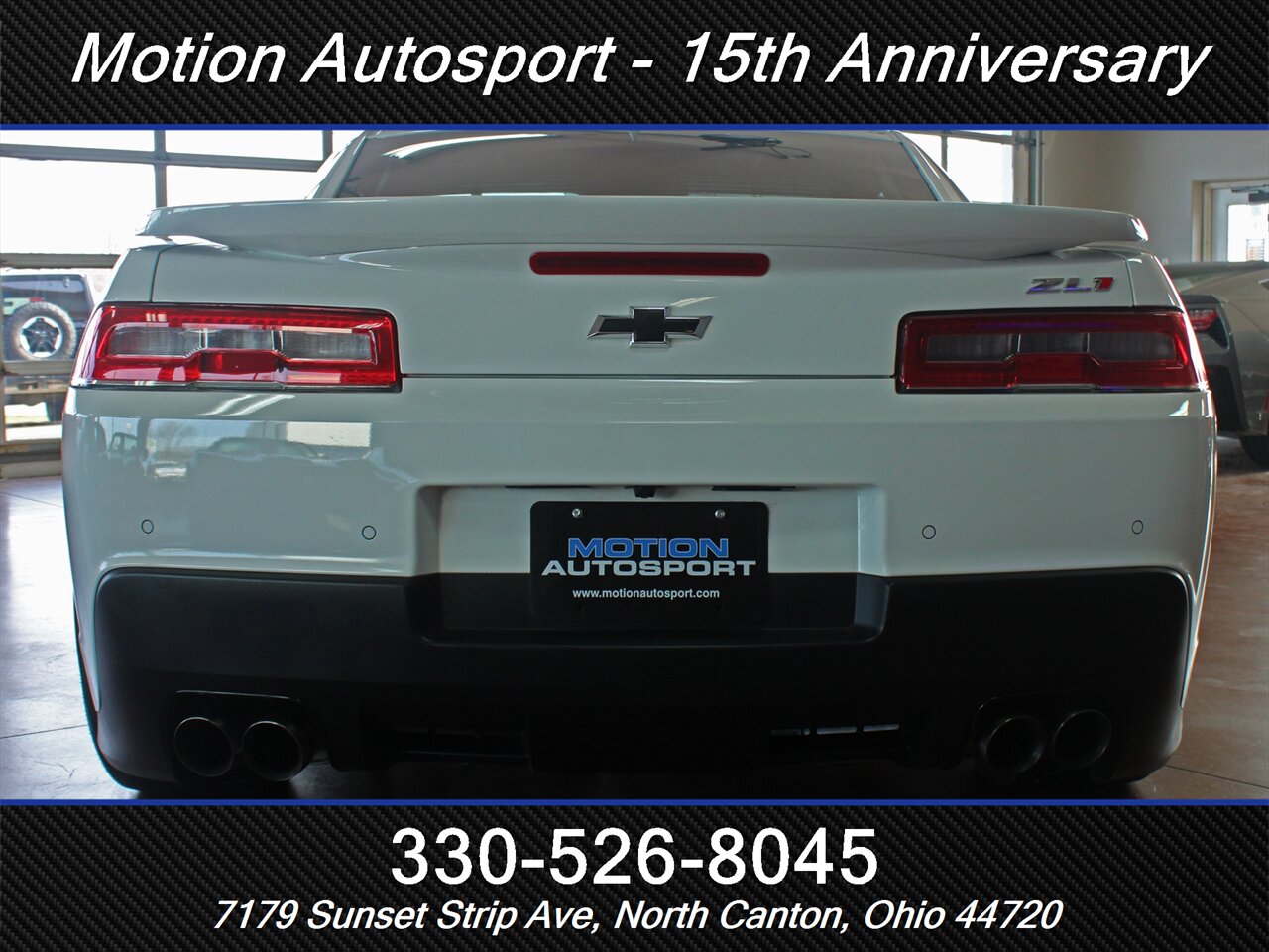 RARE UNIT...DONT LOSE IT! SPRING IS UPON US AND THE GOOD ONES ARE HARD TO FIND! Only 7100 original miles on this loaded out, one of a kind Camaro ZL1! Stunning car with black wheels, very tasteful performance upgrades, fresh service and detail and an impeccable Carfax! CAR IS ABSOLUTELY STUNNING! Ask us about our spectacular financing and extended service contracts. We take trades and ship vehicles nationwide. Visit www.motionautosport.com for 60 detailed photos. Call Brandon for more details at 330-526-8045