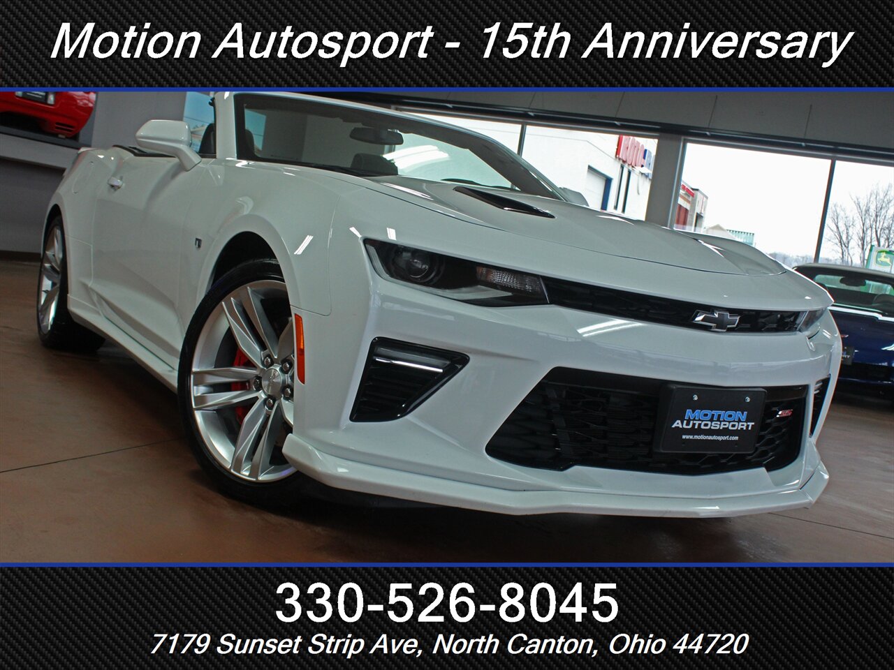 Unleash the power of the open road with this jaw-dropping 2016 Chevrolet Camaro SS 1SS Convertible, a stunning blend of performance and style that demands attention. Drenched in a striking Summit White exterior, this beast is not just a car; it’s a statement.