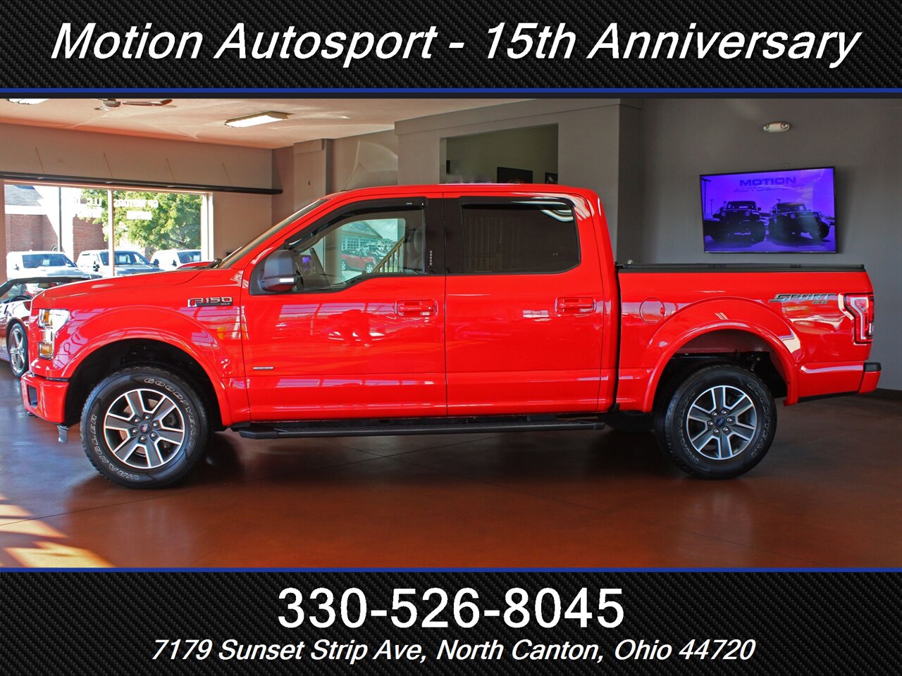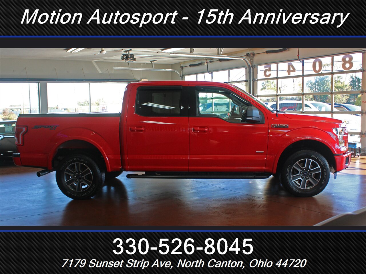 RARE UNIT....DONT LOSE IT! Highlights include the big dog 3.5 Eco Boost V6, the 6.5' bed option, 302A package, XLT package, Sport package, tow package, 18-inch wheels black, tow package, rare panoramic roof option, fresh service and detail with a clean Carfax and finished hard in stunning Race red! Only 48,000 extremely well cared for miles! THIS TRUCK IS INCREDIBLE! HALF THE PRICE OF A NEW F150 EQUIPPED LIKE THIS! Internet price is dealer finance price. Ask us about our spectacular financing and extended service contracts. We take trades and ship vehicles nationwide. Visit www.motionautosport.com for 60 detailed photos. Call Brandon for more details at 330-526-8045.