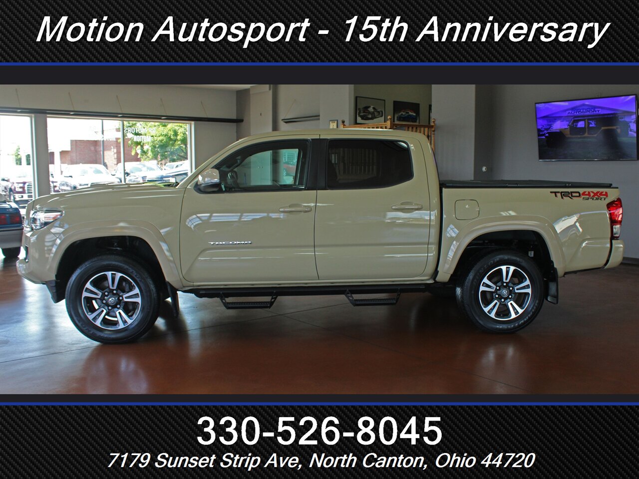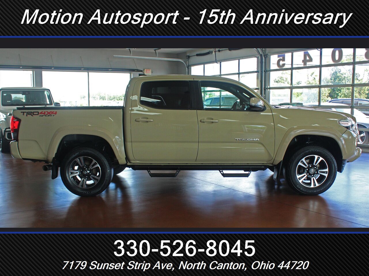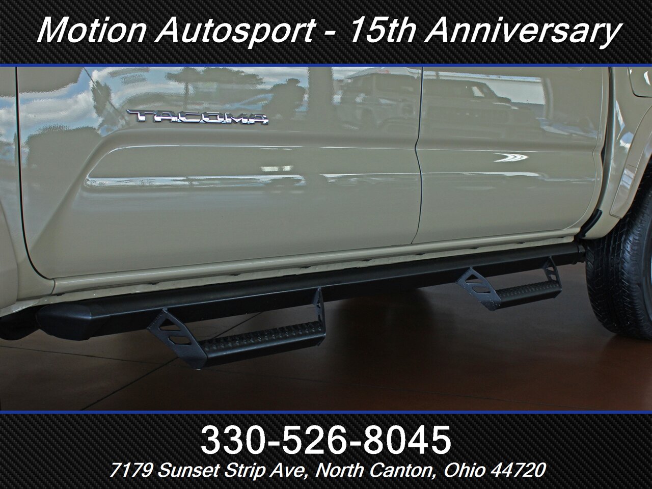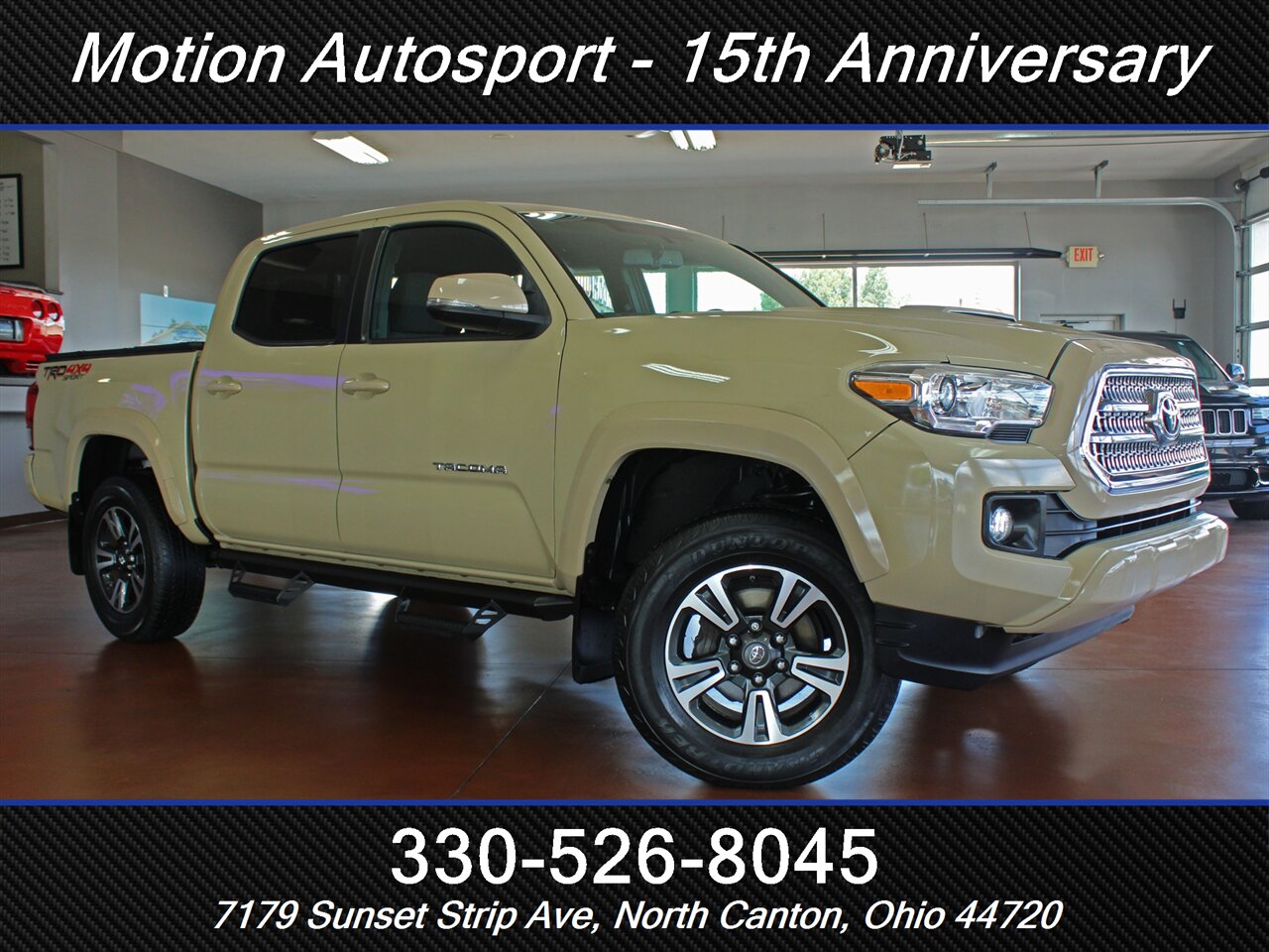 ONE OWNER! RARE QUICKSAND TAN TACOMA WITH THE 6 SPEED MANUAL GEAR BOX! Only 89,000 very well kept miles! Hot color, off road steps, heated seats, navigation, Moon Roof, TRD Sport package, fresh service and more! THIS TACOMA IS SICK! Ask us about our spectacular financing and extended service contracts. We take trades and ship vehicles nationwide. Visit www.motionautosport.com for 60 detailed photos. internet price is a finance price only. No CUs. Call Mike for more details at 330-526-8045