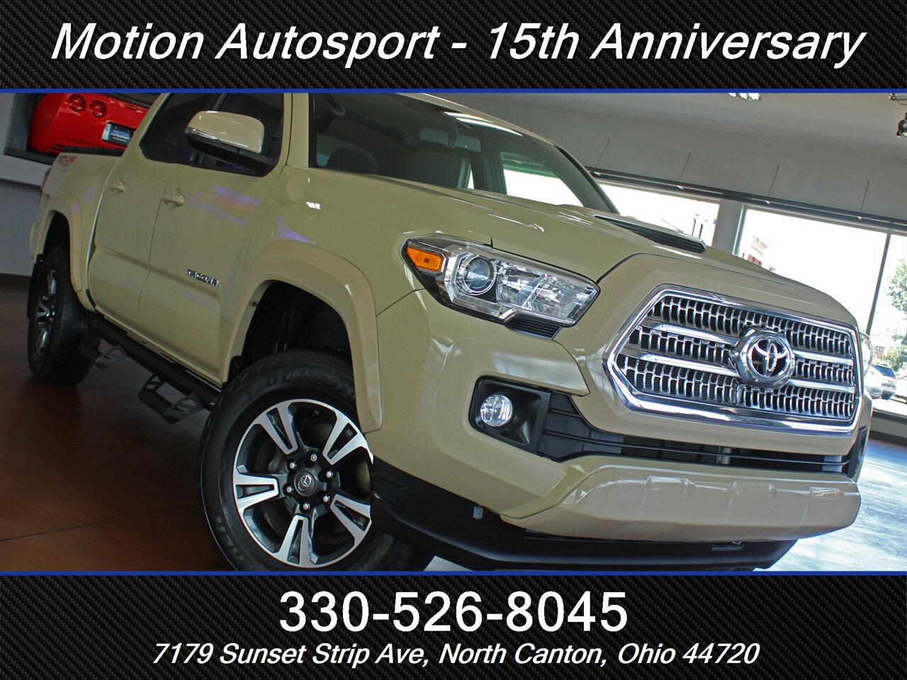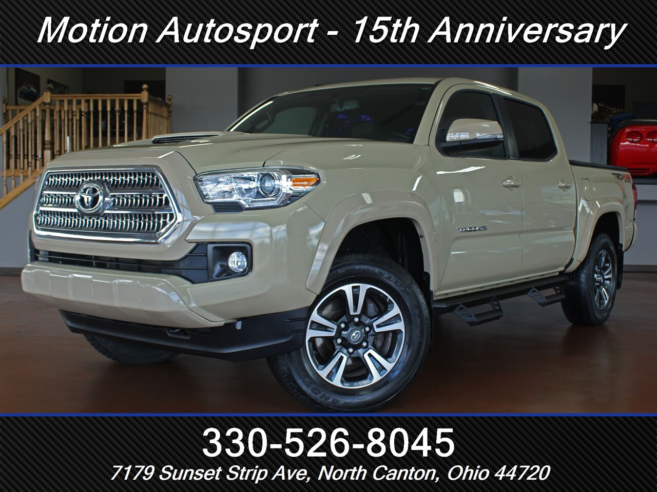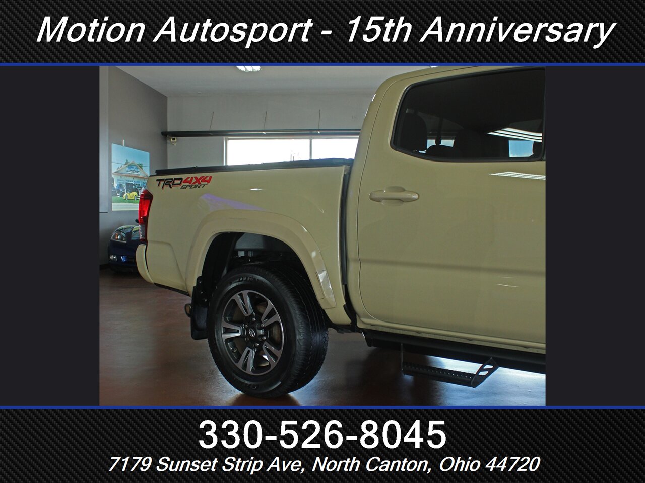 ONE OWNER! RARE QUICKSAND TAN TACOMA WITH THE 6 SPEED MANUAL GEAR BOX! Only 89,000 very well kept miles! Hot color, off road steps, heated seats, navigation, Moon Roof, TRD Sport package, fresh service and more! THIS TACOMA IS SICK! Ask us about our spectacular financing and extended service contracts. We take trades and ship vehicles nationwide. Visit www.motionautosport.com for 60 detailed photos. internet price is a finance price only. No CUs. Call Mike for more details at 330-526-8045
