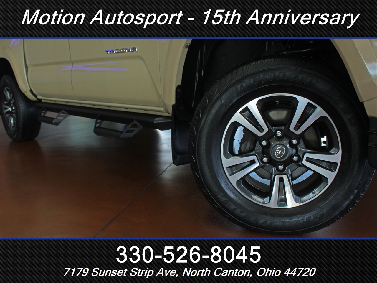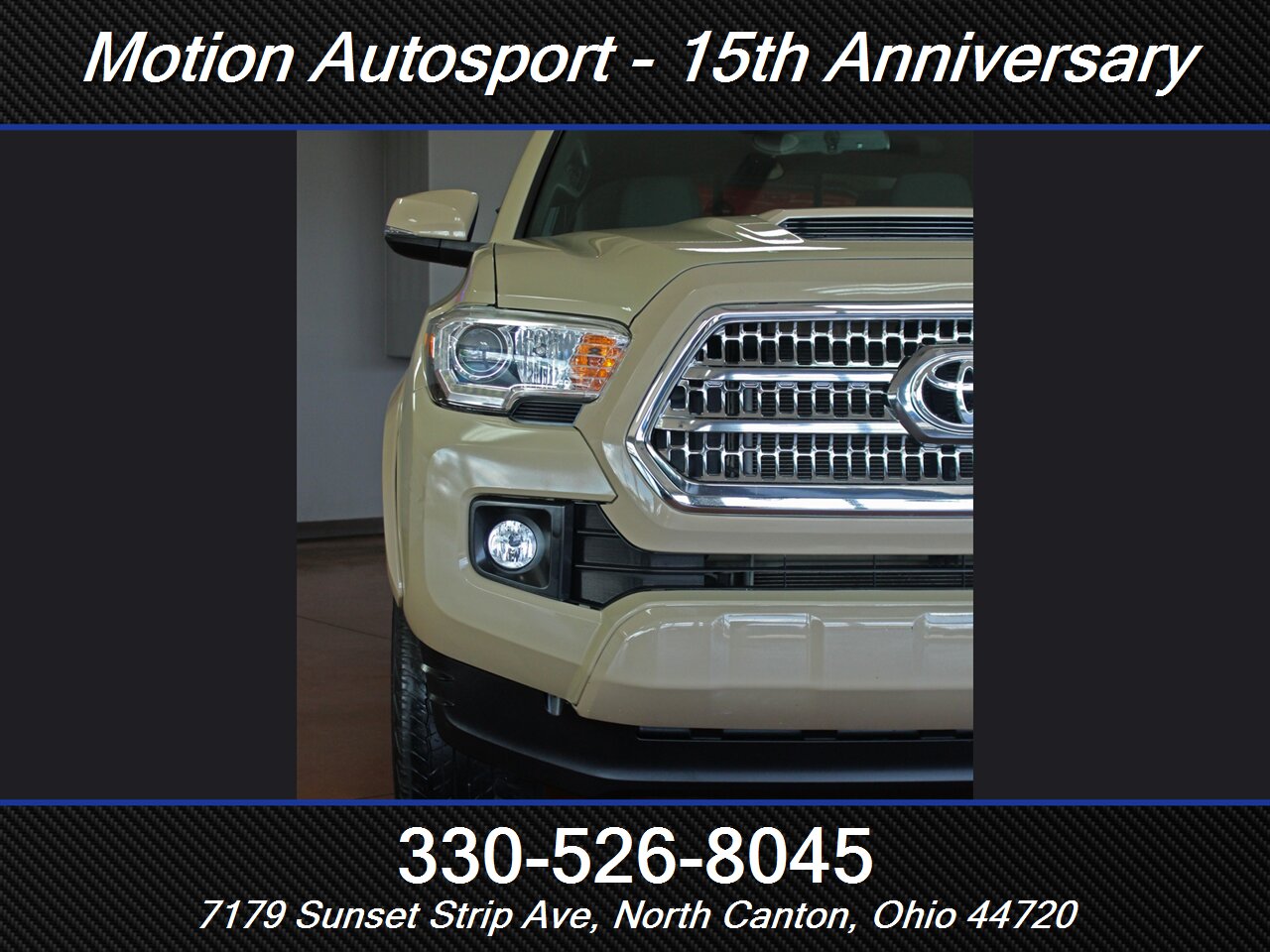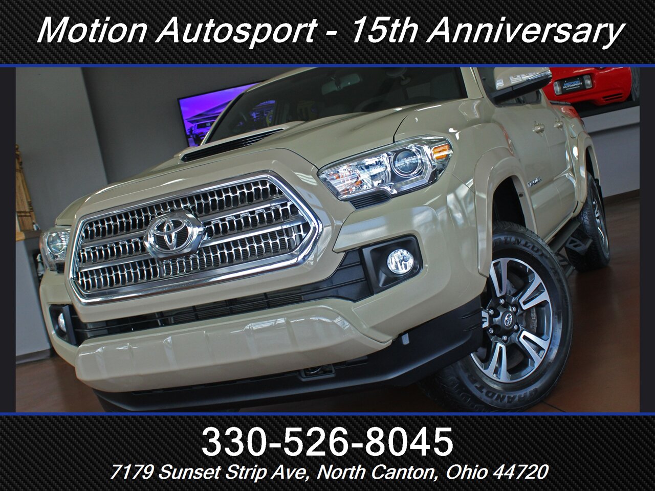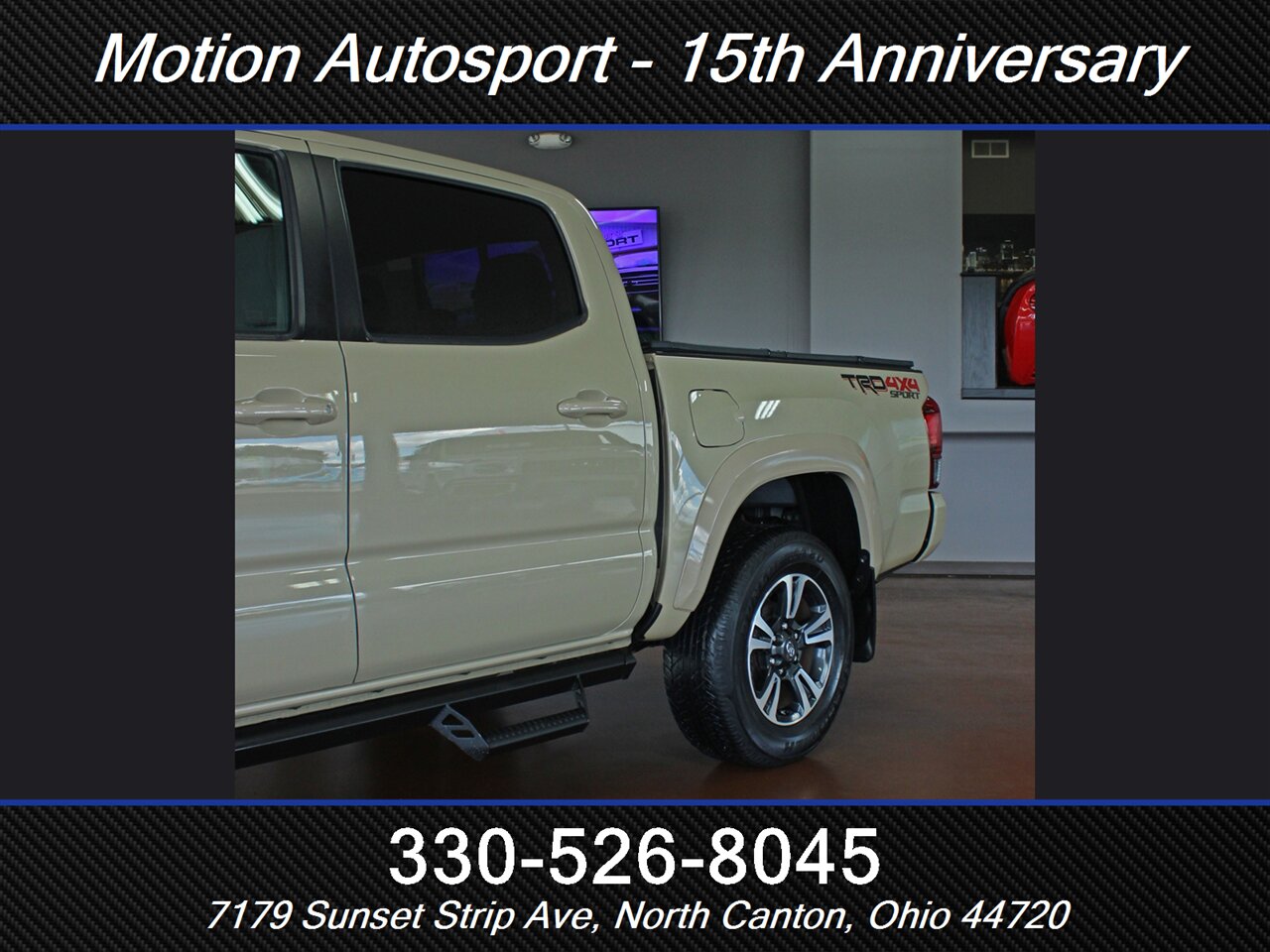 ONE OWNER! RARE QUICKSAND TAN TACOMA WITH THE 6 SPEED MANUAL GEAR BOX! Only 89,000 very well kept miles! Hot color, off road steps, heated seats, navigation, Moon Roof, TRD Sport package, fresh service and more! THIS TACOMA IS SICK! Ask us about our spectacular financing and extended service contracts. We take trades and ship vehicles nationwide. Visit www.motionautosport.com for 60 detailed photos. internet price is a finance price only. No CUs. Call Mike for more details at 330-526-8045