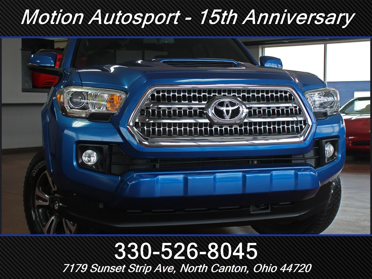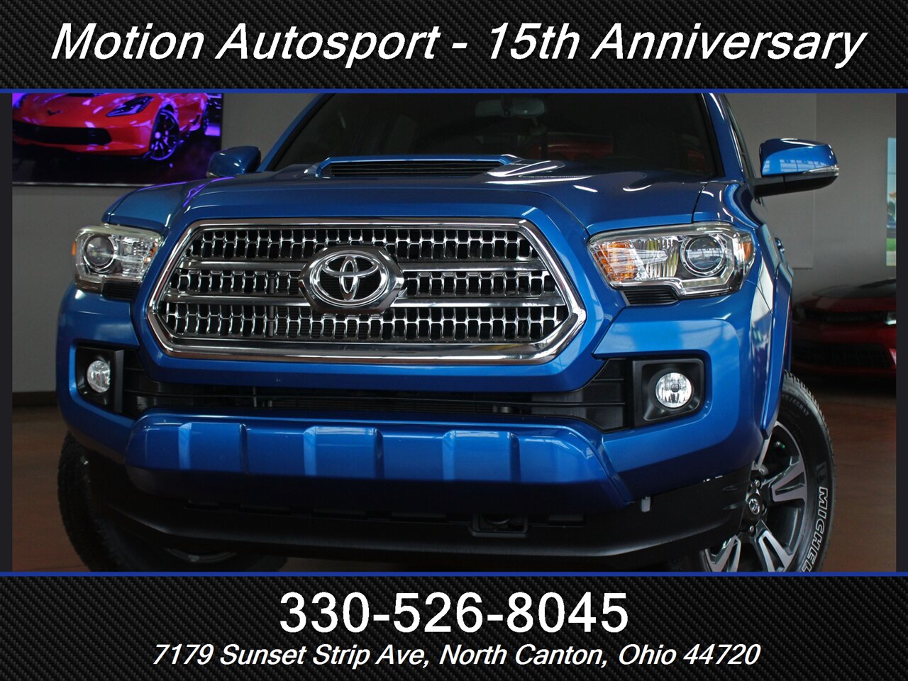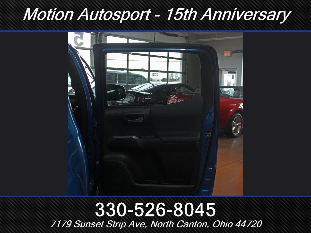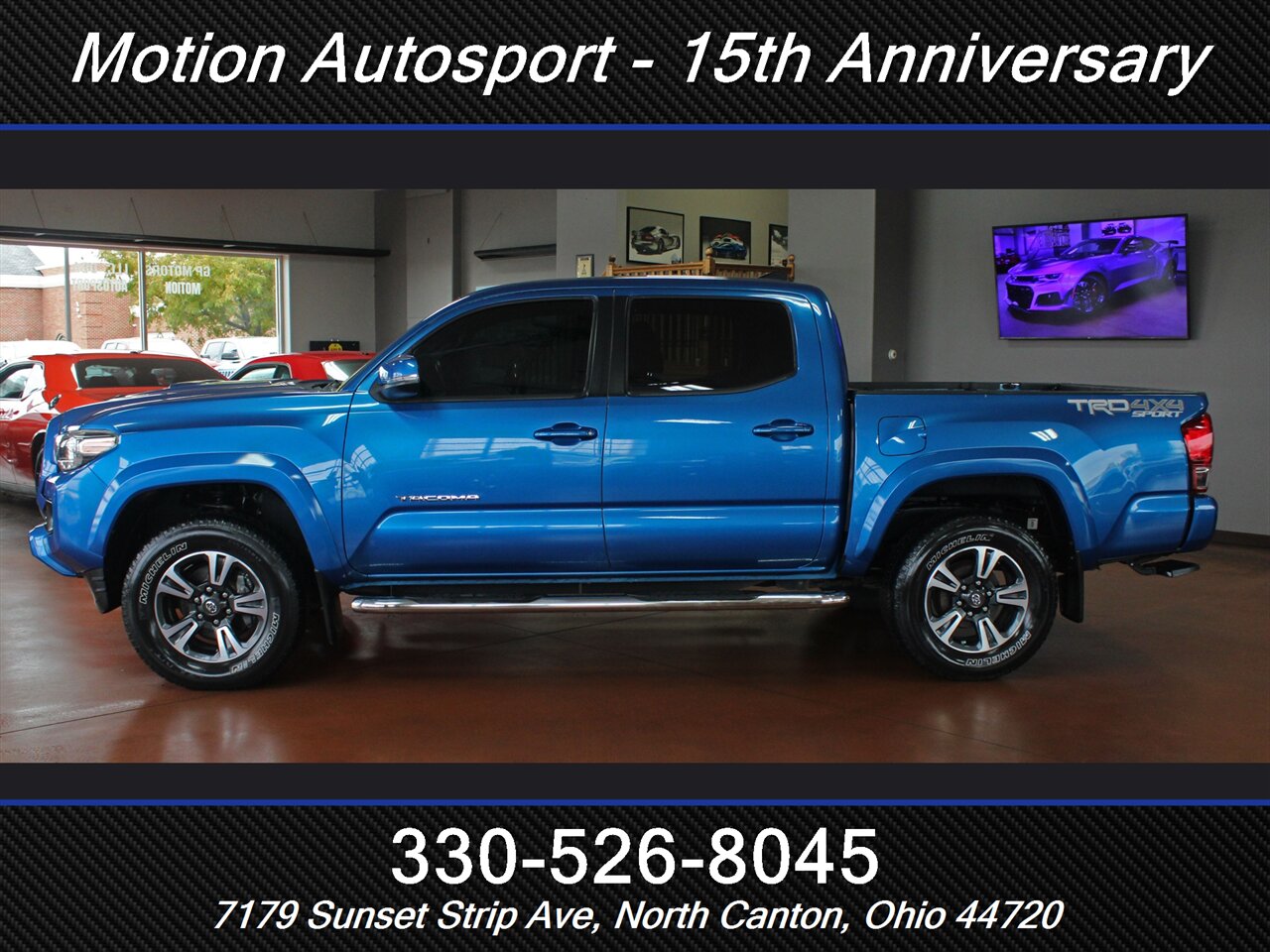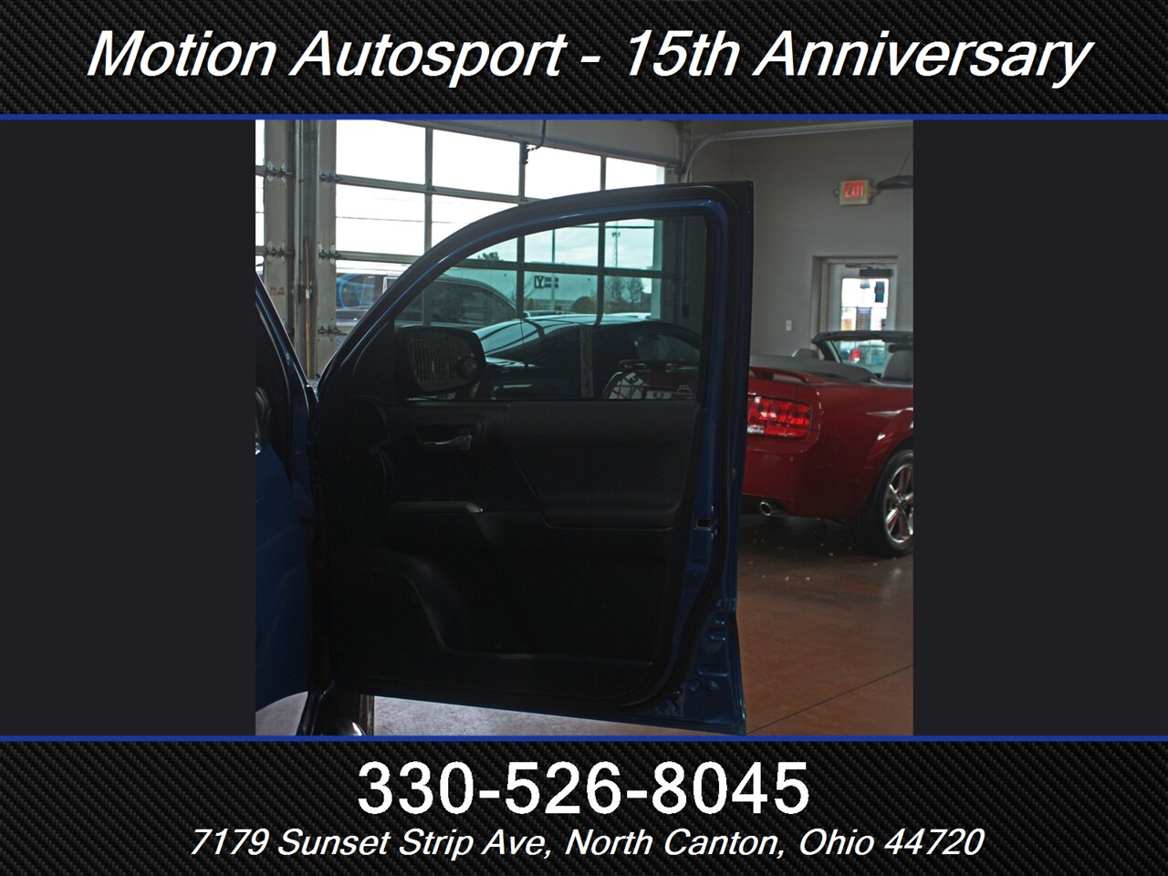 Stunning Tacoma with the full TRD Sport Package and only 63,000 very well-kept miles! Rare Blazing Blue Pearl coat! Navigation, crew cab, wireless charger, backup camera, and more! Comes complete with fresh service and detail and an impeccable Carfax! NICEST ONE IN THIS PRICE RANGE AVAILABLE! Ask us about our spectacular financing and extended service contracts. We take trades and ship vehicles nationwide. Internet price is dealer finance only. NO CUs. CASH PRICE IS 28948. Visit www.motionautosport.com for 60 detailed photos. Call Brandon for more details at 330-526-8045
