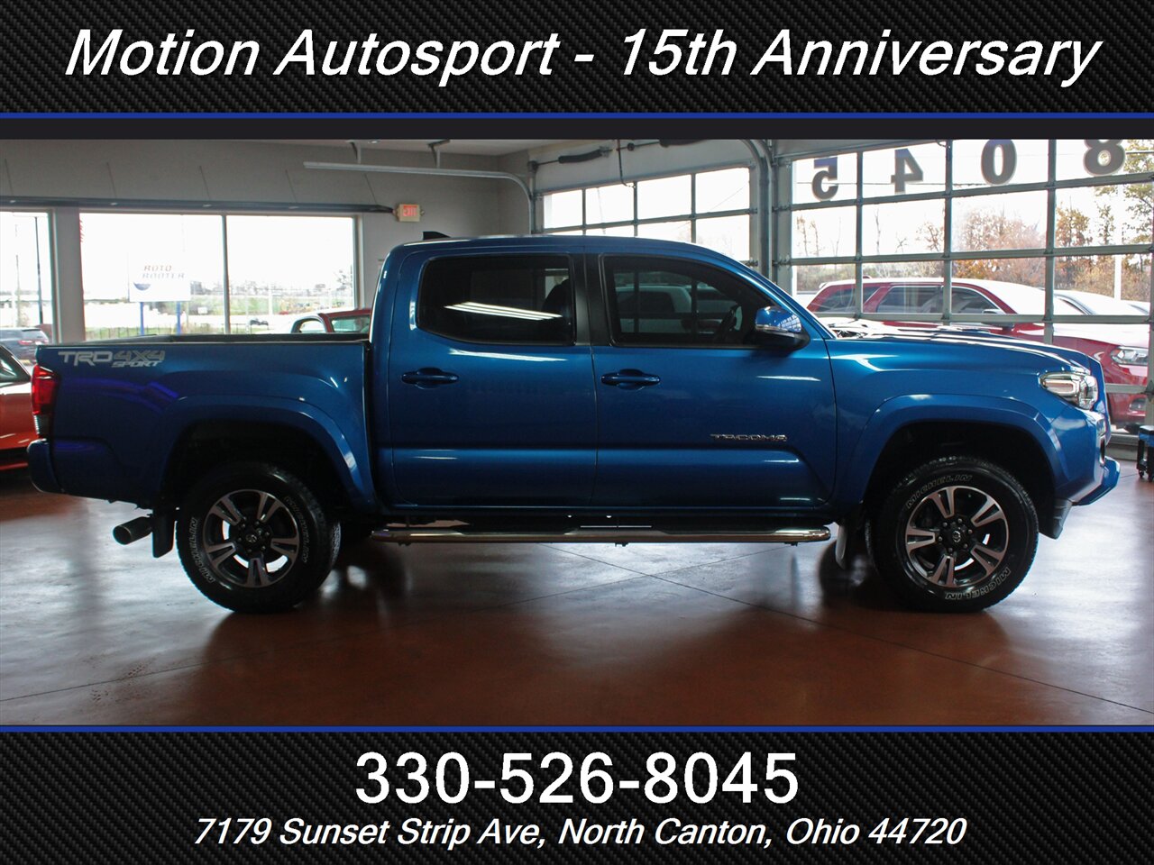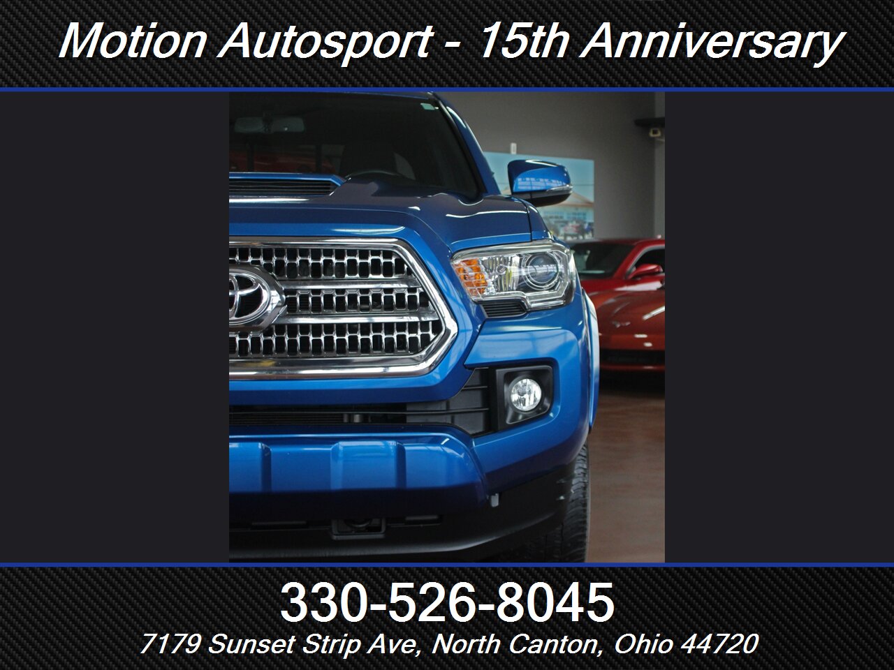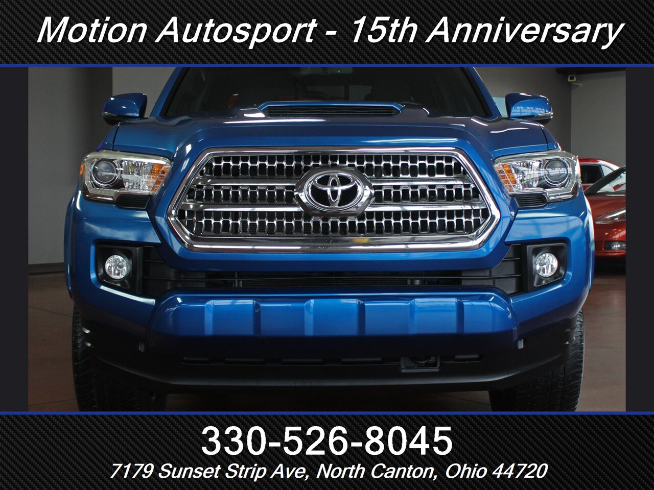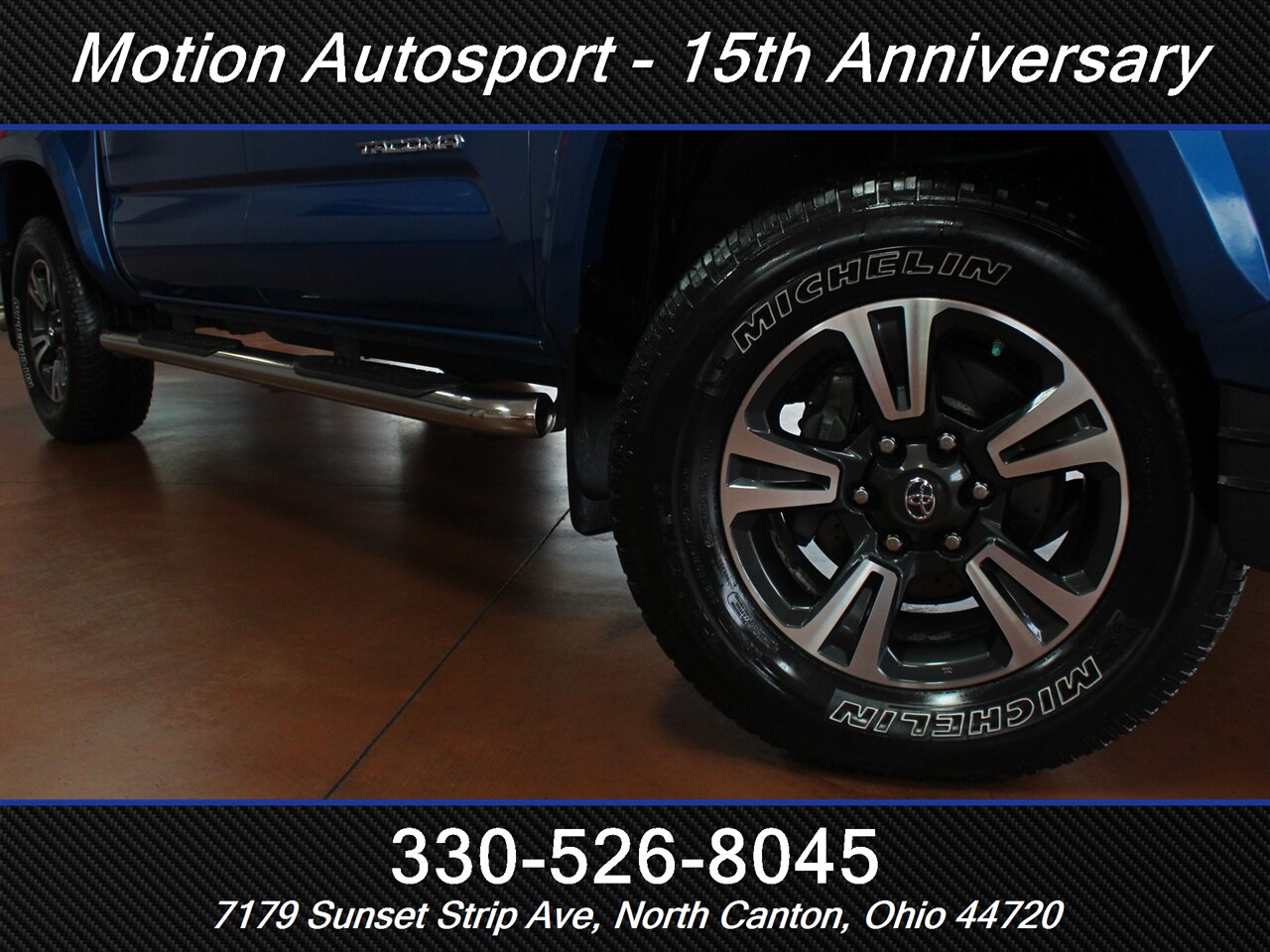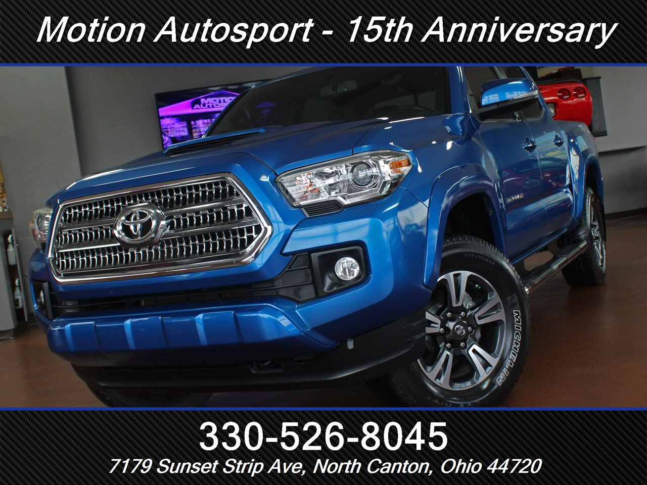Stunning Tacoma with the full TRD Sport Package and only 63,000 very well-kept miles! Rare Blazing Blue Pearl coat! Navigation, crew cab, wireless charger, backup camera, and more! Comes complete with fresh service and detail and an impeccable Carfax! NICEST ONE IN THIS PRICE RANGE AVAILABLE! Ask us about our spectacular financing and extended service contracts. We take trades and ship vehicles nationwide. Internet price is dealer finance only. NO CUs. CASH PRICE IS 28948. Visit www.motionautosport.com for 60 detailed photos. Call Brandon for more details at 330-526-8045