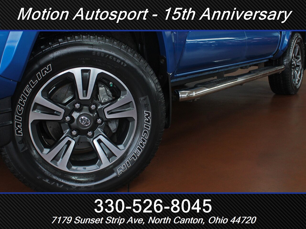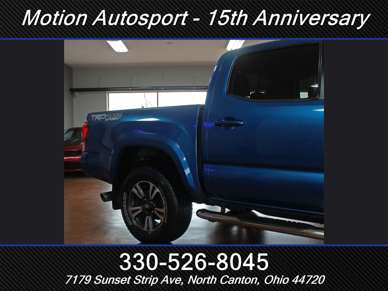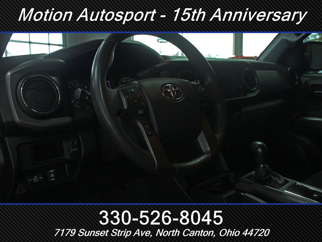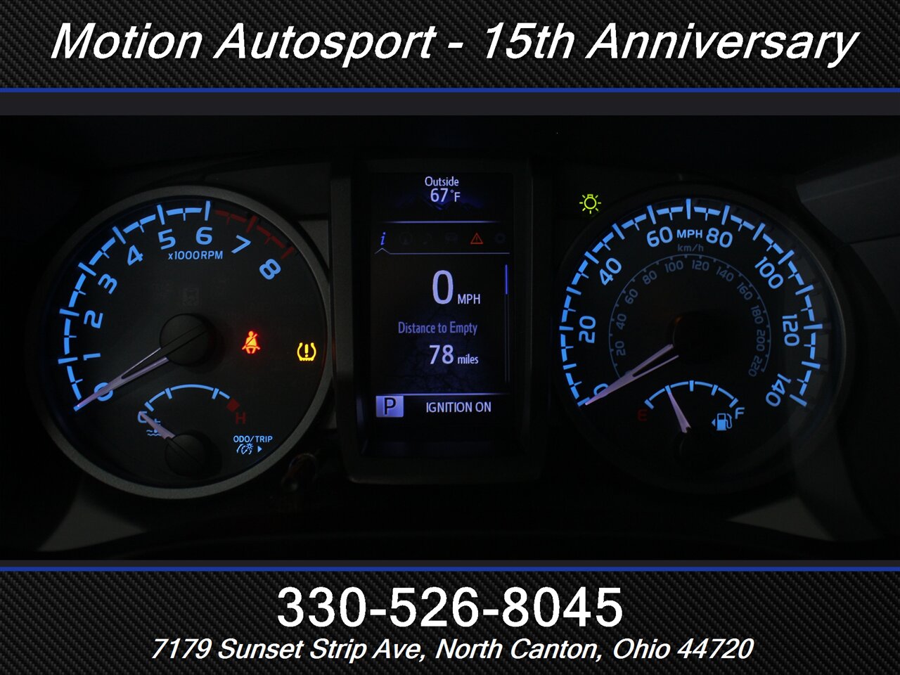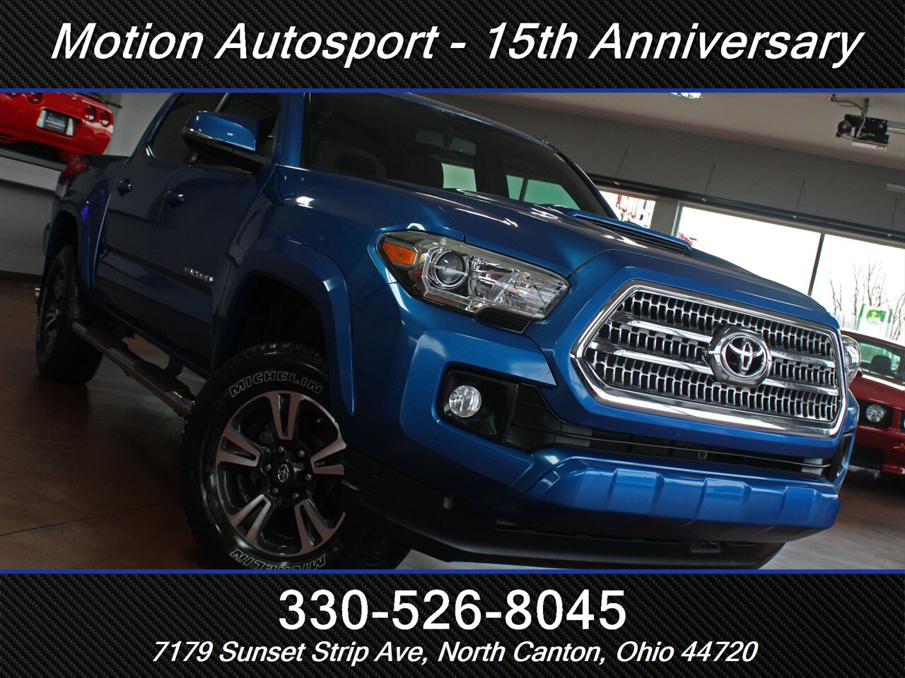 Stunning Tacoma with the full TRD Sport Package and only 63,000 very well-kept miles! Rare Blazing Blue Pearl coat! Navigation, crew cab, wireless charger, backup camera, and more! Comes complete with fresh service and detail and an impeccable Carfax! NICEST ONE IN THIS PRICE RANGE AVAILABLE! Ask us about our spectacular financing and extended service contracts. We take trades and ship vehicles nationwide. Internet price is dealer finance only. NO CUs. CASH PRICE IS 28948. Visit www.motionautosport.com for 60 detailed photos. Call Brandon for more details at 330-526-8045