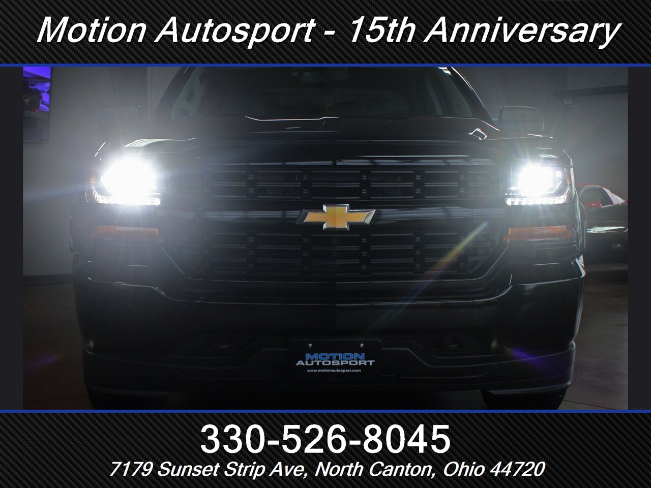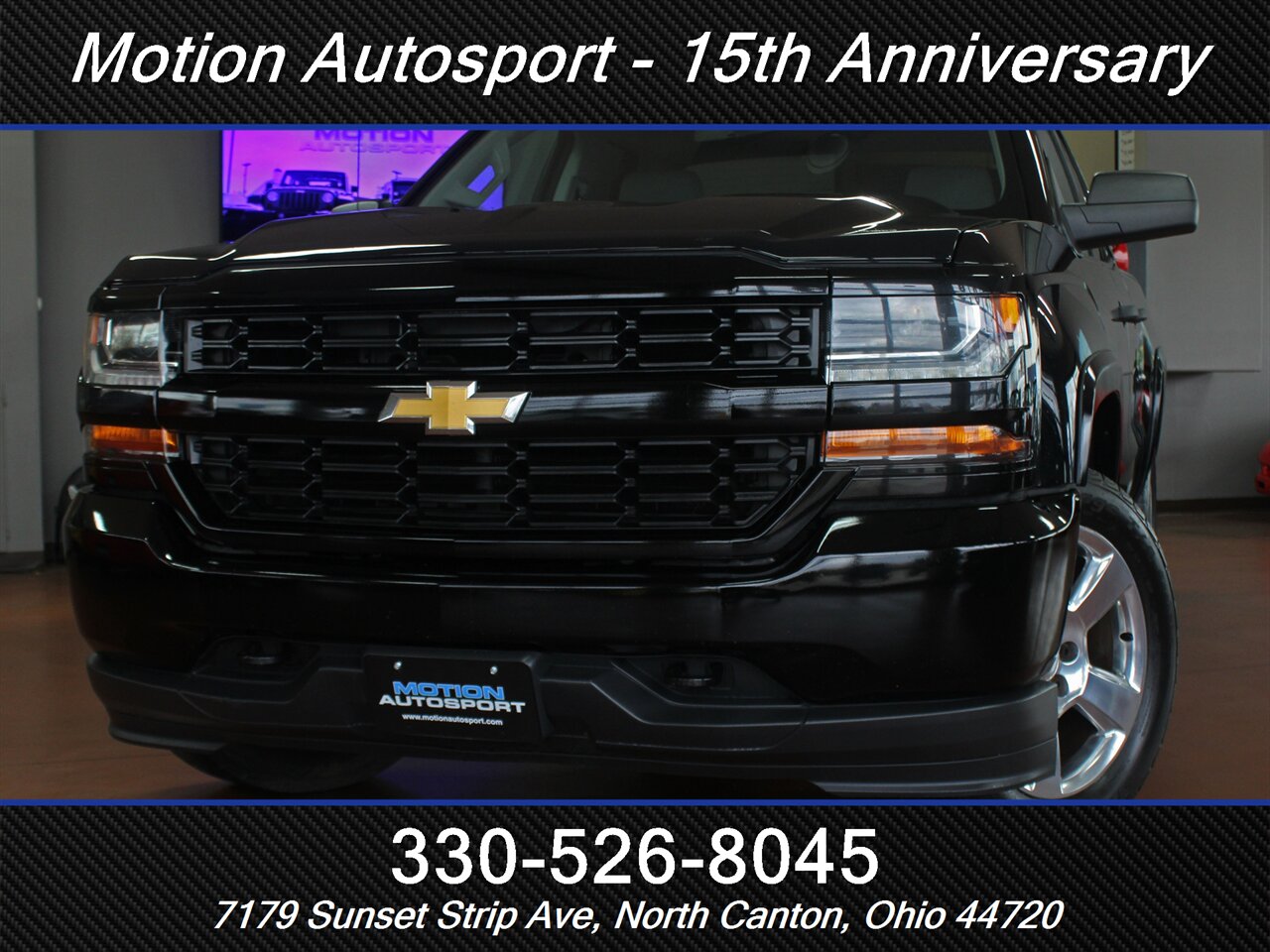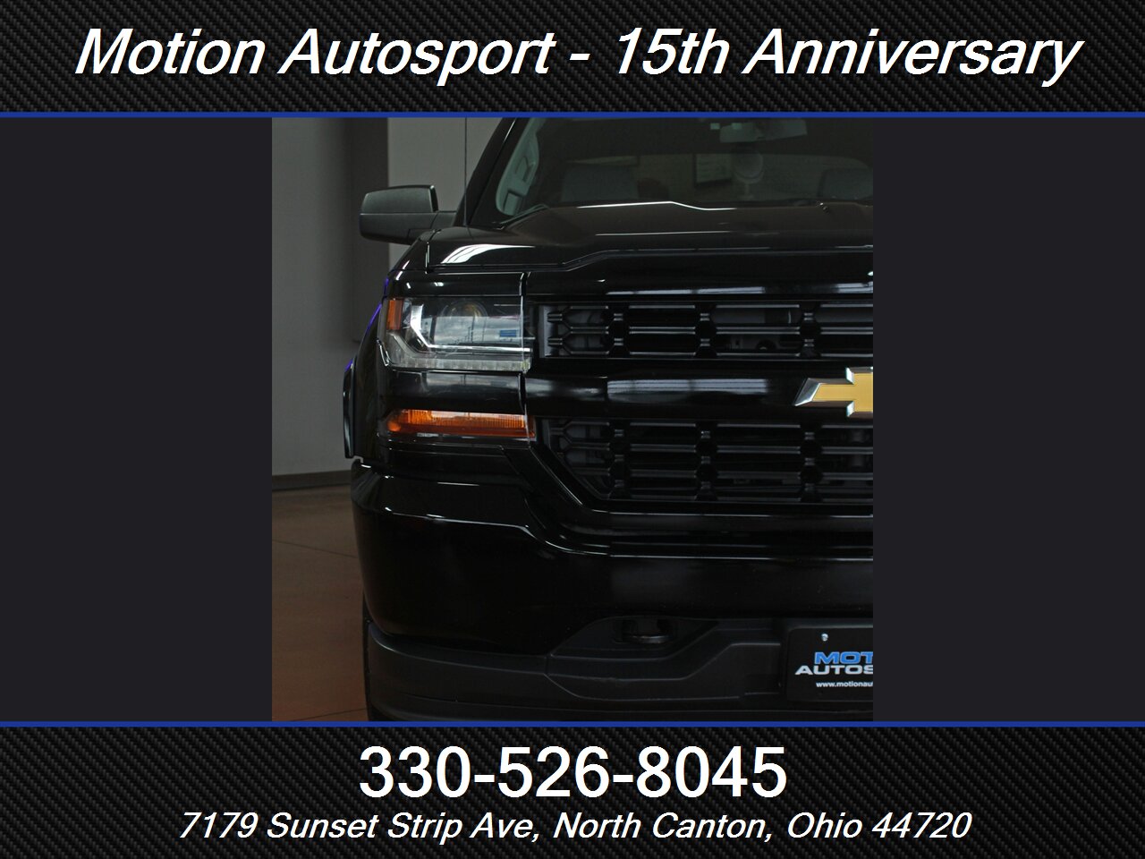 RARE UNIT...DONT LOSE IT! Only 25,000 miles on this stunning Silverado! Custom model with the big dog 5.3 V8, 20 inch wheels, fresh service and detail and an impeccable Carfax! LOWEST MILE 2017 ANYWHERE! Ask us about our spectacular financing and extended service contracts. We take trades and ship vehicles nationwide Visit www.motionautosport.com for 60 detailed photos. Call Brandon for more details at 330-526-8045. Internet price is a finance price only. Visit our website for full pricing details