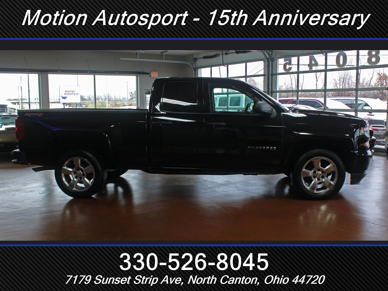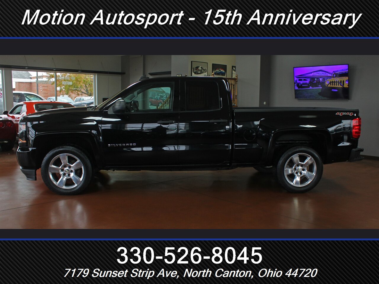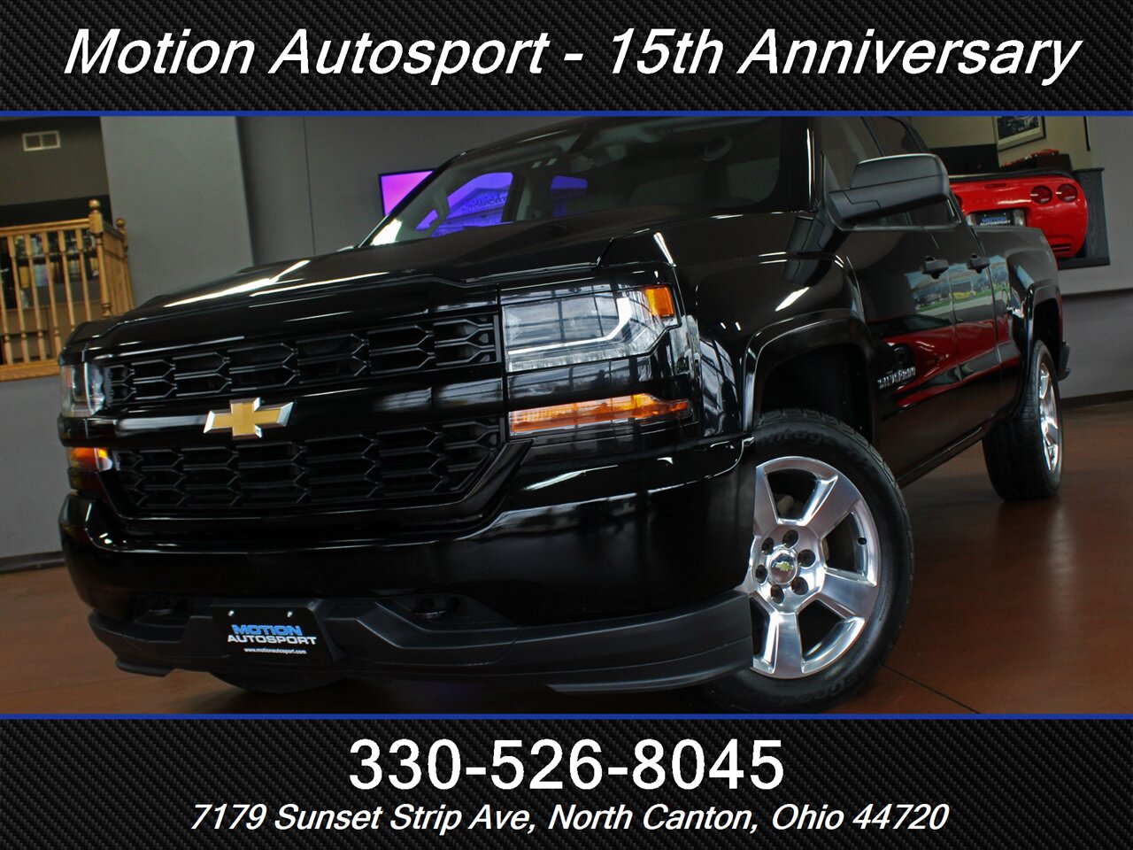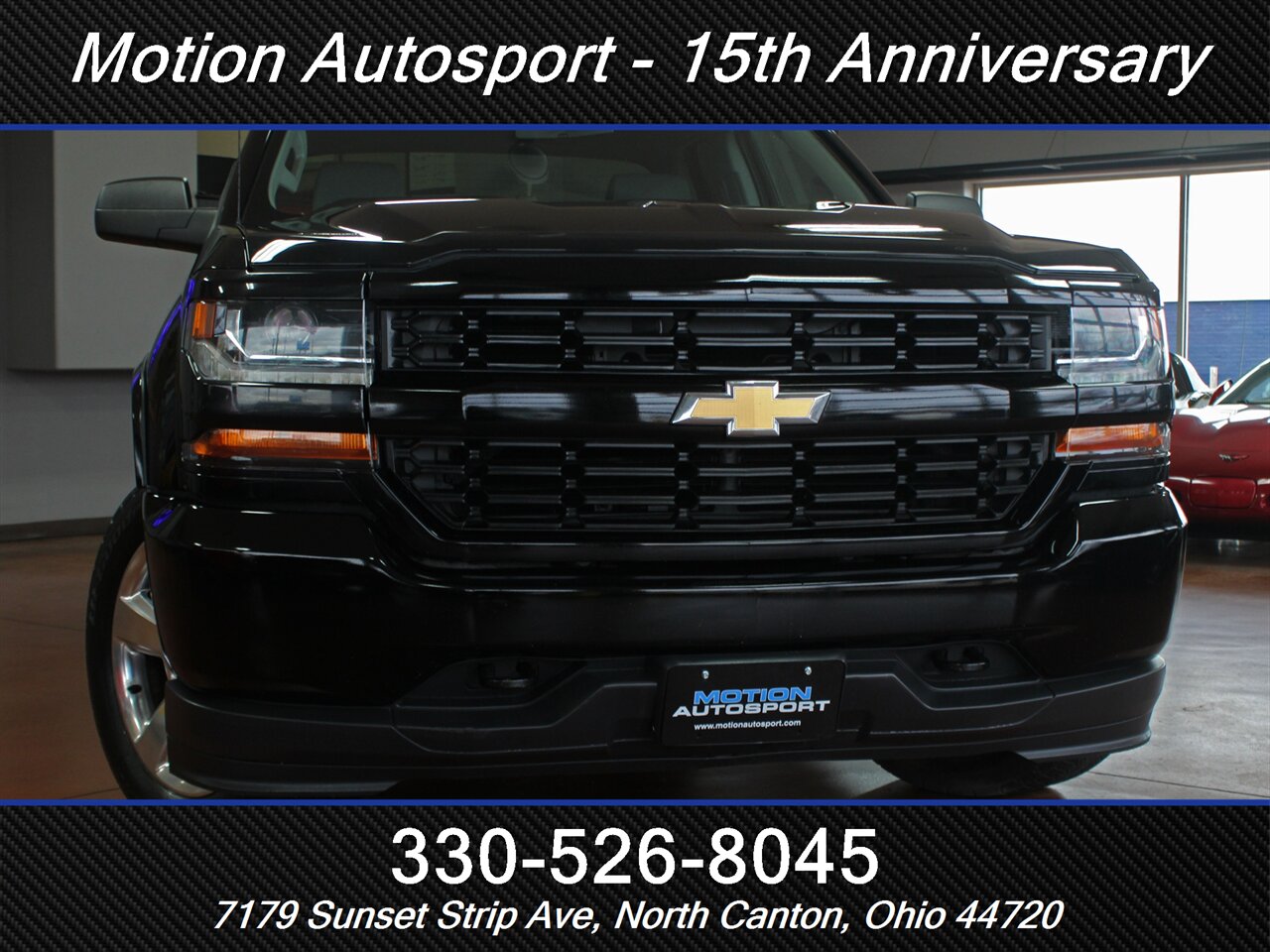 RARE UNIT...DONT LOSE IT! Only 25,000 miles on this stunning Silverado! Custom model with the big dog 5.3 V8, 20 inch wheels, fresh service and detail and an impeccable Carfax! LOWEST MILE 2017 ANYWHERE! Ask us about our spectacular financing and extended service contracts. We take trades and ship vehicles nationwide Visit www.motionautosport.com for 60 detailed photos. Call Brandon for more details at 330-526-8045. Internet price is a finance price only. Visit our website for full pricing details