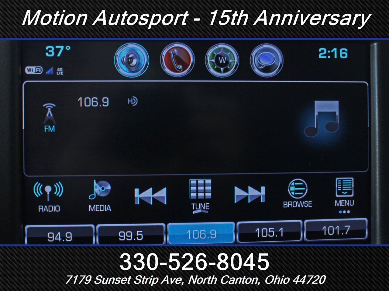 - Radio: AM/FM, HD radio, touch screen display, voice operated