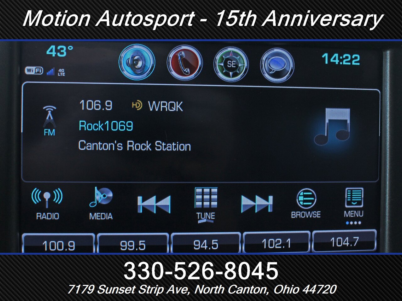 - Radio: AM/FM, HD radio, touch screen display, voice operated