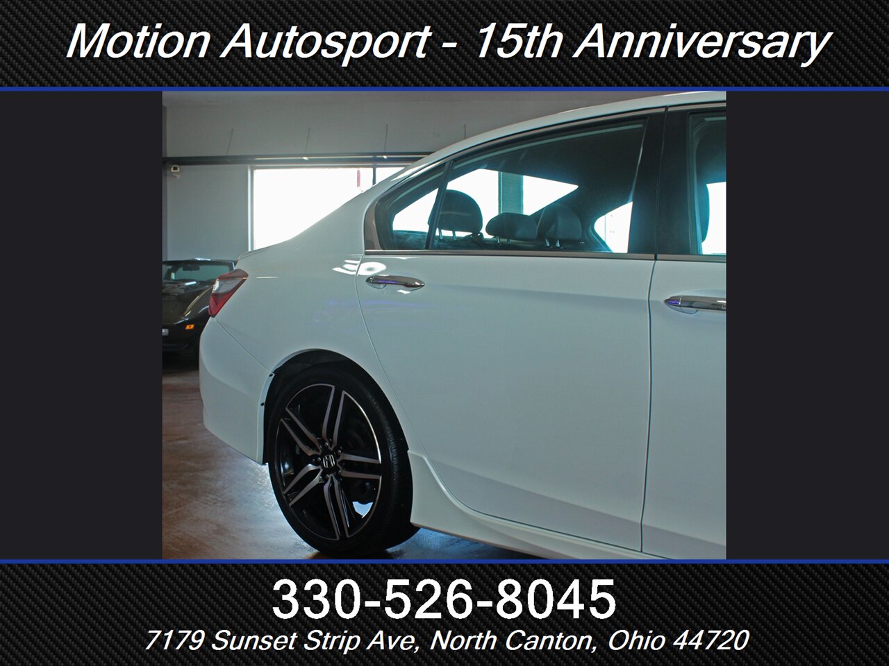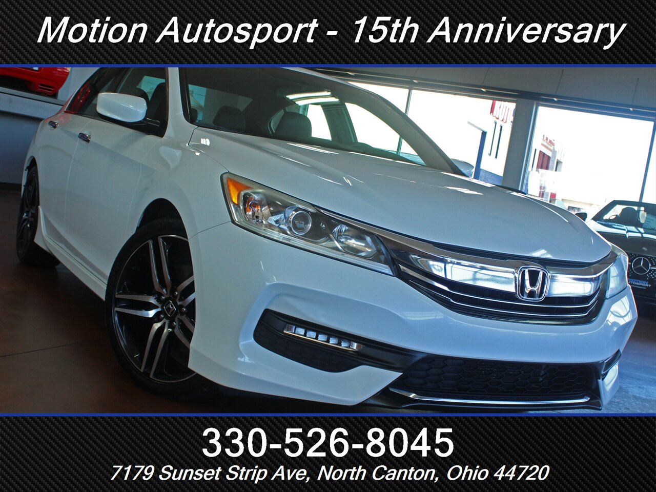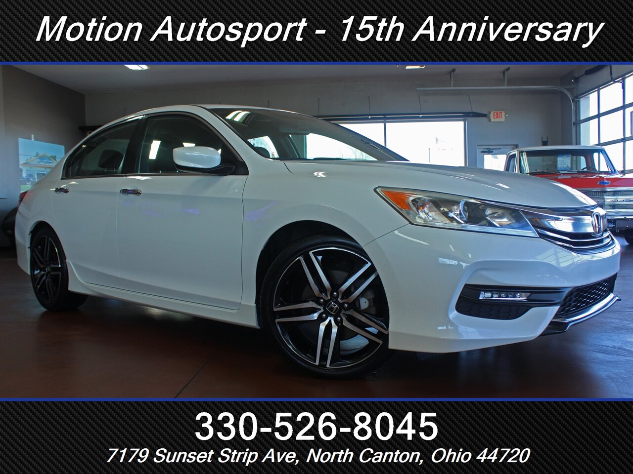 2017 Honda Accord Sport Special Edition — White Orchid Pearl exterior with a Black interior. This Accord is in excellent overall condition and comes with a clean CARFAX report. Driven by Honda’s reliable 2.4L inline-4 that produces 189 hp and 182 ft-lbs of torque, it delivers a great balance of everyday performance and efficiency — EPA-rated at 26 MPG city and 34 MPG highway.
