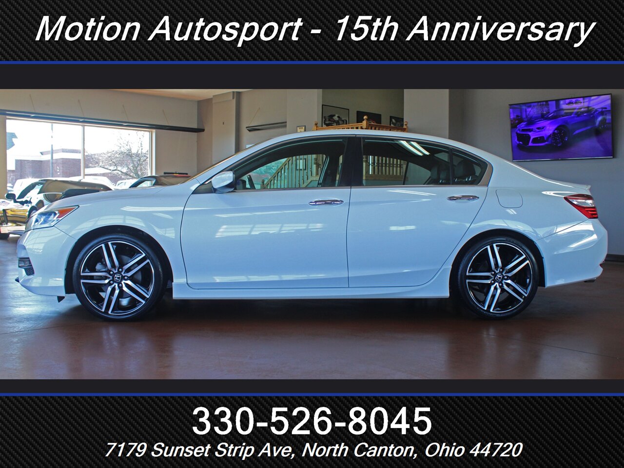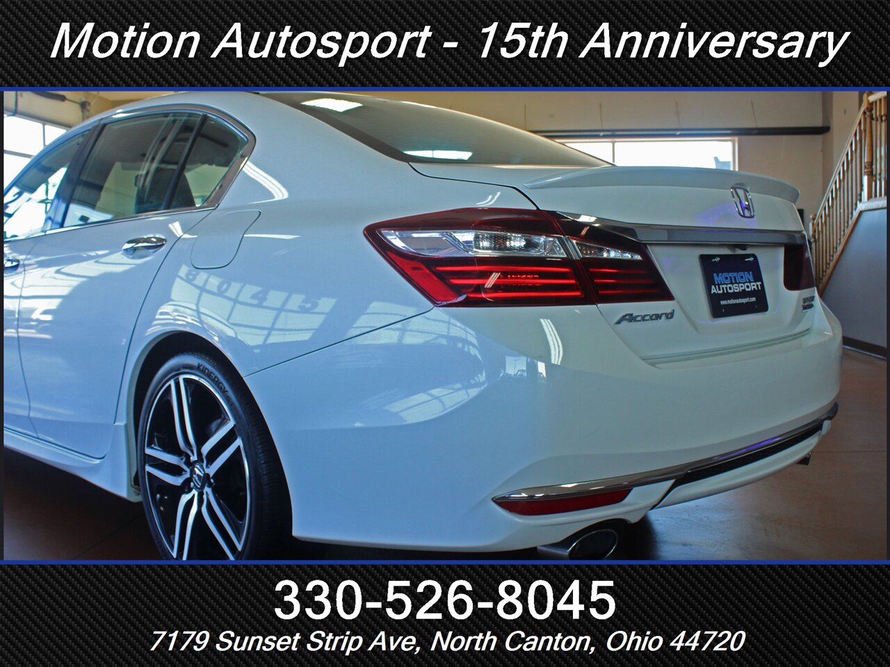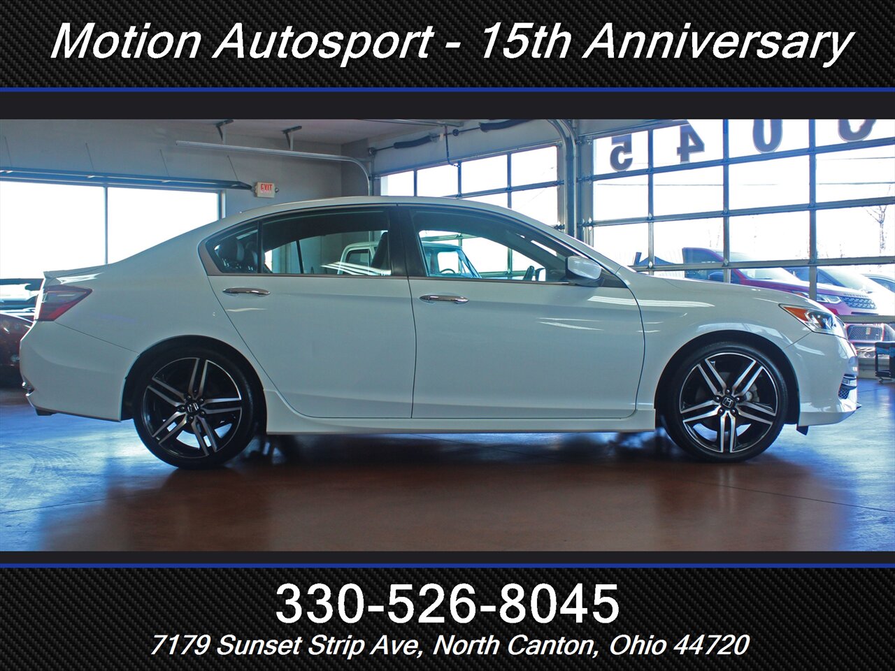 2017 Honda Accord Sport Special Edition — White Orchid Pearl exterior with a Black interior. This Accord is in excellent overall condition and comes with a clean CARFAX report. Driven by Honda’s reliable 2.4L inline-4 that produces 189 hp and 182 ft-lbs of torque, it delivers a great balance of everyday performance and efficiency — EPA-rated at 26 MPG city and 34 MPG highway.