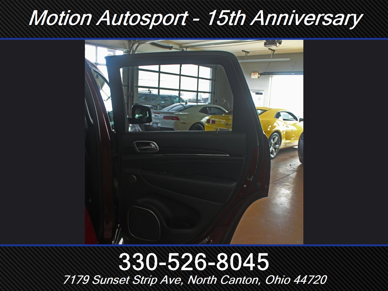 2017 Jeep Grand Cherokee Summit — Velvet Red Pearl Coat exterior with a Black interior. This top-tier Summit combines refined luxury with genuine capability: powered by the HEMI 5.7L V8 producing 360 hp and 390 ft-lbs of torque, paired with an 8-speed automatic transmission and full-time 4x4, this Grand Cherokee delivers strong, confident performance for towing, highway cruising and everyday driving.