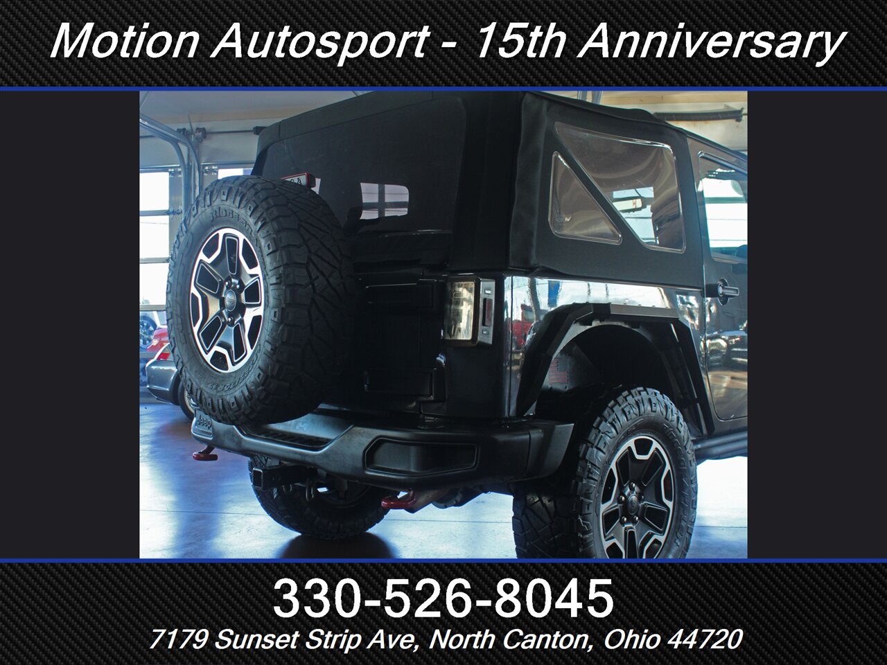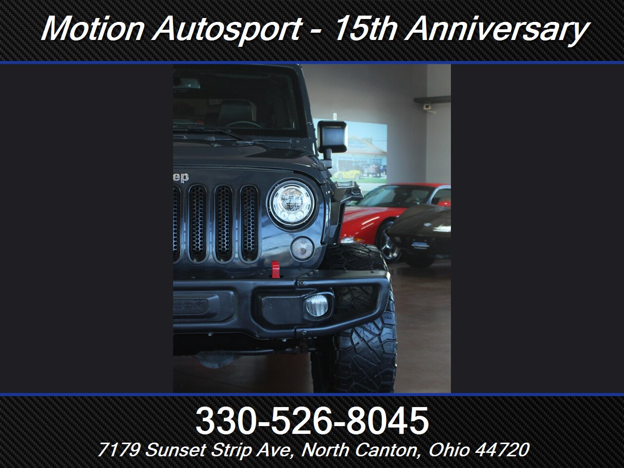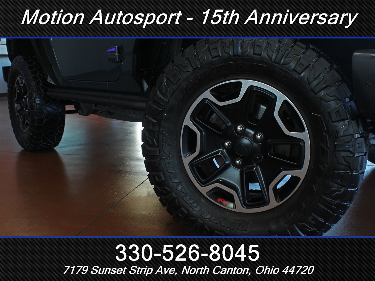 HOT WRANGLER COMING AT YOU! Only 78,000 miles on this one of a kind Rubicon! Full Hard Rock Edition with leather, navigation, soft top, lots of off road upgrades, fresh service and detail and a ton more! EXTREMELY CLEAN ONE OF A KIND JEEP FINISHED IN HIGHLY SOUGHT AFTER RHINO GRAY! Ask us about our spectacular financing and extended service contracts. We take trades and ship vehicles nationwide. Visit www.motionautosport.com for 60 detailed photos. Call Mike for more details at 330-526-8045