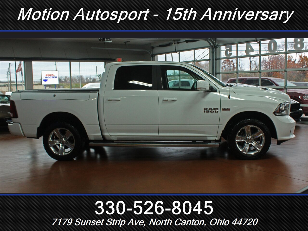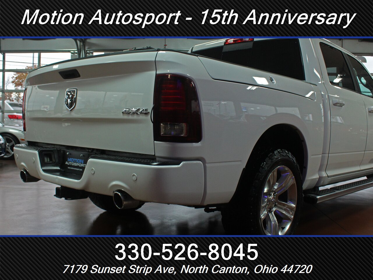 RARE UNIT....DONT LOSE IT! Only 76,000 extremely well cared for miles on this one of a kind Ram! PAY ATTENTION! THIS TRUCK ONLY EXISTS AT OUR DEALERSHIP! Loaded Ram Sport with the big dog 5.7 Hemi V8, hot and cold leather, navigation, moon roof, rare Ram box option, tow group, 20s with deep rubber, fresh service and detail and an impeccable Carfax! ! TRUCK IS LEGIT CLEAN! HUGE MSRP ON THIS ONE SO DO NOT WAIT! Ask us about our spectacular financing and extended service contracts. We take trades and ship vehicles nationwide. Visit www.motionautosport.com for 60 detailed photos. Internet price is a finance price only. Call Brandon for more details at 330-526-0845