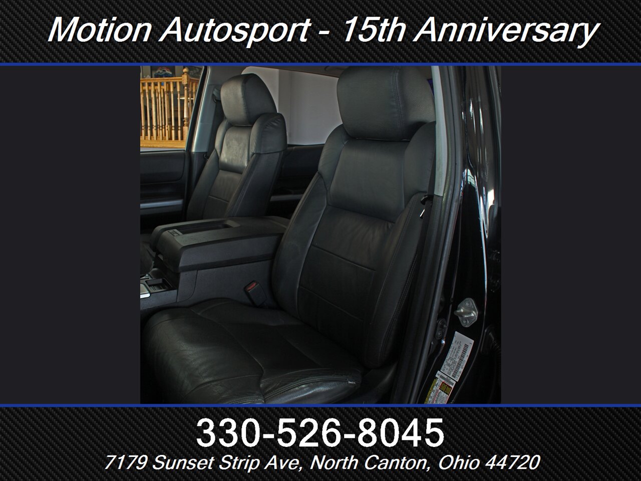 ONE OWNER! SALT FREE FLORIDA TRUCK! RARE UNIT.....SO DONT LOSE IT! One of a kind Tundra with only 82,000 very well kept miles! Loaded SR5 TRD Off Road package truck with, heated leather, navigation, custom 20s, front level kit, painted flares, fresh service and detail and a ton more! Clean Tundras are getting harder and harder to come by! Ask us about our spectacular financing and extended service contracts. We take trades and ship vehicles nationwide. Visit www.motionautosport.com for 60 detailed photos. Call Ken for more details at 330-526-8045
