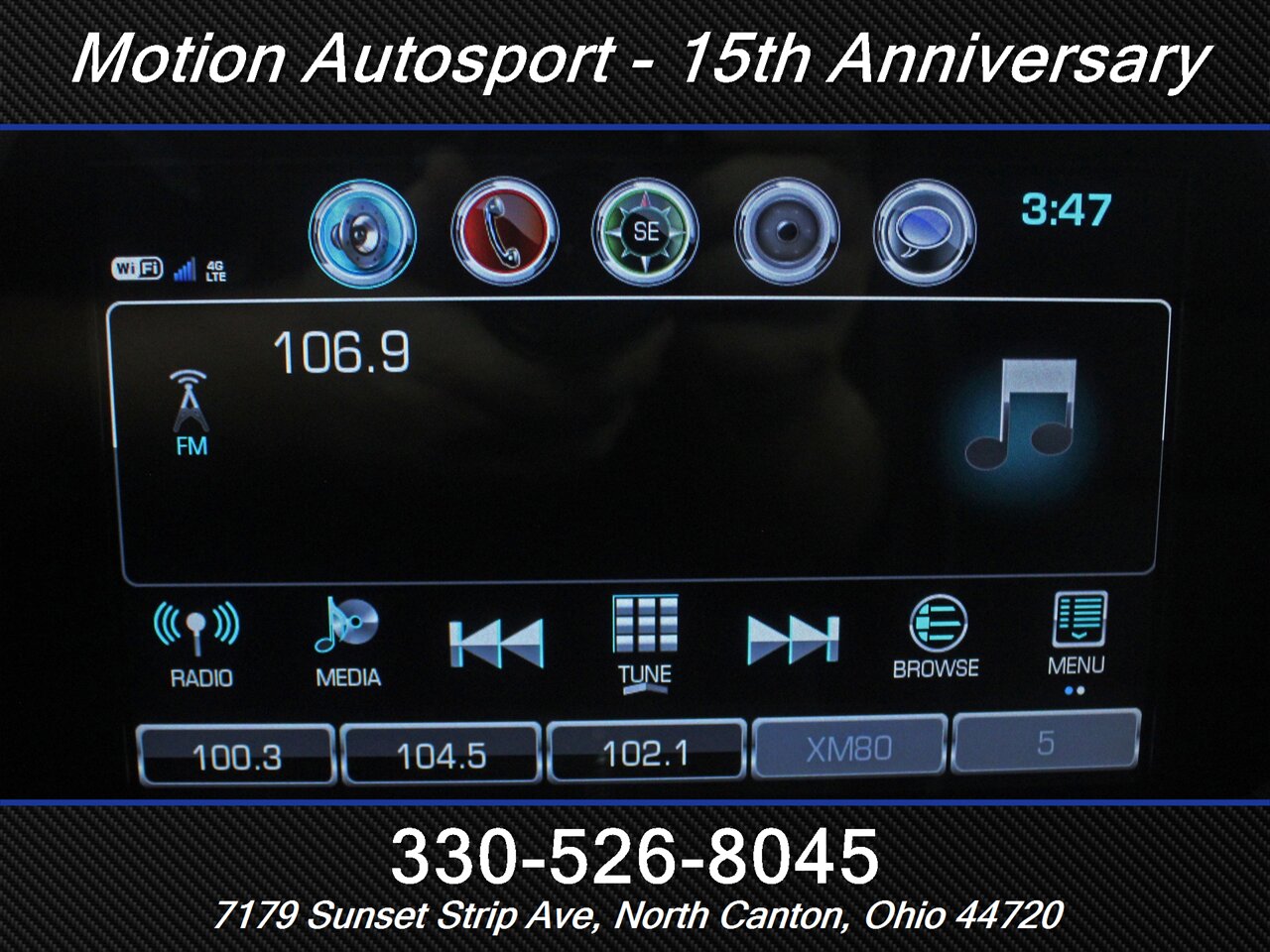 - Radio: AM/FM, touch screen display, voice operated