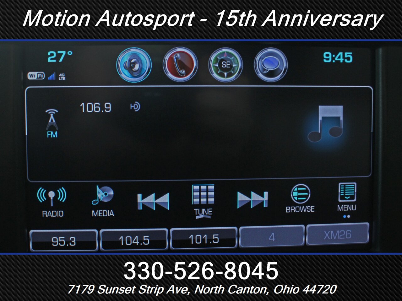 - Radio: AM/FM, HD radio, touch screen display, voice operated
