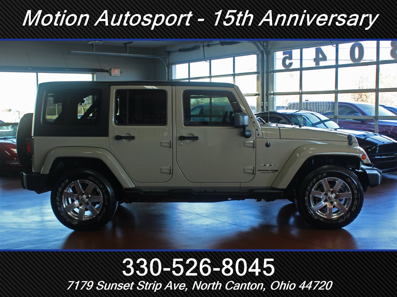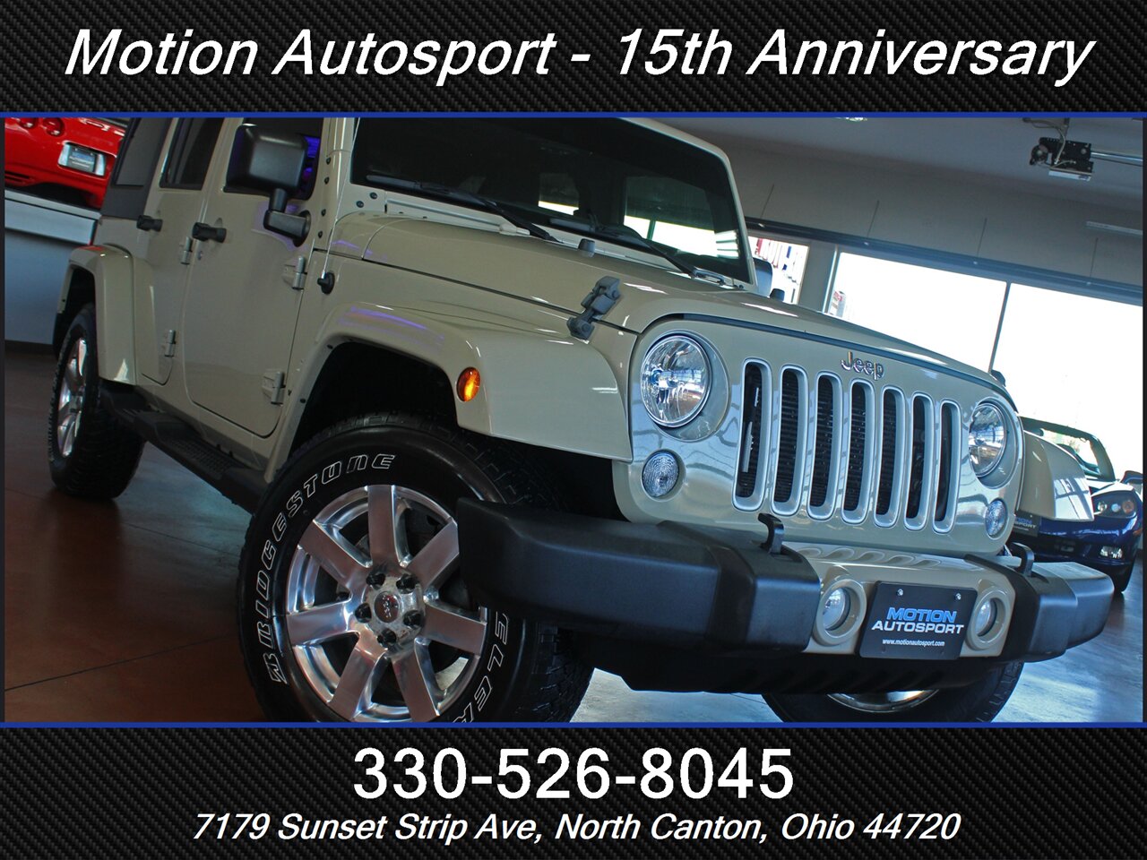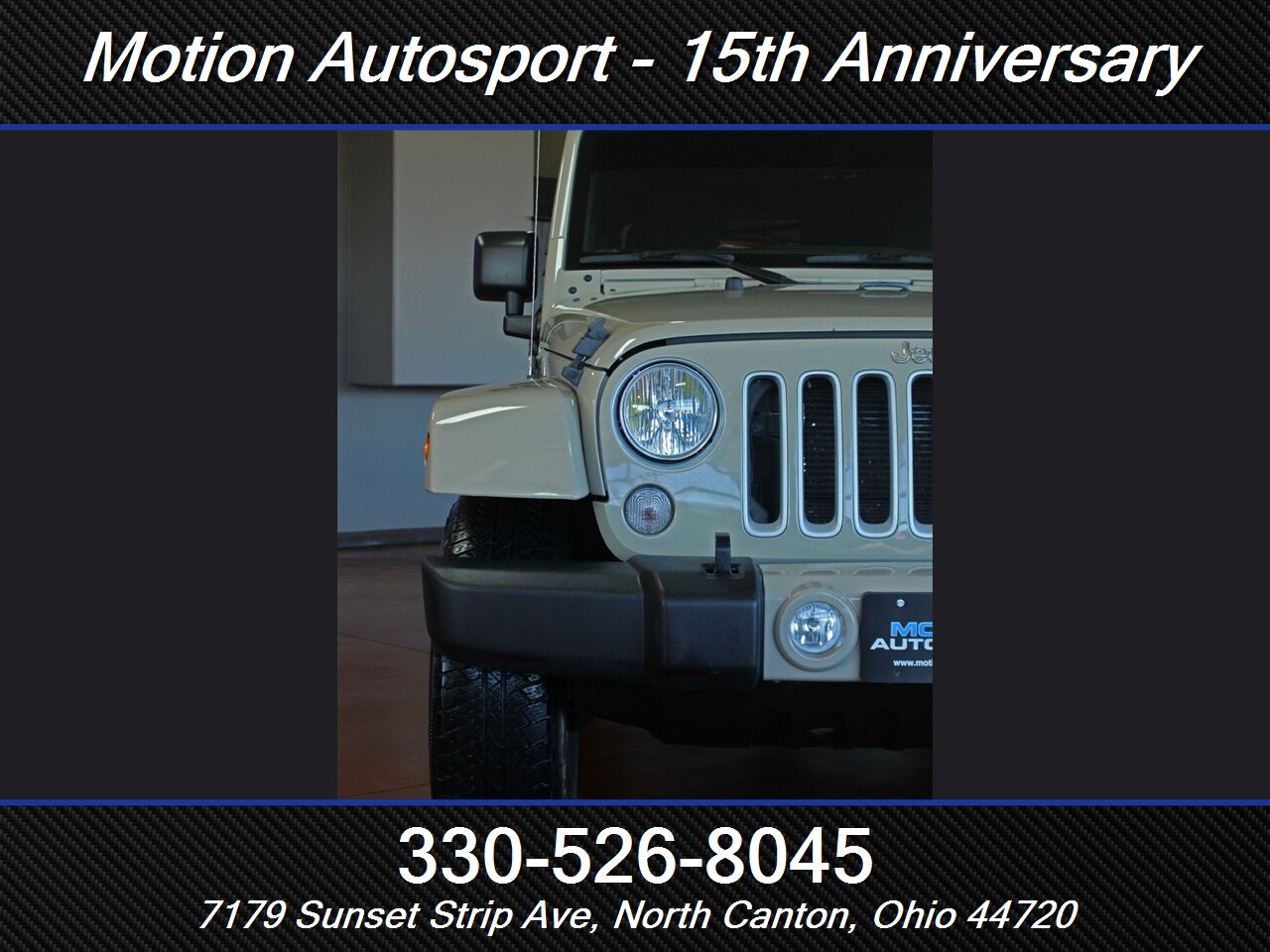 RARE GOBI TAN! Only 52,000 miles on this absolutely stunning ride! Rare GOBI TAN over black! High polished wheel option, fresh service and detail and an impeccable Carfax! JKs are hard to find like this anymore! SPRING IS ALMOST HERE! Ask us about our spectacular financing and extended service contracts. We take trades and ship vehicles nationwide. Visit www.motionautosport.com for 60 detailed photos. Call Mike for more details at 330-526-8045