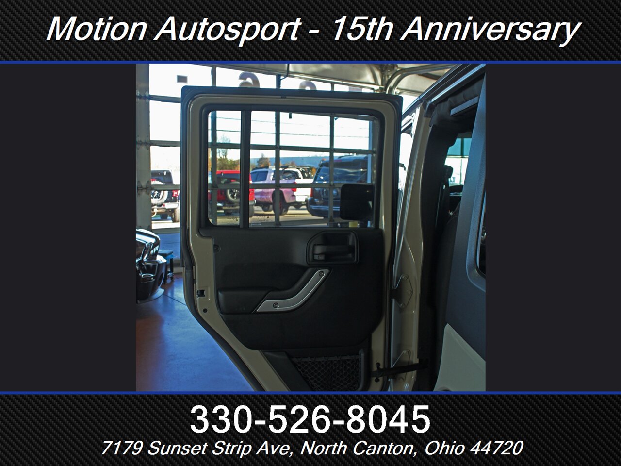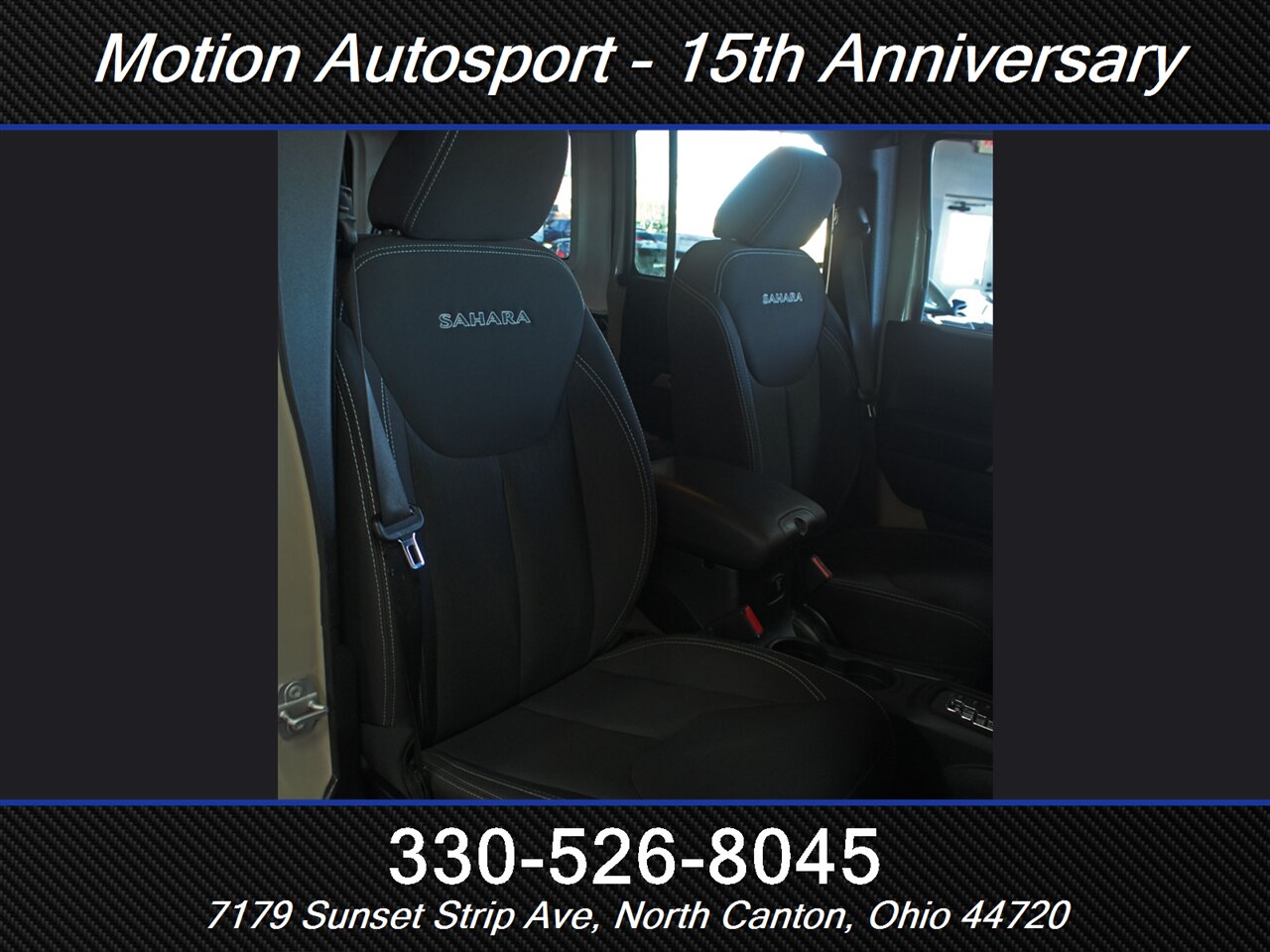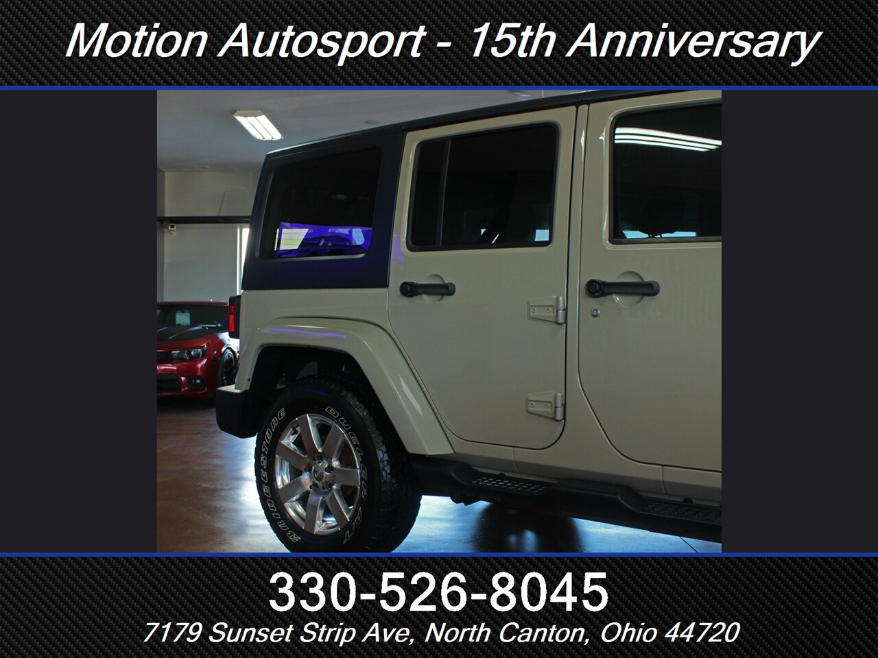 RARE GOBI TAN! Only 52,000 miles on this absolutely stunning ride! Rare GOBI TAN over black! High polished wheel option, fresh service and detail and an impeccable Carfax! JKs are hard to find like this anymore! SPRING IS ALMOST HERE! Ask us about our spectacular financing and extended service contracts. We take trades and ship vehicles nationwide. Visit www.motionautosport.com for 60 detailed photos. Call Mike for more details at 330-526-8045
