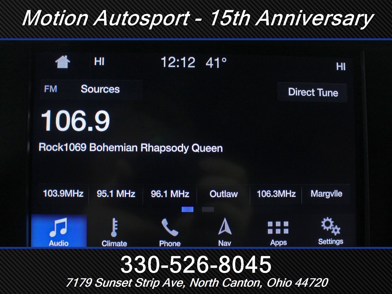 - Radio: AM/FM, HD radio, touch screen display, voice operated