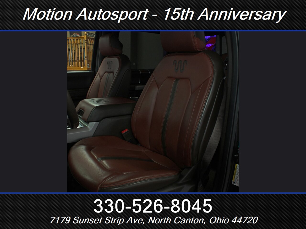 - King Ranch luxury leather appointments: Rich Java two-tone leather with signature King Ranch branding, premium stitching and real wood-and-metal trim for a cabin that says you mean business and comfort.