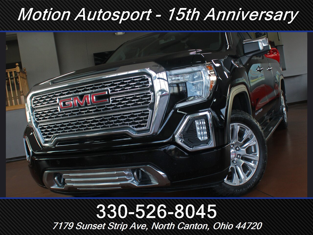 Introducing the 2019 GMC Sierra 1500 Denali, a premium full-size pickup truck that combines power, luxury, and advanced technology. This model is finished in a striking Onyx Black exterior, while the interior boasts a sophisticated Jet Black color scheme, creating an elegant and bold appearance.