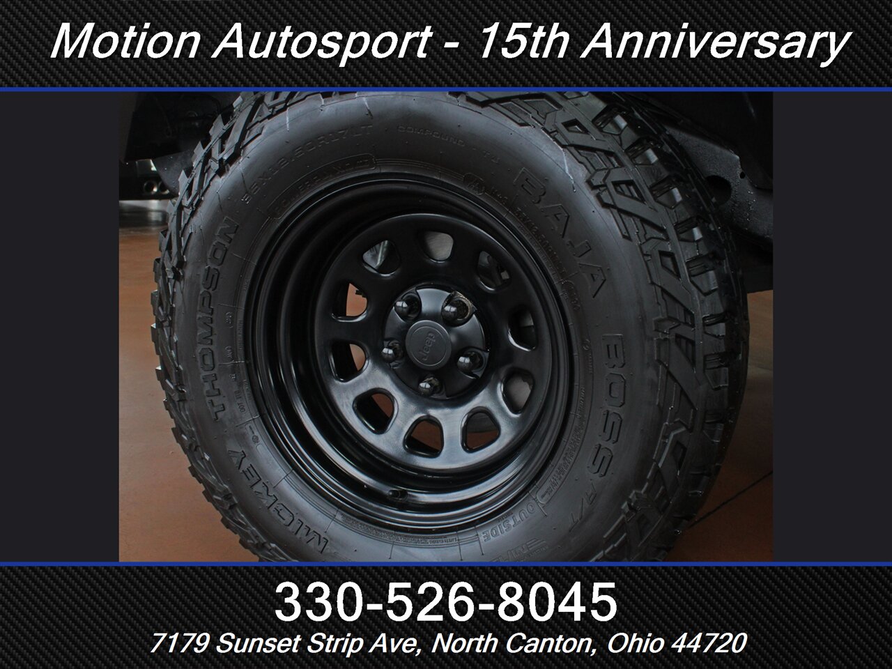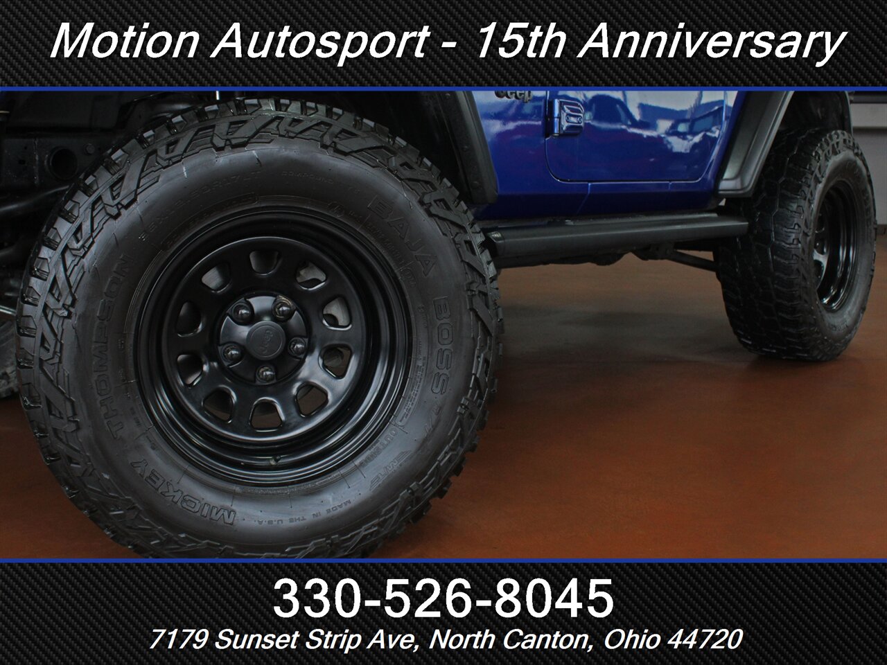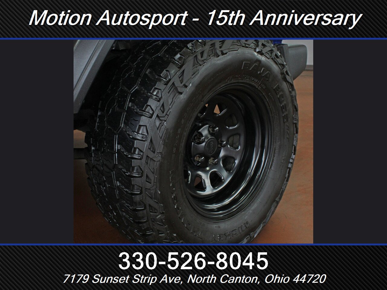- Custom lift: this Wrangler wears a lift that enhances ground clearance, trail capability, and road presence — elevating both performance and style. It’s ready to tackle bigger obstacles, carry larger tires, and broadcast its intent to explore.