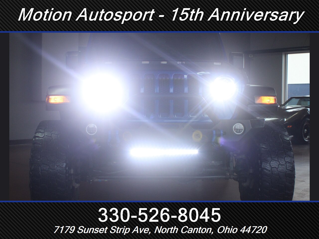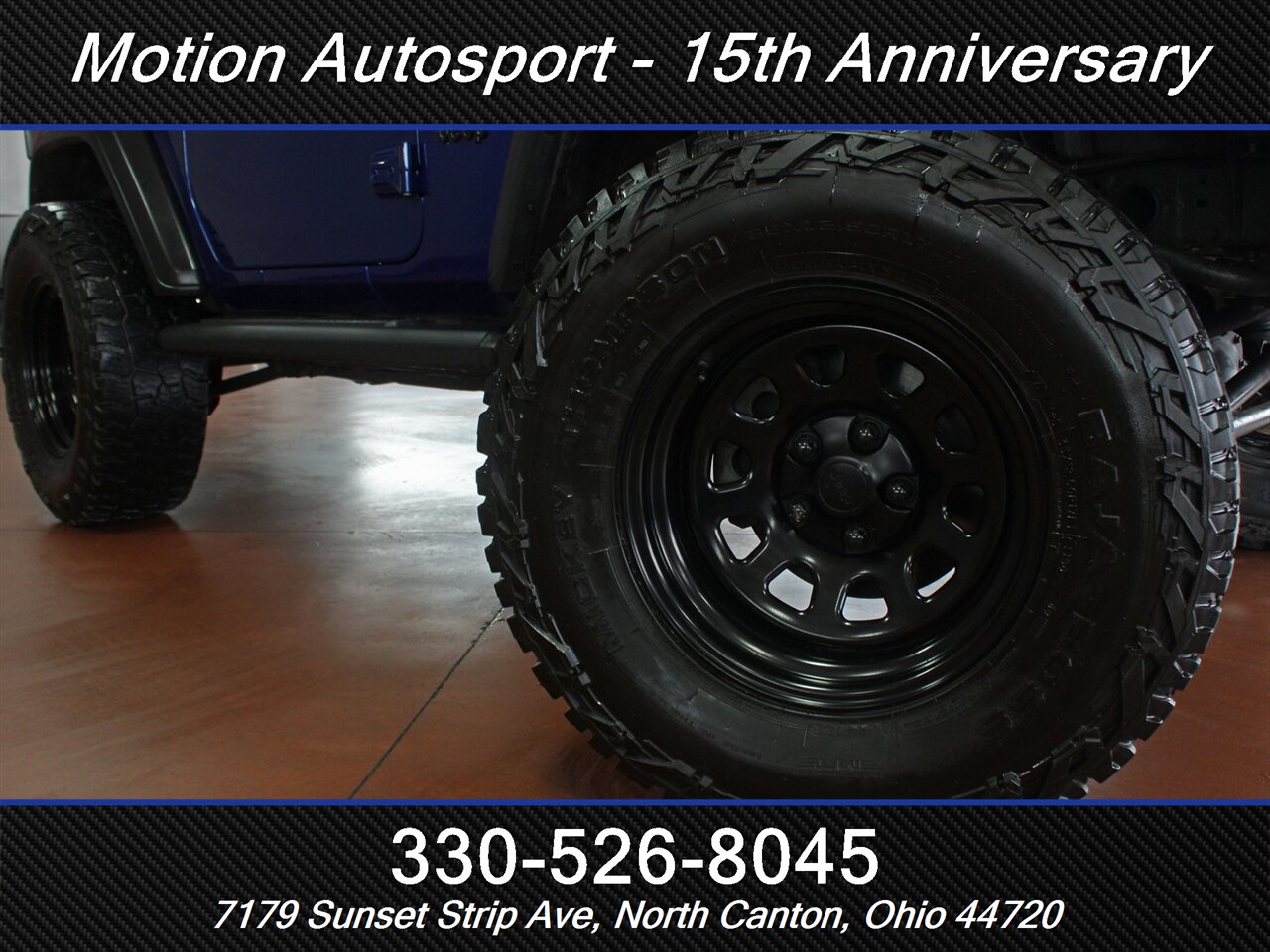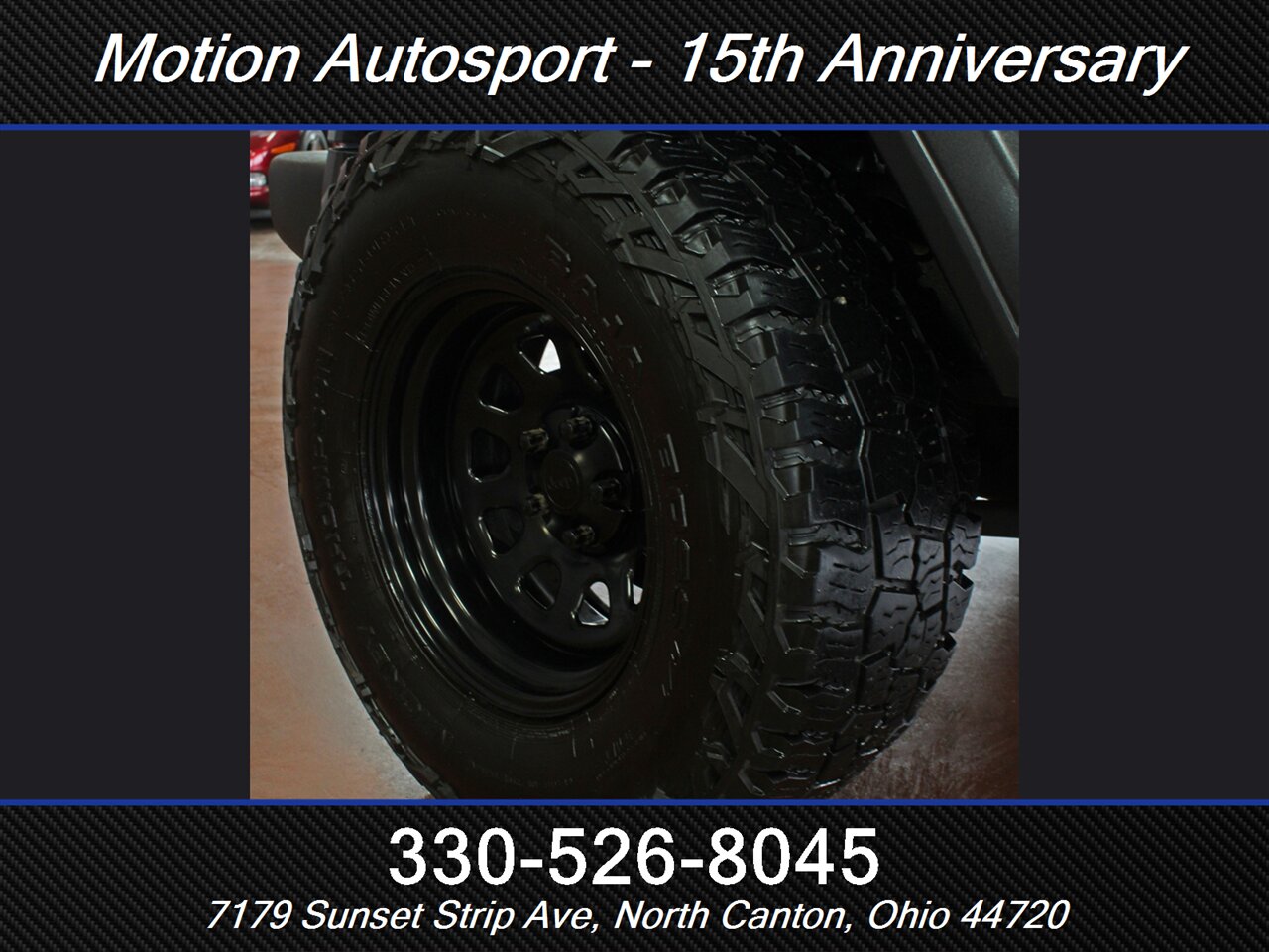 - Custom lift: this Wrangler wears a lift that enhances ground clearance, trail capability, and road presence — elevating both performance and style. It’s ready to tackle bigger obstacles, carry larger tires, and broadcast its intent to explore.