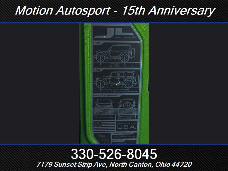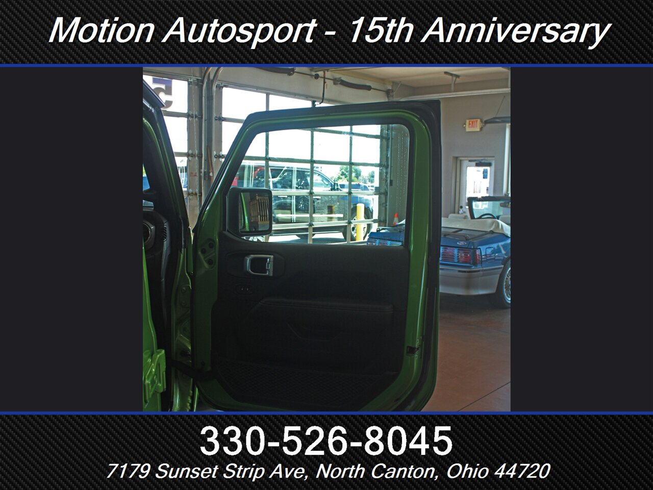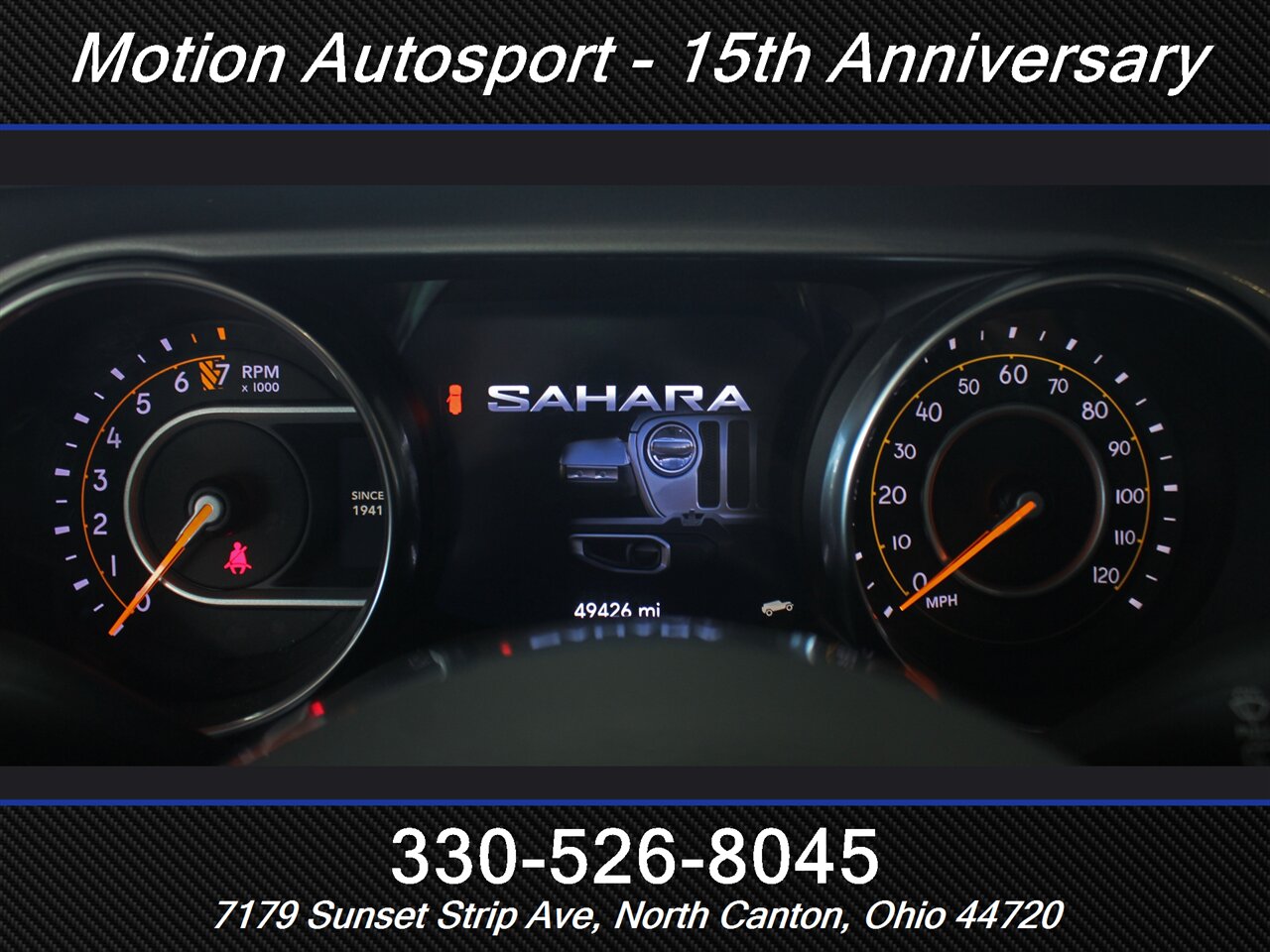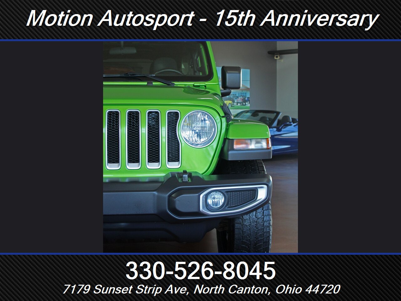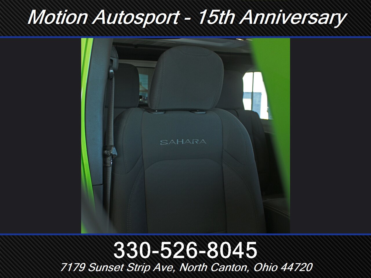 Wow! Rare Mojito Green! Only 49,000 miles on this rare Sahara! Stunning unit with the factory hard top, black Altitude wheel upgrade, fresh service and detail and an impeccable Carafax! THIS UNIT IS DEAD NEW INSIDE AND OUT! Ask us about our spectacular financing and extended service contracts. We take trades and ship vehicles nationwide. Visit www.motionautosport.com for 60 detailed photos. YOU WILL NOT FIND ANOTHER MOJITO GREEN SAHARA NICER THAN THIS ONE! Call Mike for more details at 330-526-8045