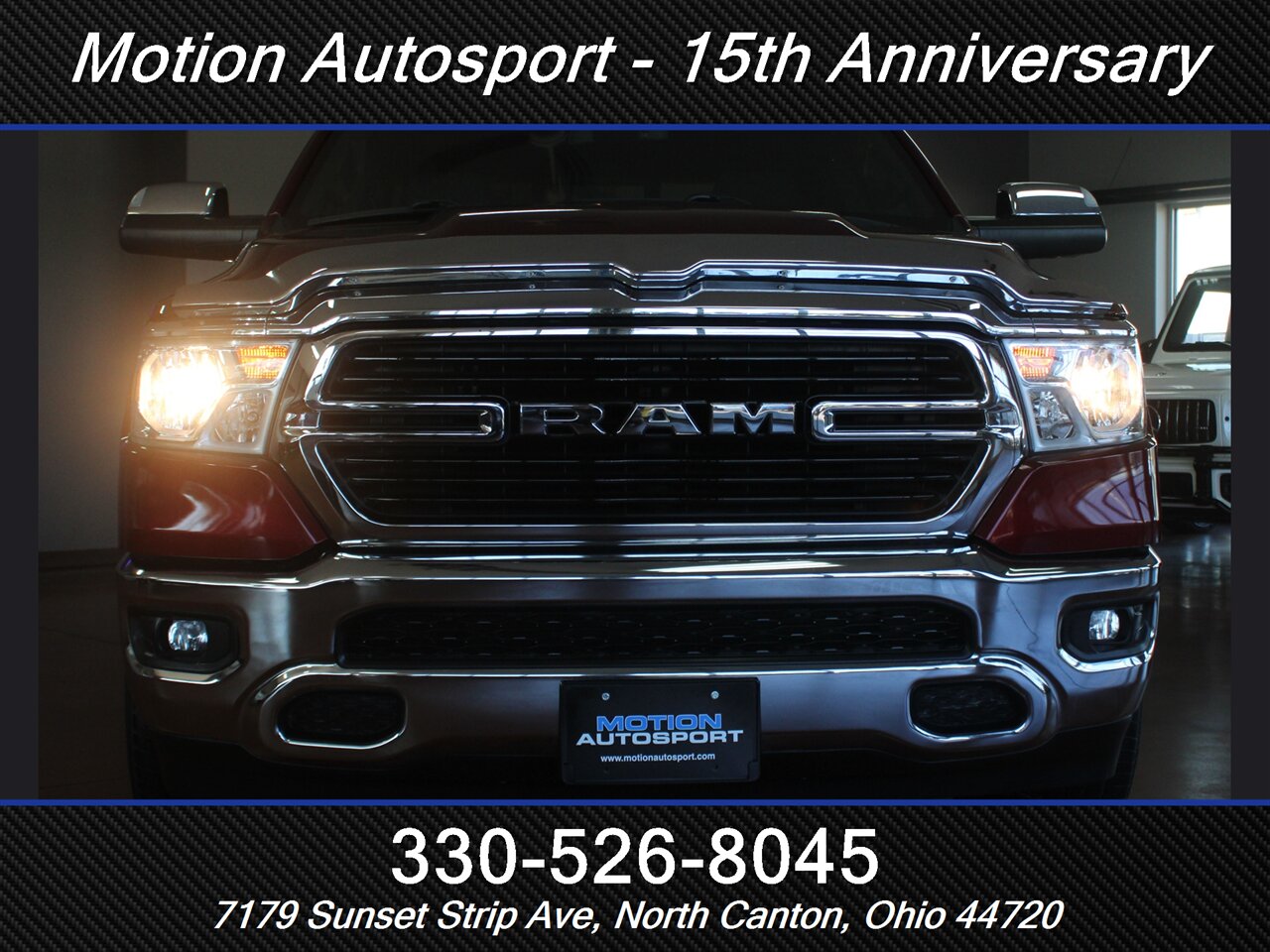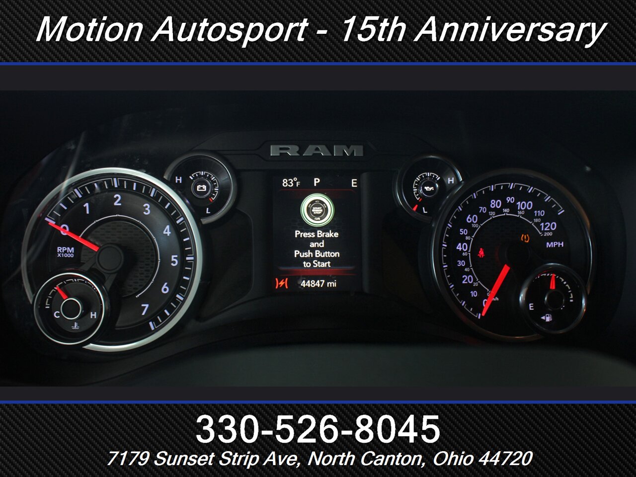 ONE OWNER RIG! Wow is this Ram good looking! Loaded Big Horn with only 44,000 miles! big screen, chrome 20s wrapped in deep rubber, fresh service and detail and a clean Carfax! LOTS OF NEW BODY RAM FOR NOT A LOT OF MONEY! STUNNING DELMONICO RED PAINT! Ask us about our spectacular financing and extended service contracts. We take trades and ship vehicles nationwide. Visit www.motionautosport.com for 60 detailed photos. Call Brandon for more details at 330-526-8045. Internet price is a finance price only. Visit our website for full pricing details