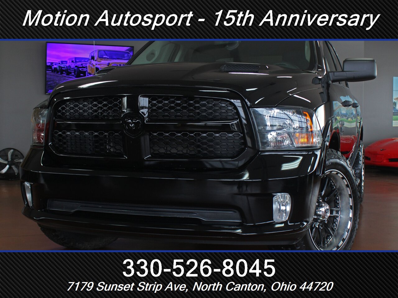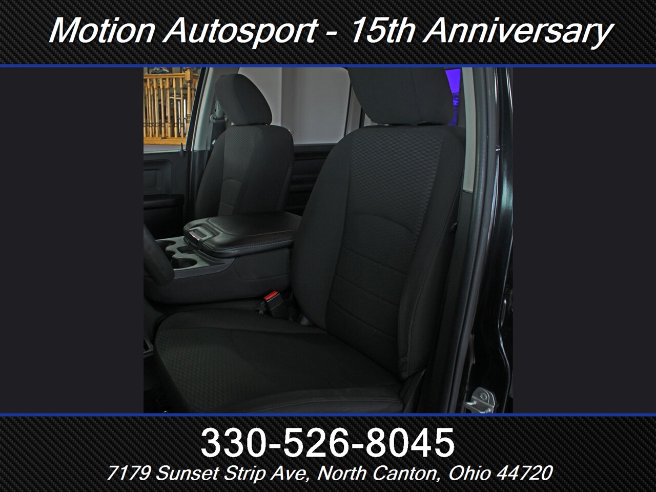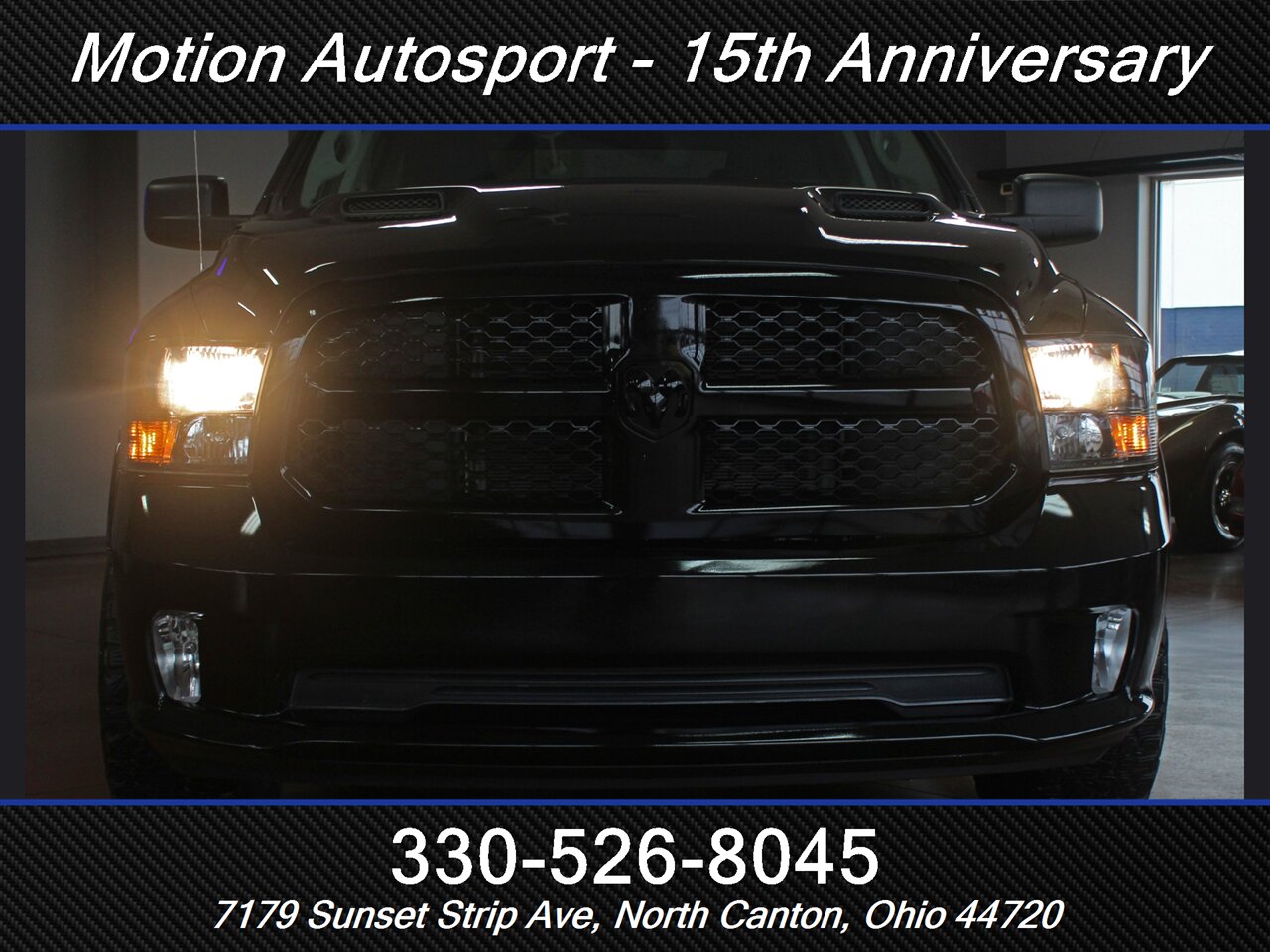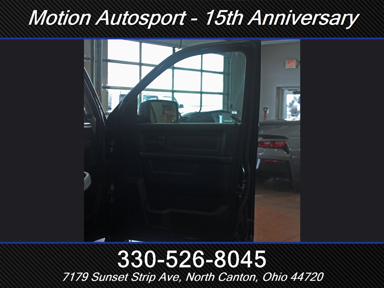 BE THE BAD BOY ON THE BLOCK WITH THIS BLACK TOP RAM! FULL CREW CAB! Loaded Express with the rare Night Edition Package! Stunning black paint, touch screen audio, back up, Uconnect, the big dog 5.7 Hemi V8, custom wheels, fresh service and an impeccable Carfax! ONLY 42,000 VERY WELL KEPT MILES! Ask us about our spectacular financing and extended service contracts. We take trades and ship vehicles nationwide. Visit www.motionautosport.com for 60 detailed photos. Internet price is dealer finance only. Call Brandon for more detail at 330-526-8045