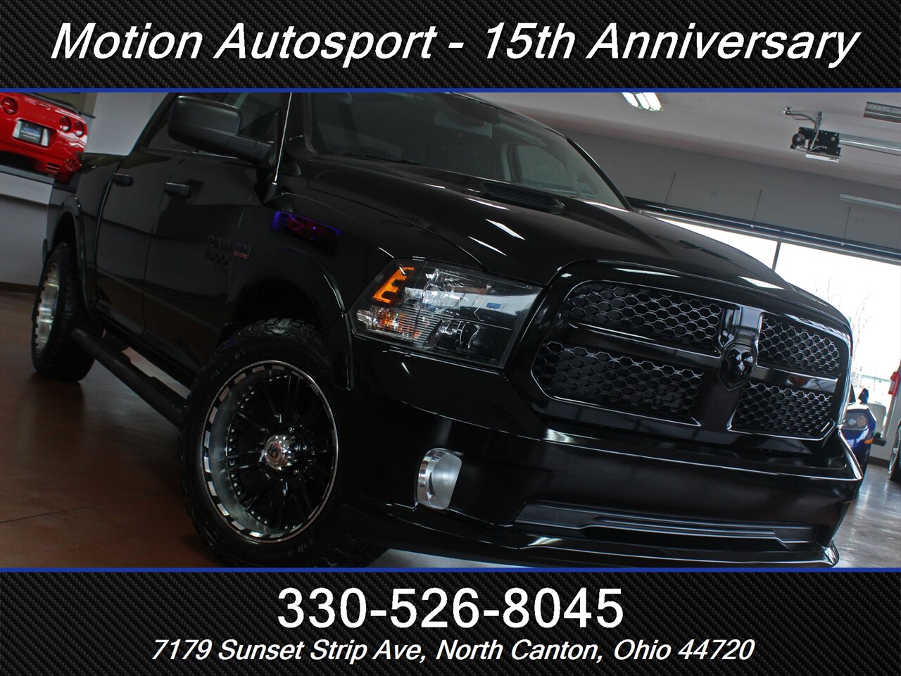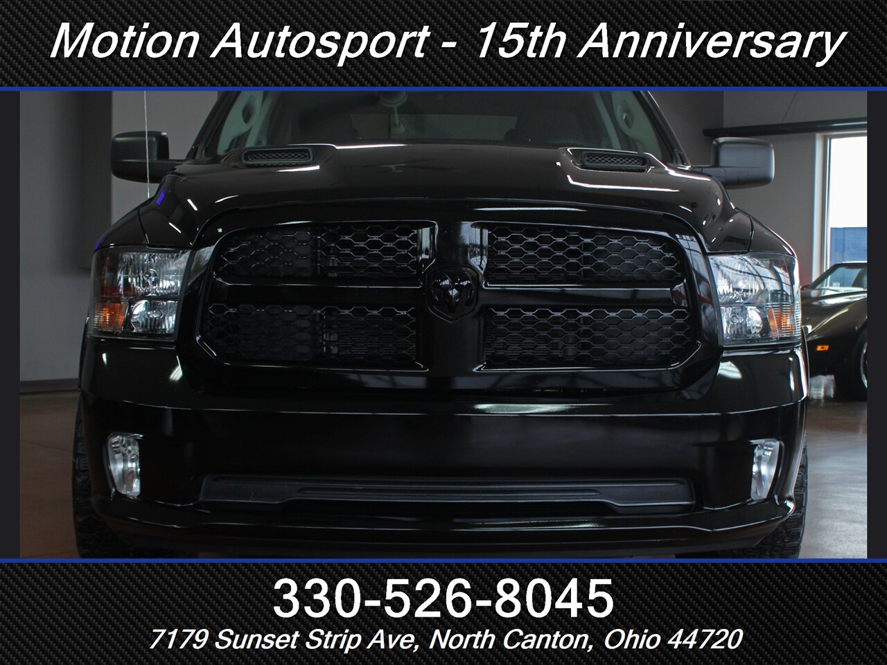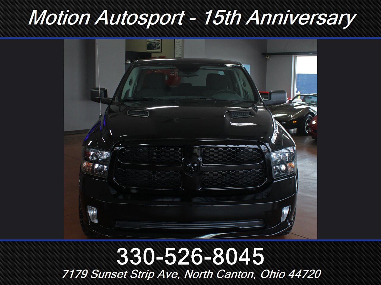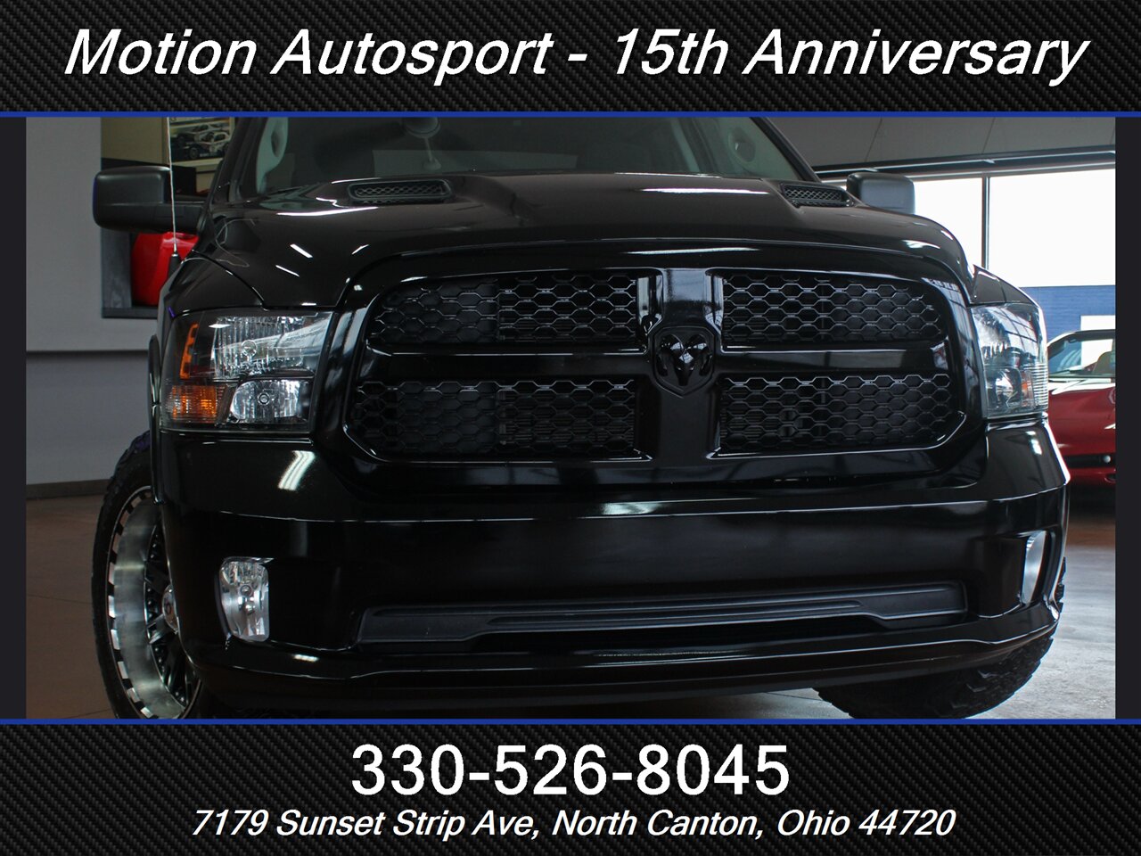 BE THE BAD BOY ON THE BLOCK WITH THIS BLACK TOP RAM! FULL CREW CAB! Loaded Express with the rare Night Edition Package! Stunning black paint, touch screen audio, back up, Uconnect, the big dog 5.7 Hemi V8, custom wheels, fresh service and an impeccable Carfax! ONLY 42,000 VERY WELL KEPT MILES! Ask us about our spectacular financing and extended service contracts. We take trades and ship vehicles nationwide. Visit www.motionautosport.com for 60 detailed photos. Internet price is dealer finance only. Call Brandon for more detail at 330-526-8045