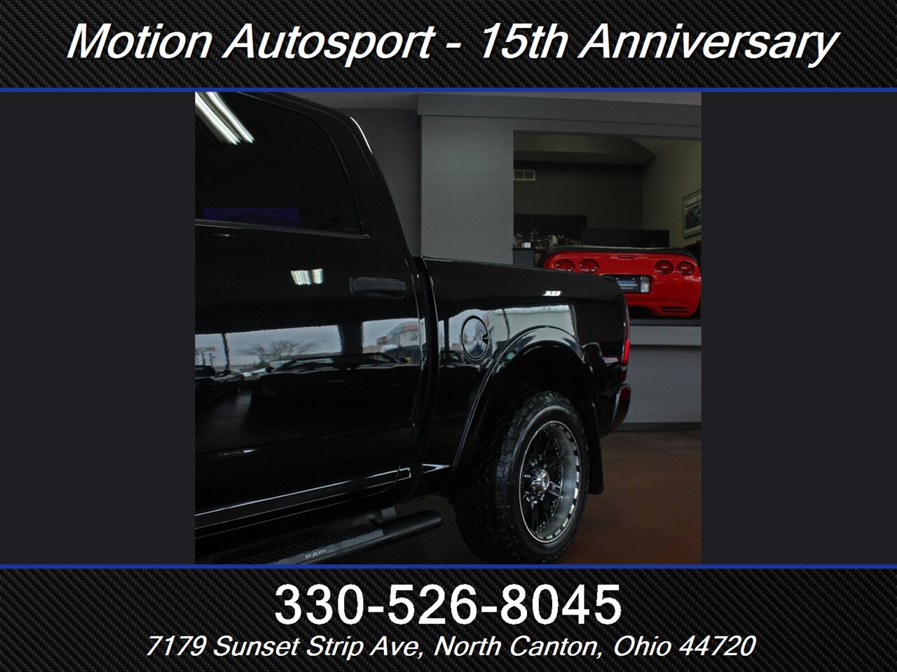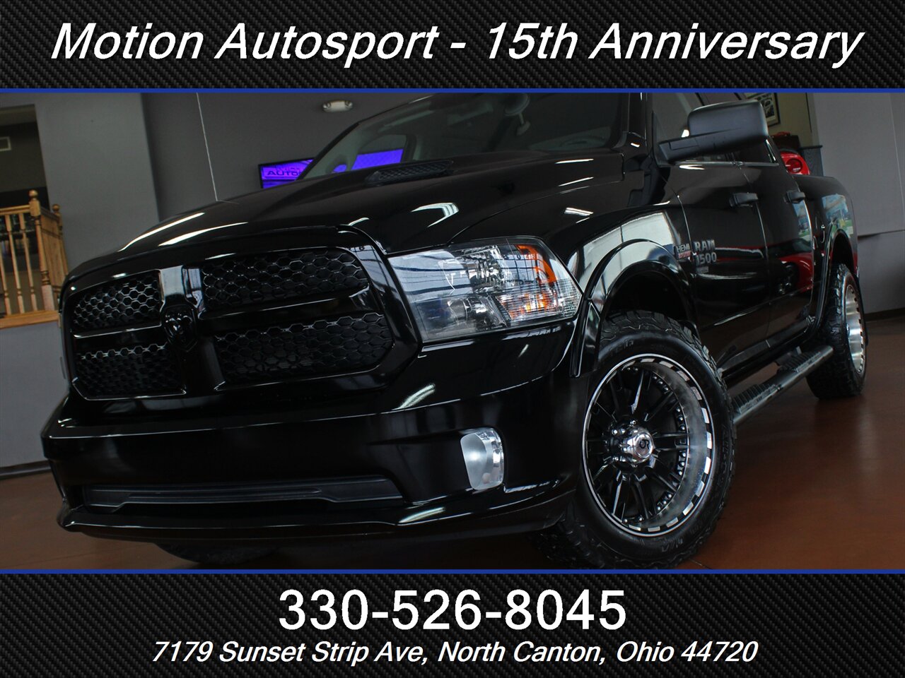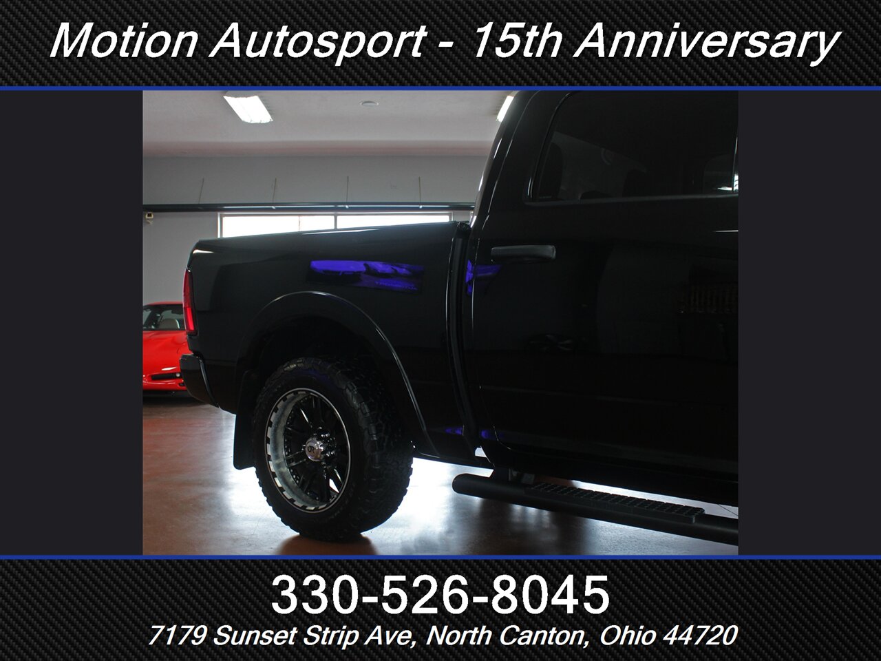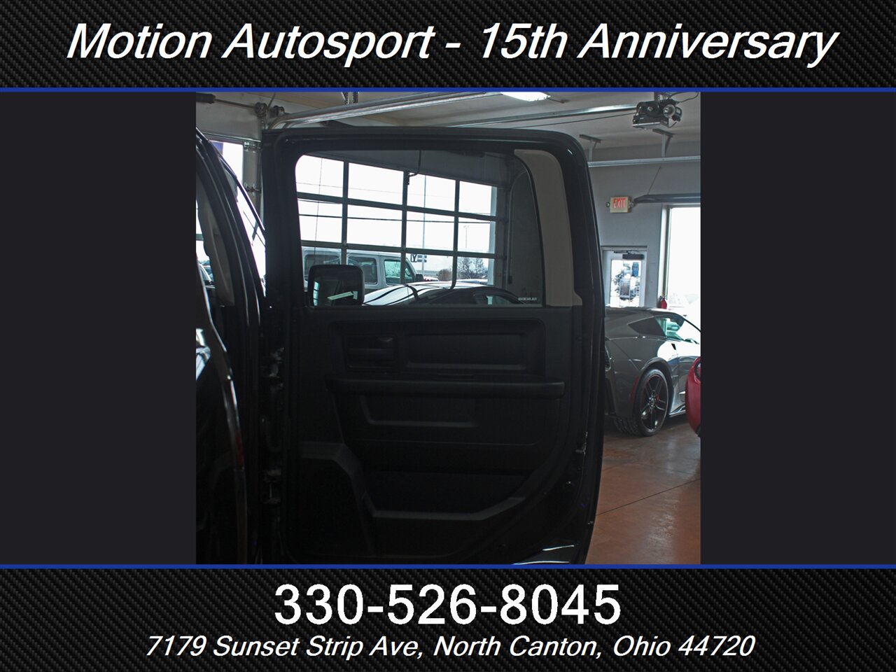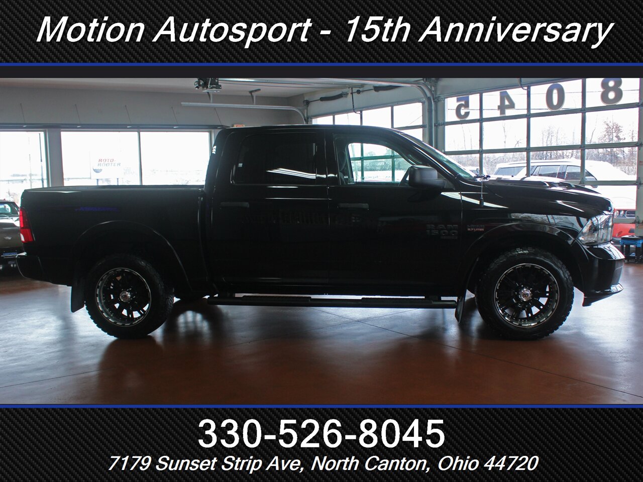 BE THE BAD BOY ON THE BLOCK WITH THIS BLACK TOP RAM! FULL CREW CAB! Loaded Express with the rare Night Edition Package! Stunning black paint, touch screen audio, back up, Uconnect, the big dog 5.7 Hemi V8, custom wheels, fresh service and an impeccable Carfax! ONLY 42,000 VERY WELL KEPT MILES! Ask us about our spectacular financing and extended service contracts. We take trades and ship vehicles nationwide. Visit www.motionautosport.com for 60 detailed photos. Internet price is dealer finance only. Call Brandon for more detail at 330-526-8045