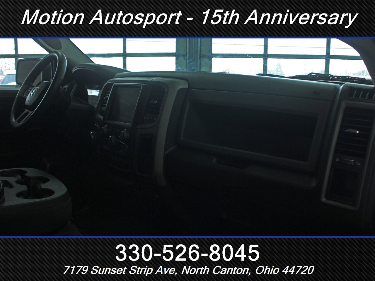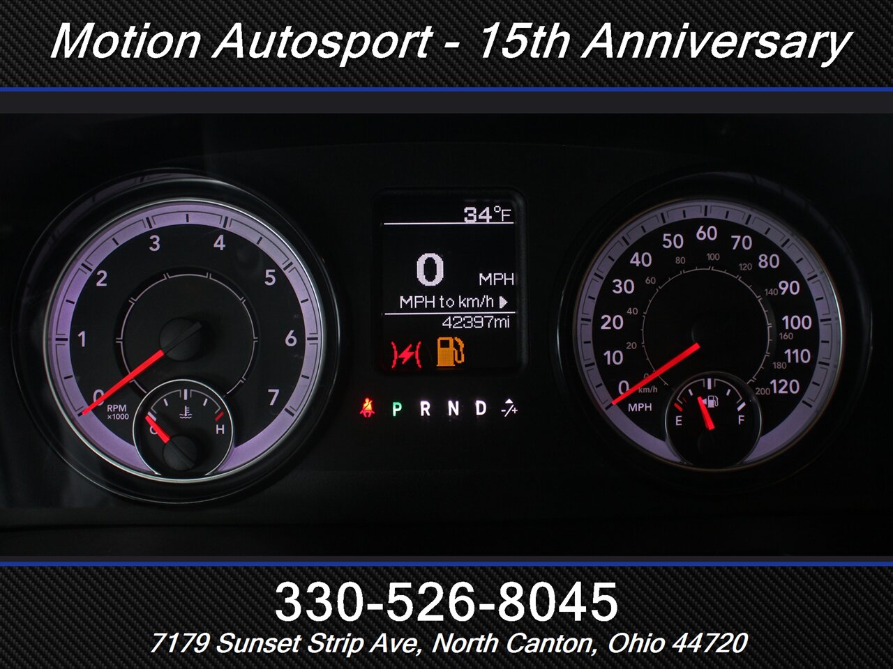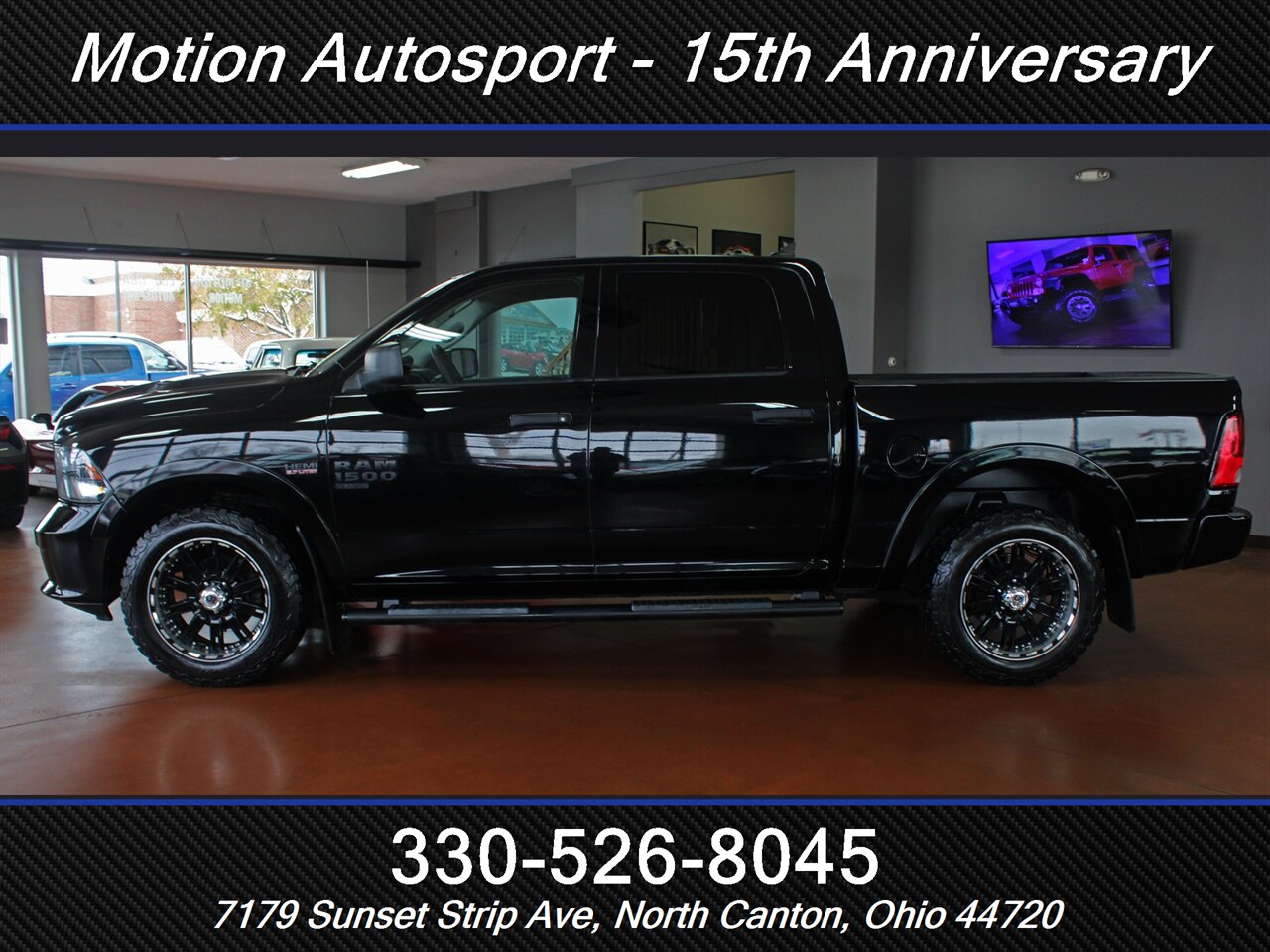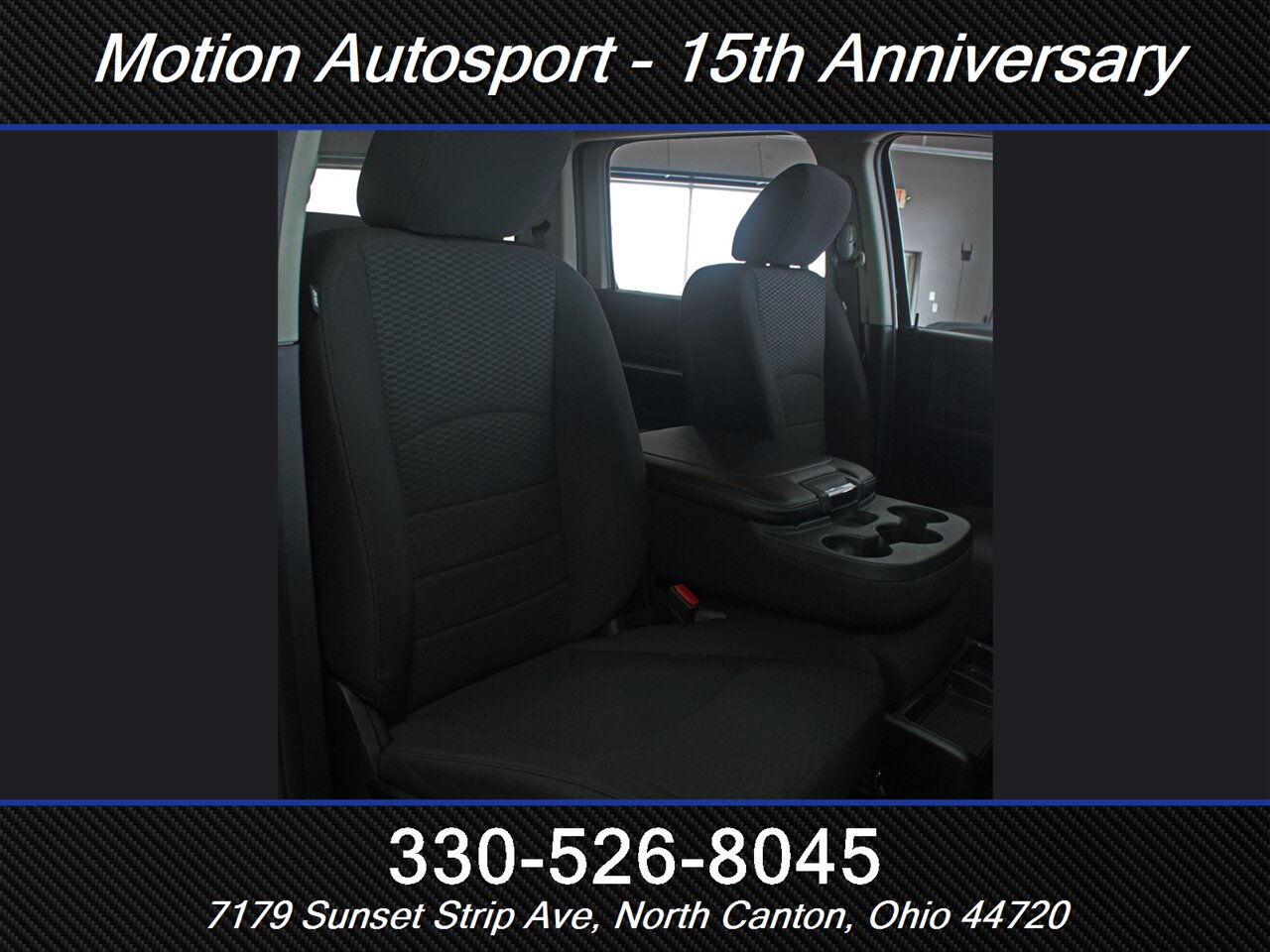 BE THE BAD BOY ON THE BLOCK WITH THIS BLACK TOP RAM! FULL CREW CAB! Loaded Express with the rare Night Edition Package! Stunning black paint, touch screen audio, back up, Uconnect, the big dog 5.7 Hemi V8, custom wheels, fresh service and an impeccable Carfax! ONLY 42,000 VERY WELL KEPT MILES! Ask us about our spectacular financing and extended service contracts. We take trades and ship vehicles nationwide. Visit www.motionautosport.com for 60 detailed photos. Internet price is dealer finance only. Call Brandon for more detail at 330-526-8045