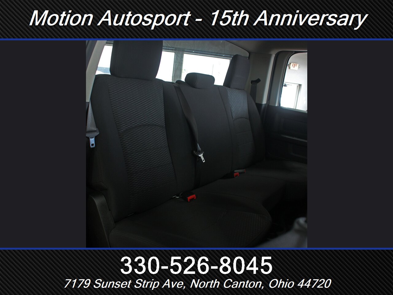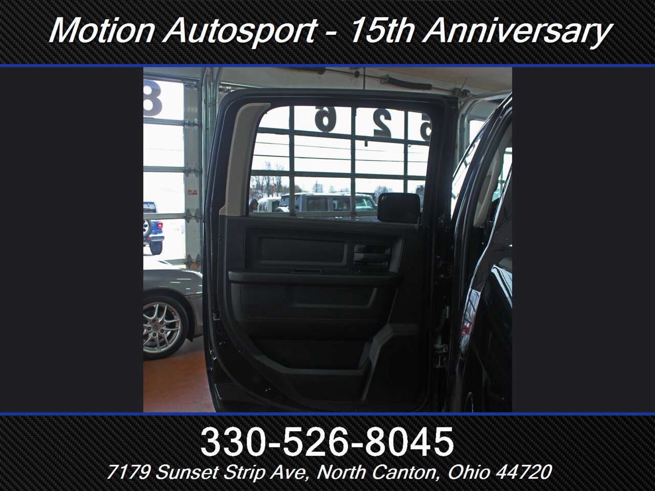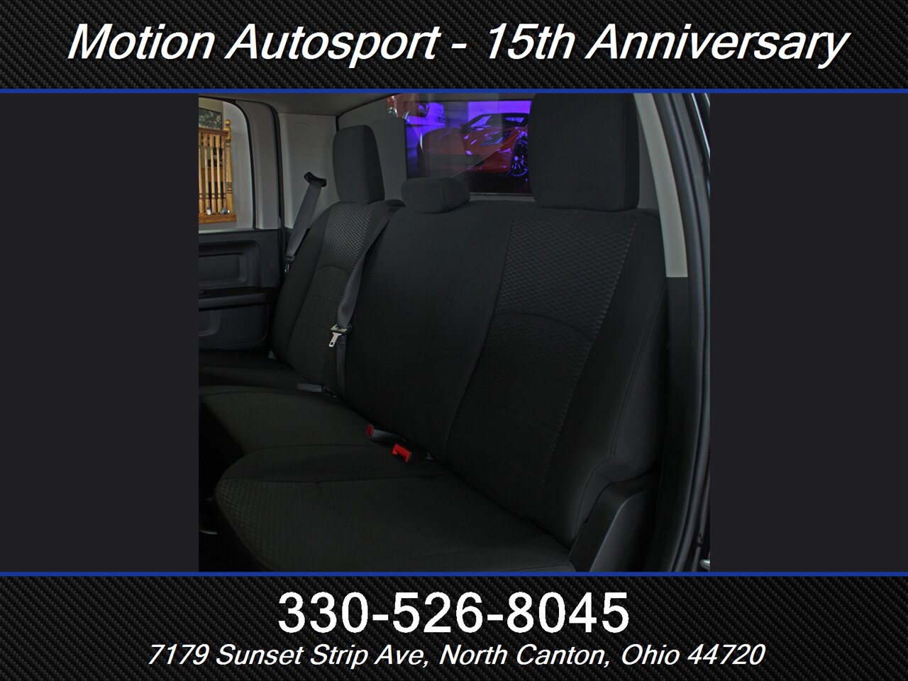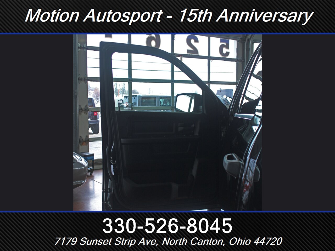 BE THE BAD BOY ON THE BLOCK WITH THIS BLACK TOP RAM! FULL CREW CAB! Loaded Express with the rare Night Edition Package! Stunning black paint, touch screen audio, back up, Uconnect, the big dog 5.7 Hemi V8, custom wheels, fresh service and an impeccable Carfax! ONLY 42,000 VERY WELL KEPT MILES! Ask us about our spectacular financing and extended service contracts. We take trades and ship vehicles nationwide. Visit www.motionautosport.com for 60 detailed photos. Internet price is dealer finance only. Call Brandon for more detail at 330-526-8045