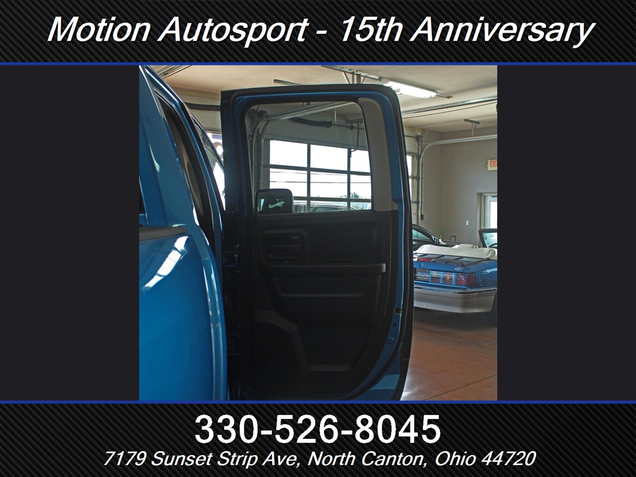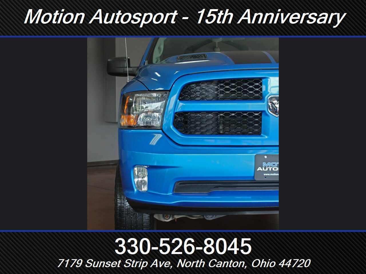 HOT RAM ALERT! Southern truck with a killer look! Loaded Express with the Hemi Striping, Sport hoot, lift kit, the big dog 5.7 Hemi V8, fresh service and an impeccable Carfax! A stunning, rust free gem finished in Hydro Blue metallic! Comes complete with fresh service and detail and an impeccable Carfax! Ask us about our spectacular financing and extended service contracts. We take trades and ship vehicles nationwide. Visit www.motionautosport.com for 60 detailed photos. Call Jeff for more details at 330-526-8045