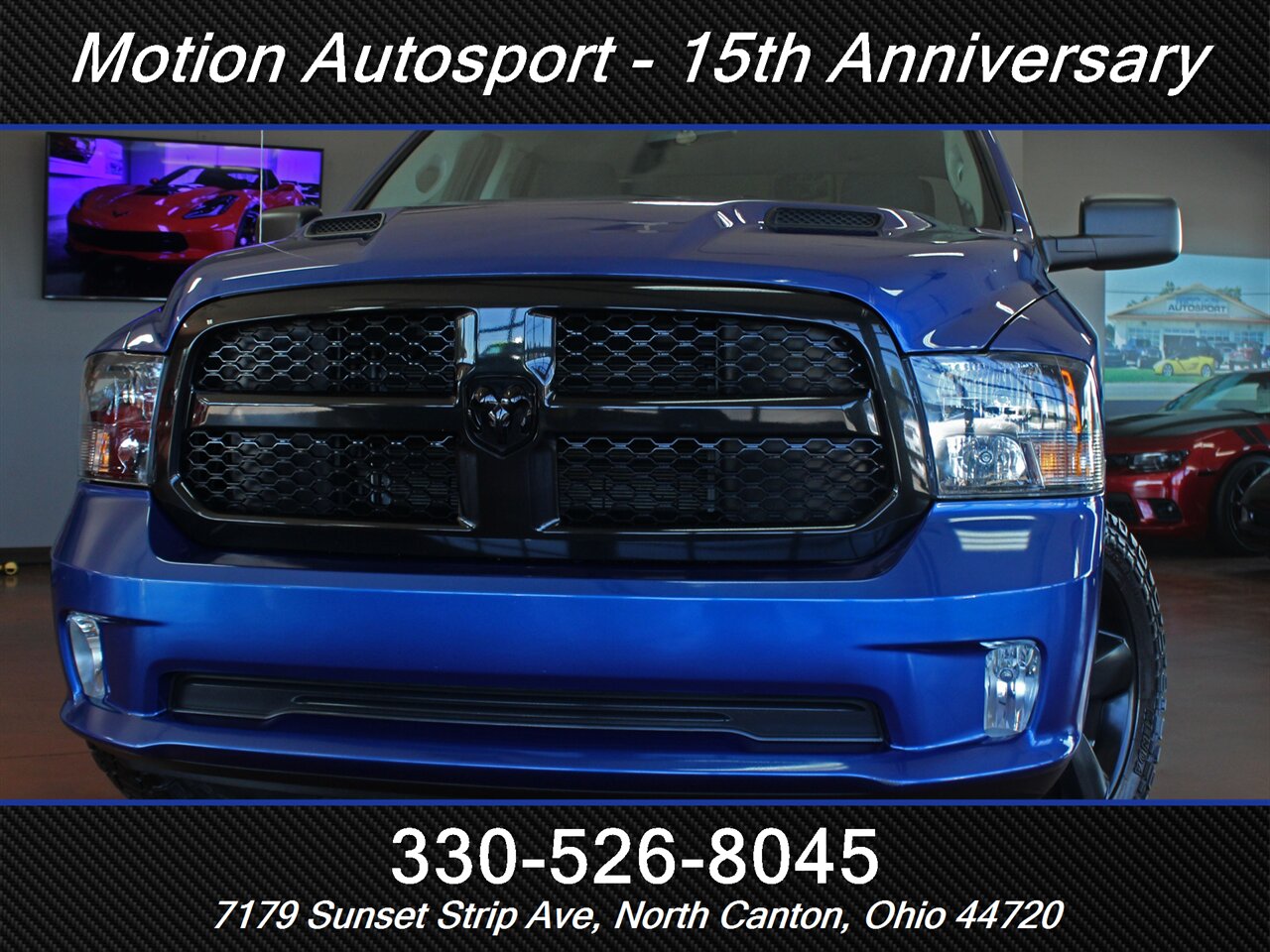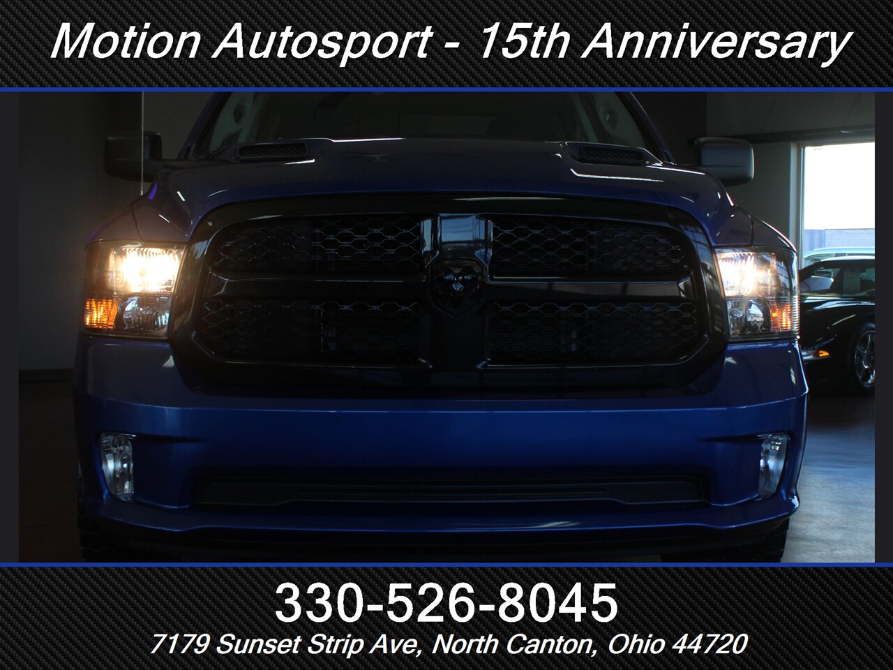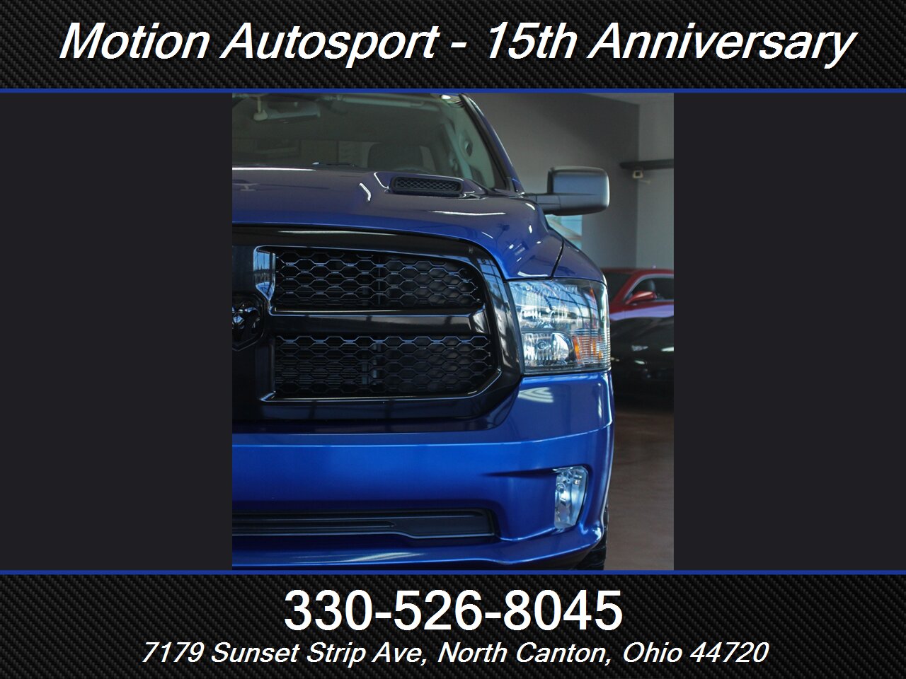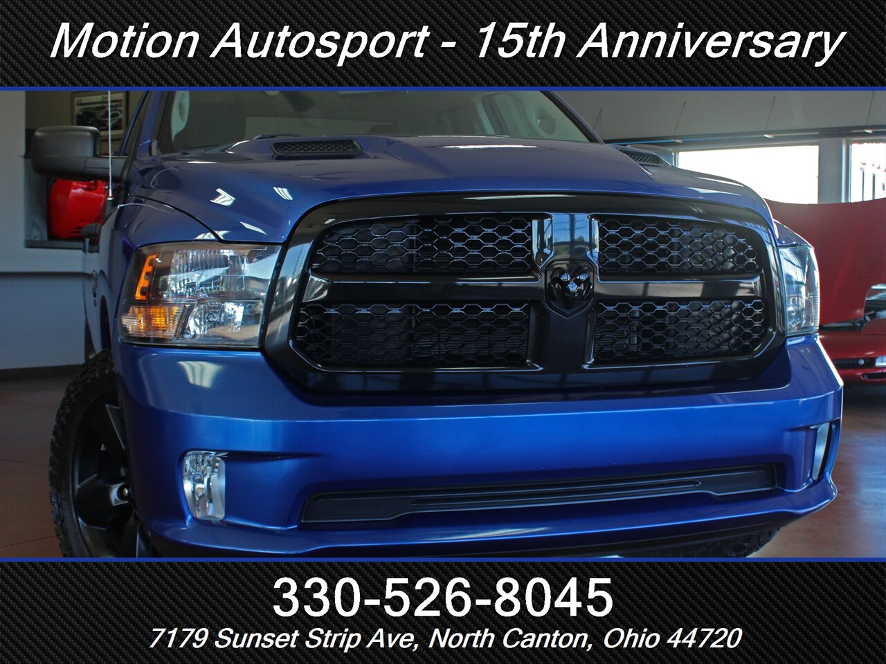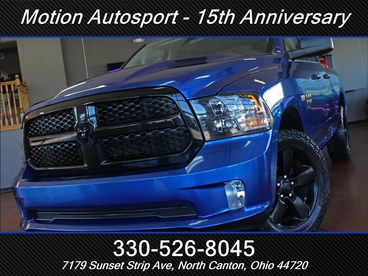 BE THE BAD BOY ON THE BLOCK WITH THIS Night Edition Ram! Loaded Express with the rare Night Edition Package! Stunning and rare true blue metallic paint, touch screen audio, back up, Uconnect, fresh service and an impeccable Carfax! ONLY 70,000 VERY WELL KEPT MILES! Ask us about our spectacular financing and extended service contracts. We take trades and ship vehicles nationwide. Visit www.motionautosport.com for 60 detailed photos. Internet price is dealer finance only. Cash price is 26,966. Call Brandon for more detail at 330-526-8045