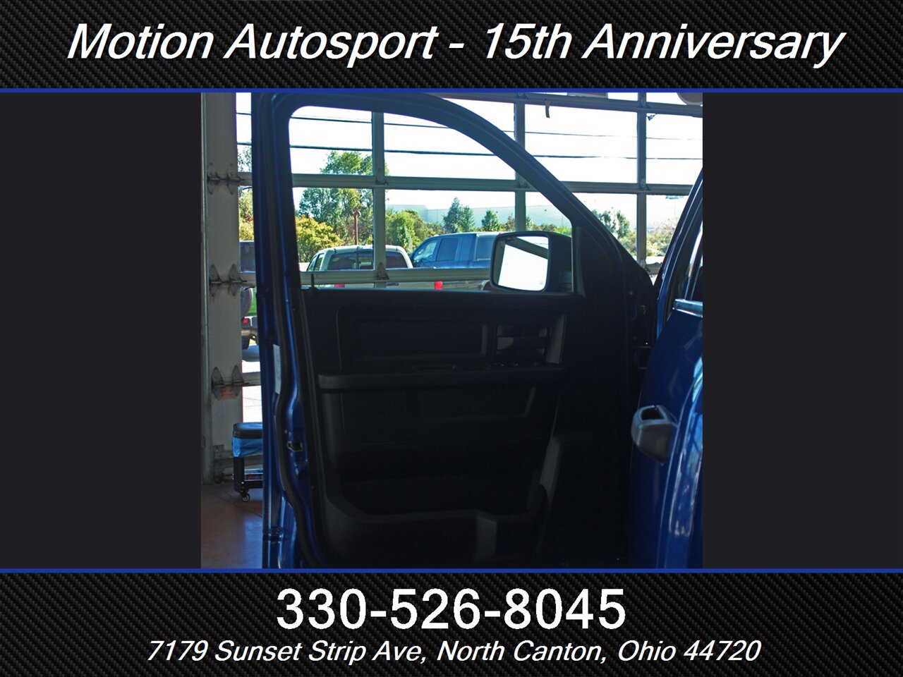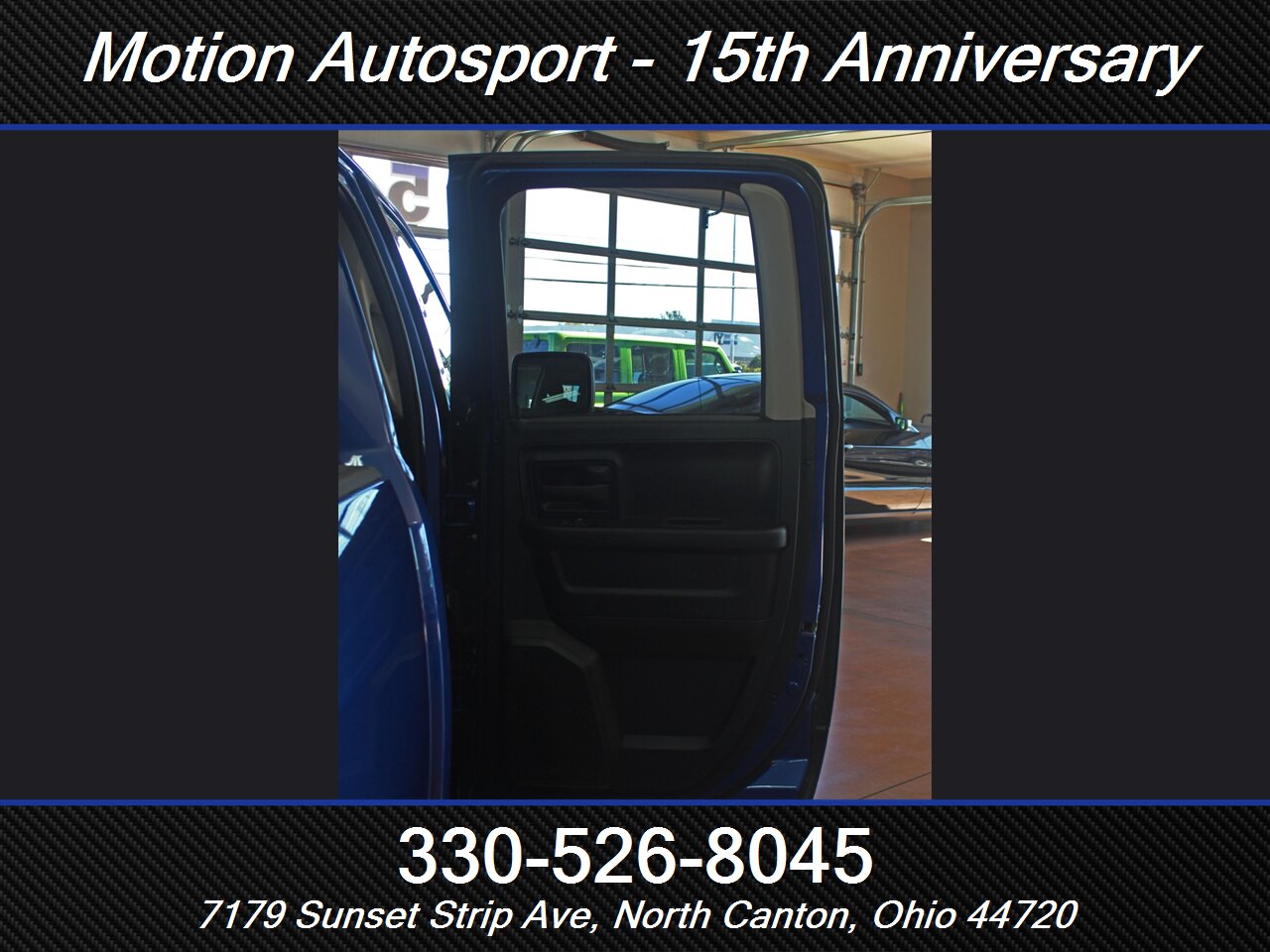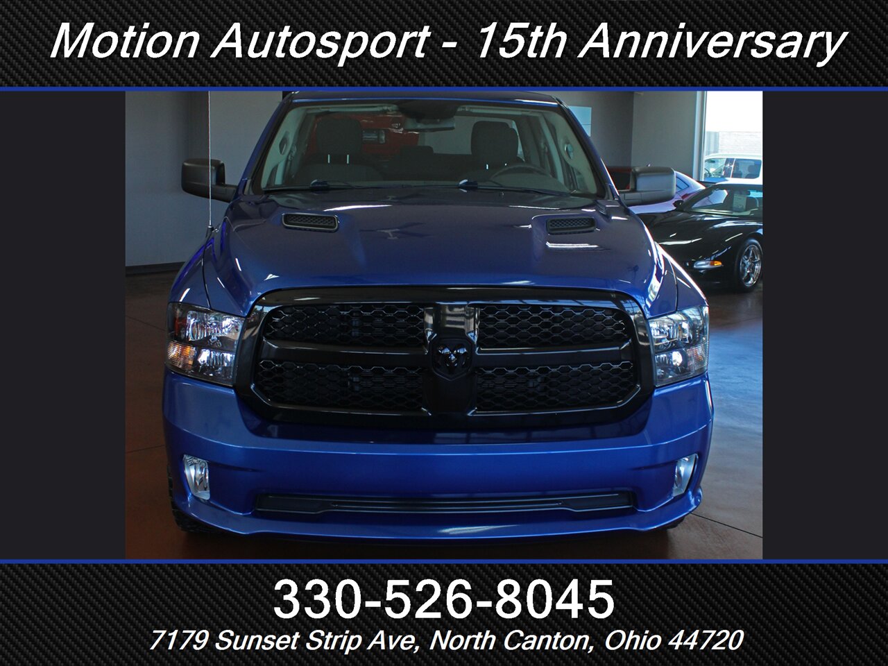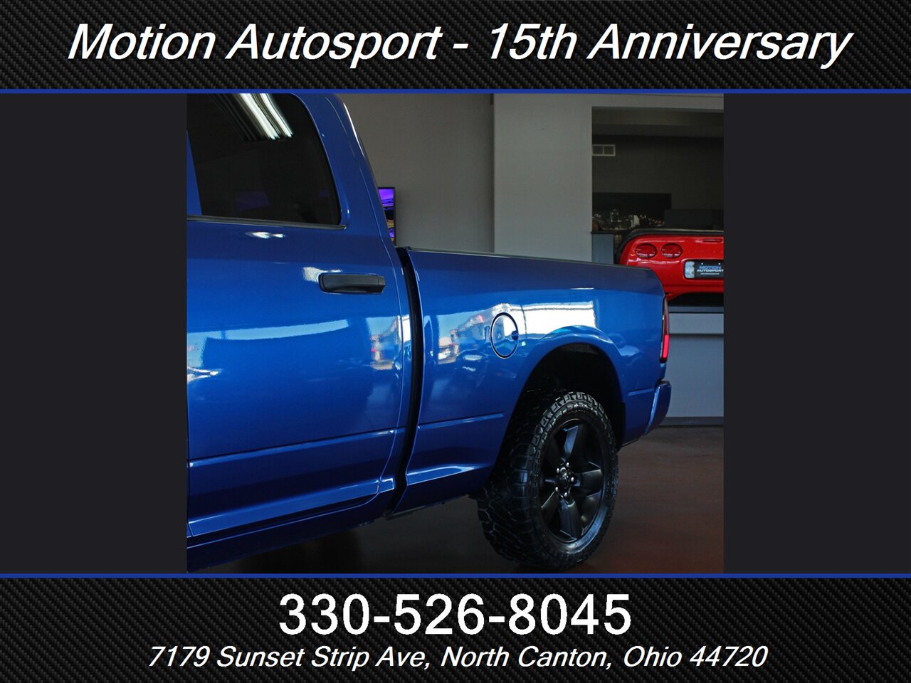BE THE BAD BOY ON THE BLOCK WITH THIS Night Edition Ram! Loaded Express with the rare Night Edition Package! Stunning and rare true blue metallic paint, touch screen audio, back up, Uconnect, fresh service and an impeccable Carfax! ONLY 70,000 VERY WELL KEPT MILES! Ask us about our spectacular financing and extended service contracts. We take trades and ship vehicles nationwide. Visit www.motionautosport.com for 60 detailed photos. Internet price is dealer finance only. Cash price is 26,966. Call Brandon for more detail at 330-526-8045