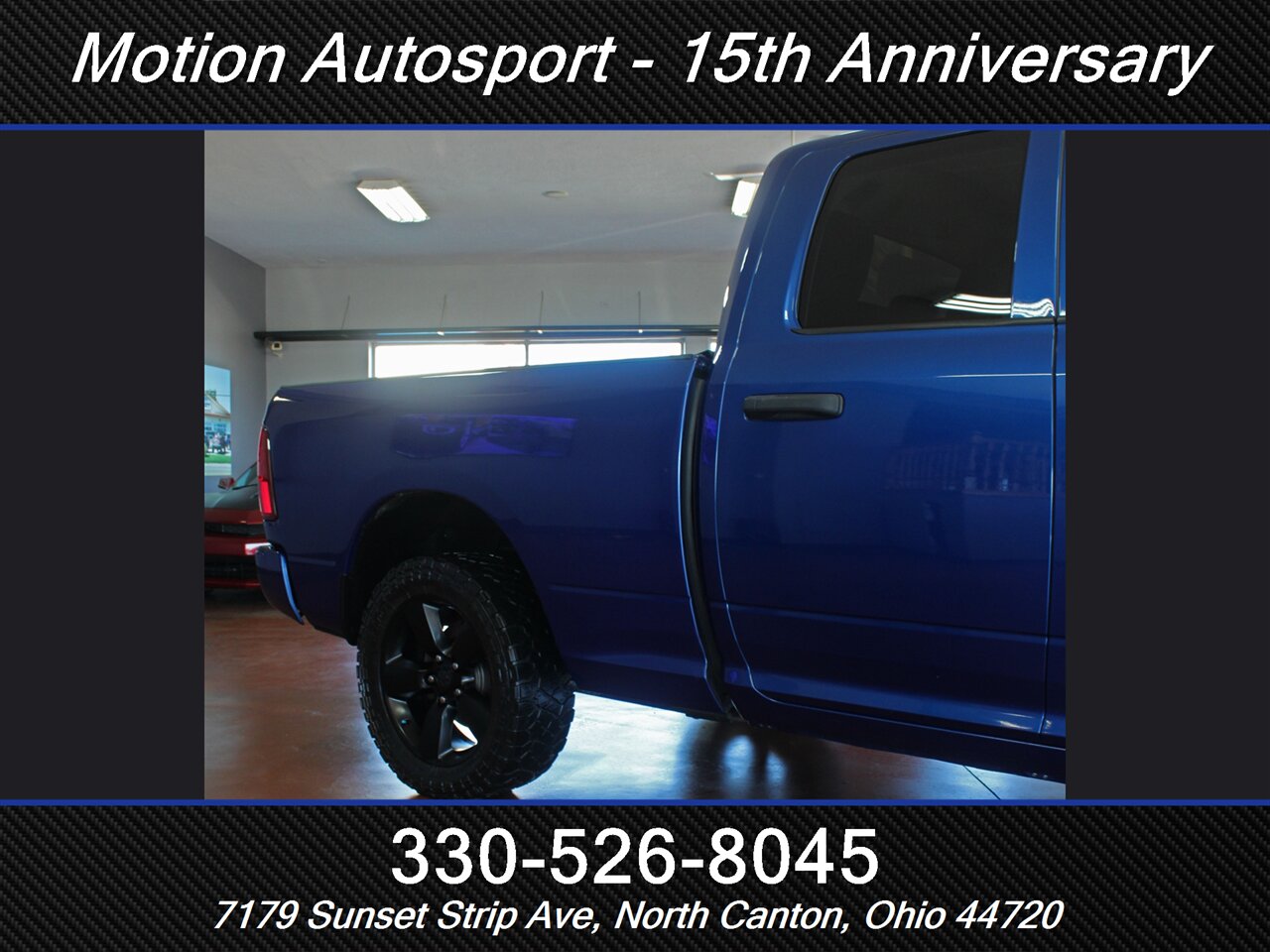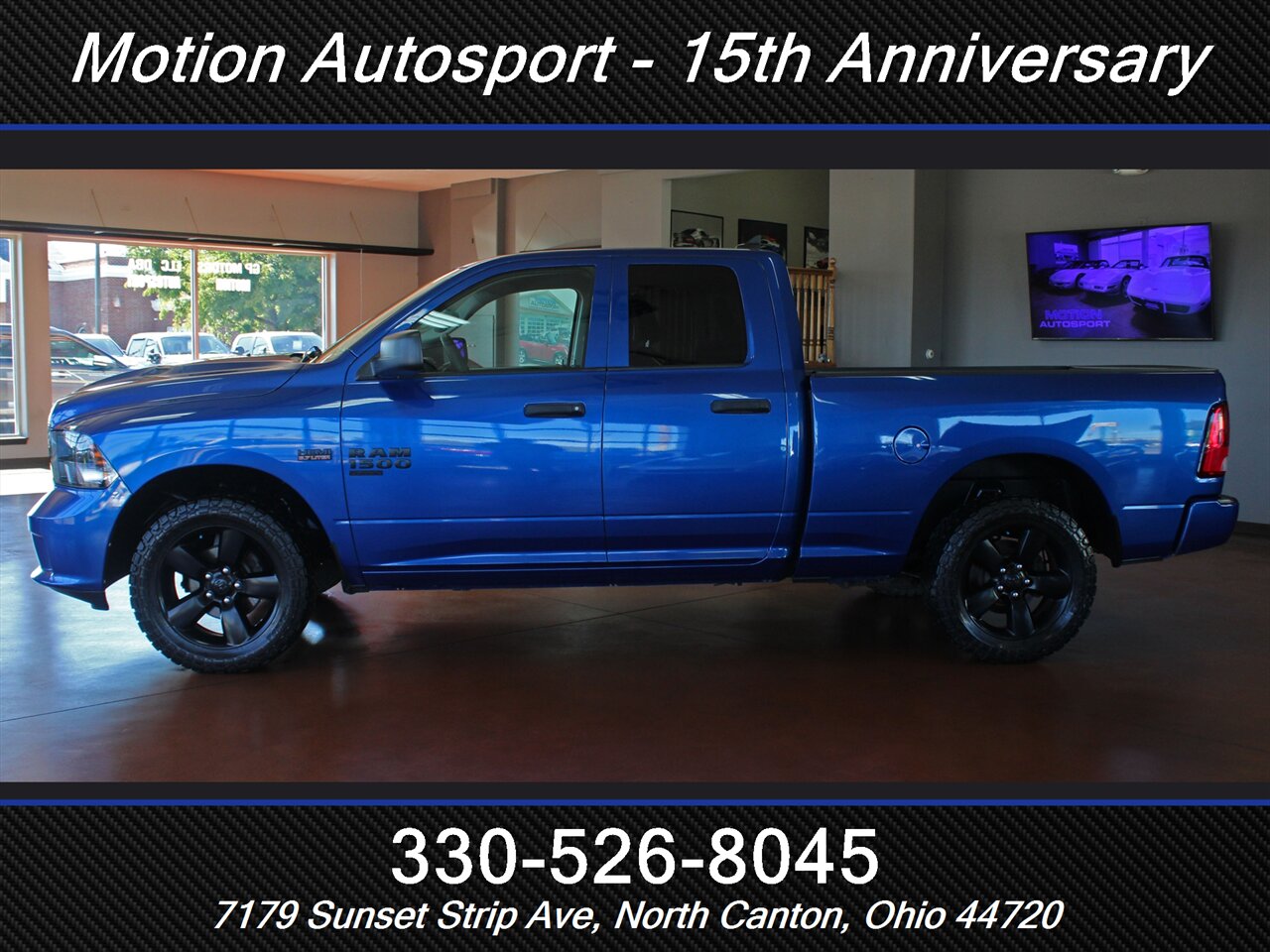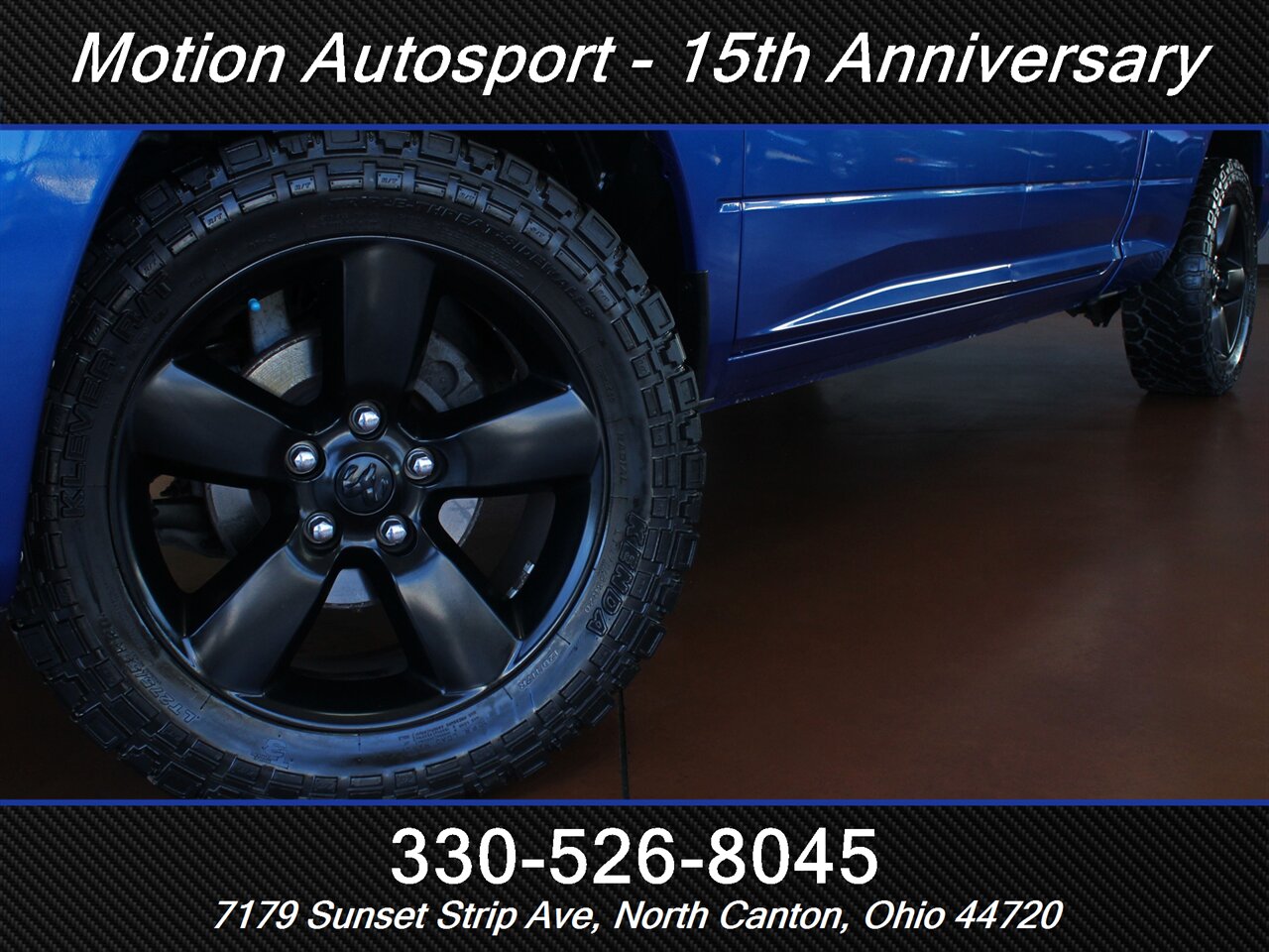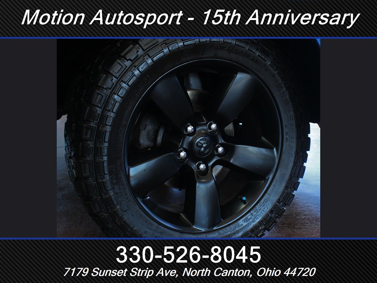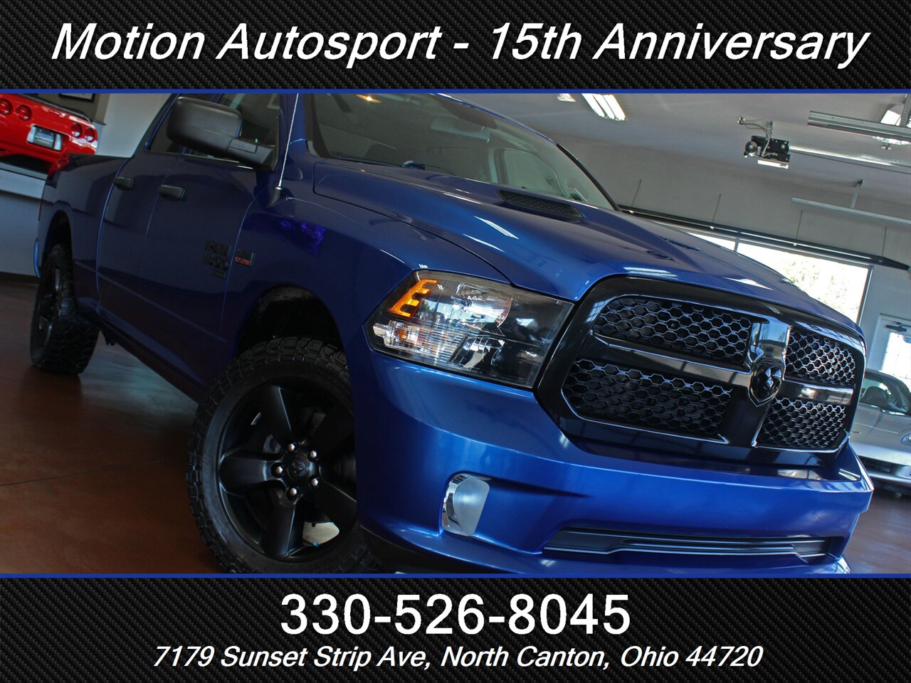BE THE BAD BOY ON THE BLOCK WITH THIS Night Edition Ram! Loaded Express with the rare Night Edition Package! Stunning and rare true blue metallic paint, touch screen audio, back up, Uconnect, fresh service and an impeccable Carfax! ONLY 70,000 VERY WELL KEPT MILES! Ask us about our spectacular financing and extended service contracts. We take trades and ship vehicles nationwide. Visit www.motionautosport.com for 60 detailed photos. Internet price is dealer finance only. Cash price is 26,966. Call Brandon for more detail at 330-526-8045