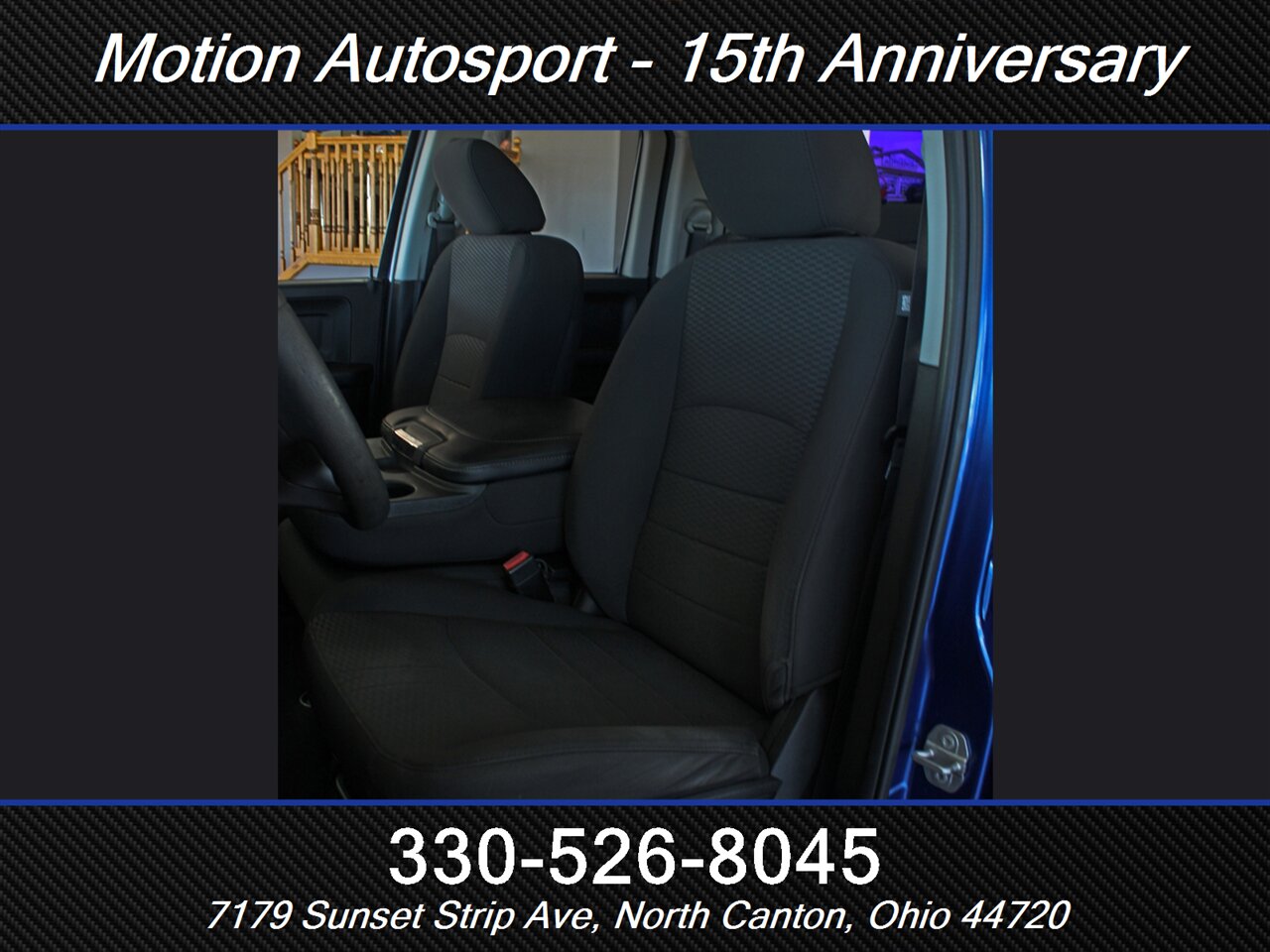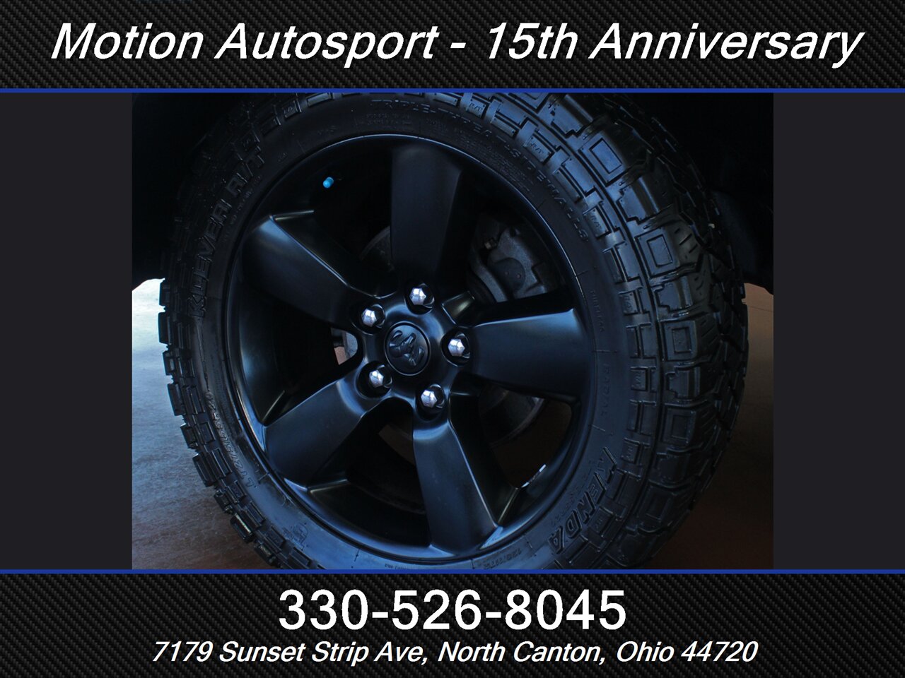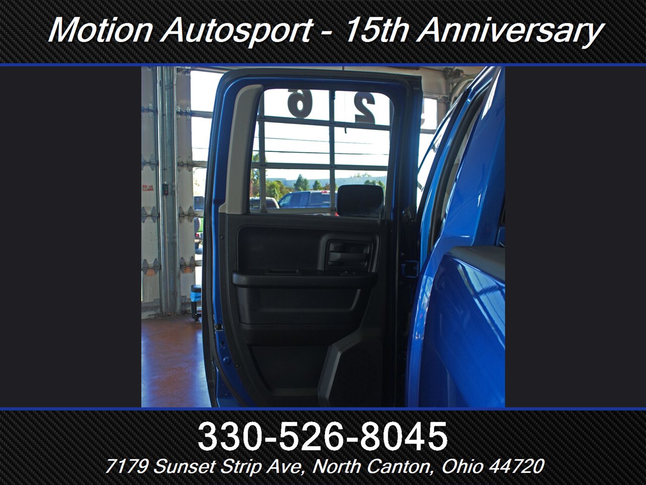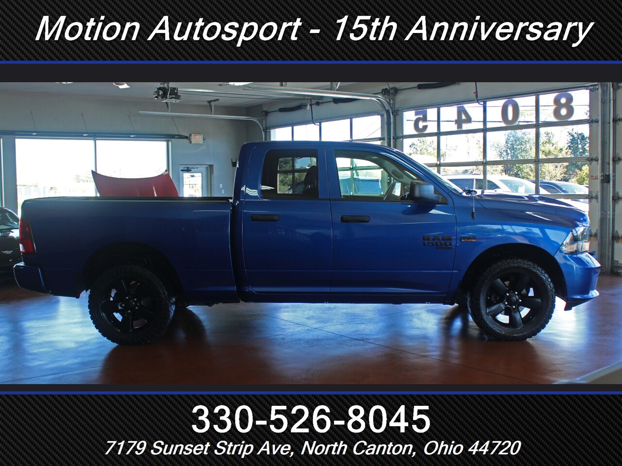 BE THE BAD BOY ON THE BLOCK WITH THIS Night Edition Ram! Loaded Express with the rare Night Edition Package! Stunning and rare true blue metallic paint, touch screen audio, back up, Uconnect, fresh service and an impeccable Carfax! ONLY 70,000 VERY WELL KEPT MILES! Ask us about our spectacular financing and extended service contracts. We take trades and ship vehicles nationwide. Visit www.motionautosport.com for 60 detailed photos. Internet price is dealer finance only. Cash price is 26,966. Call Brandon for more detail at 330-526-8045