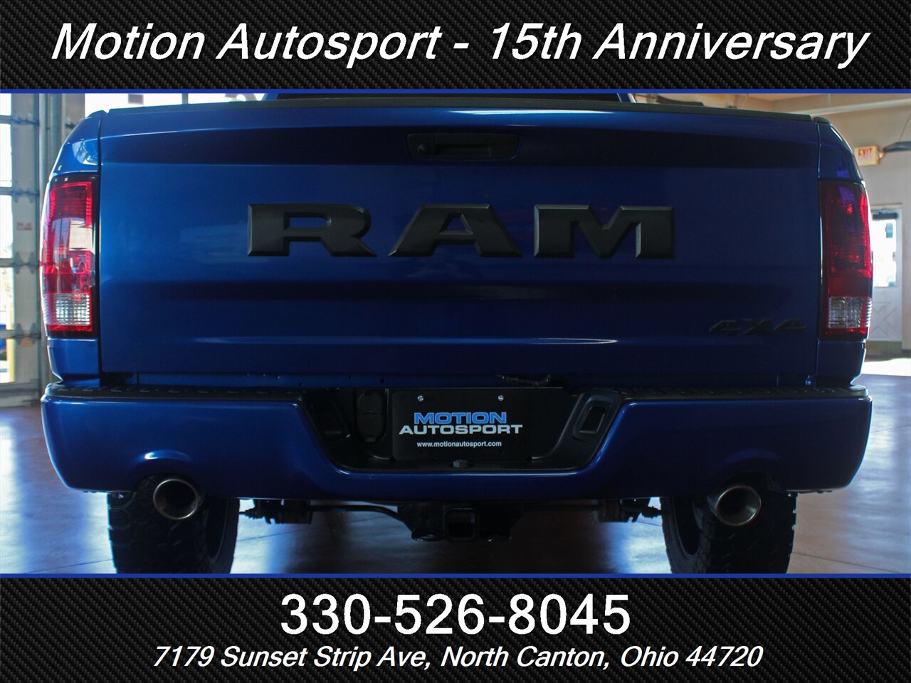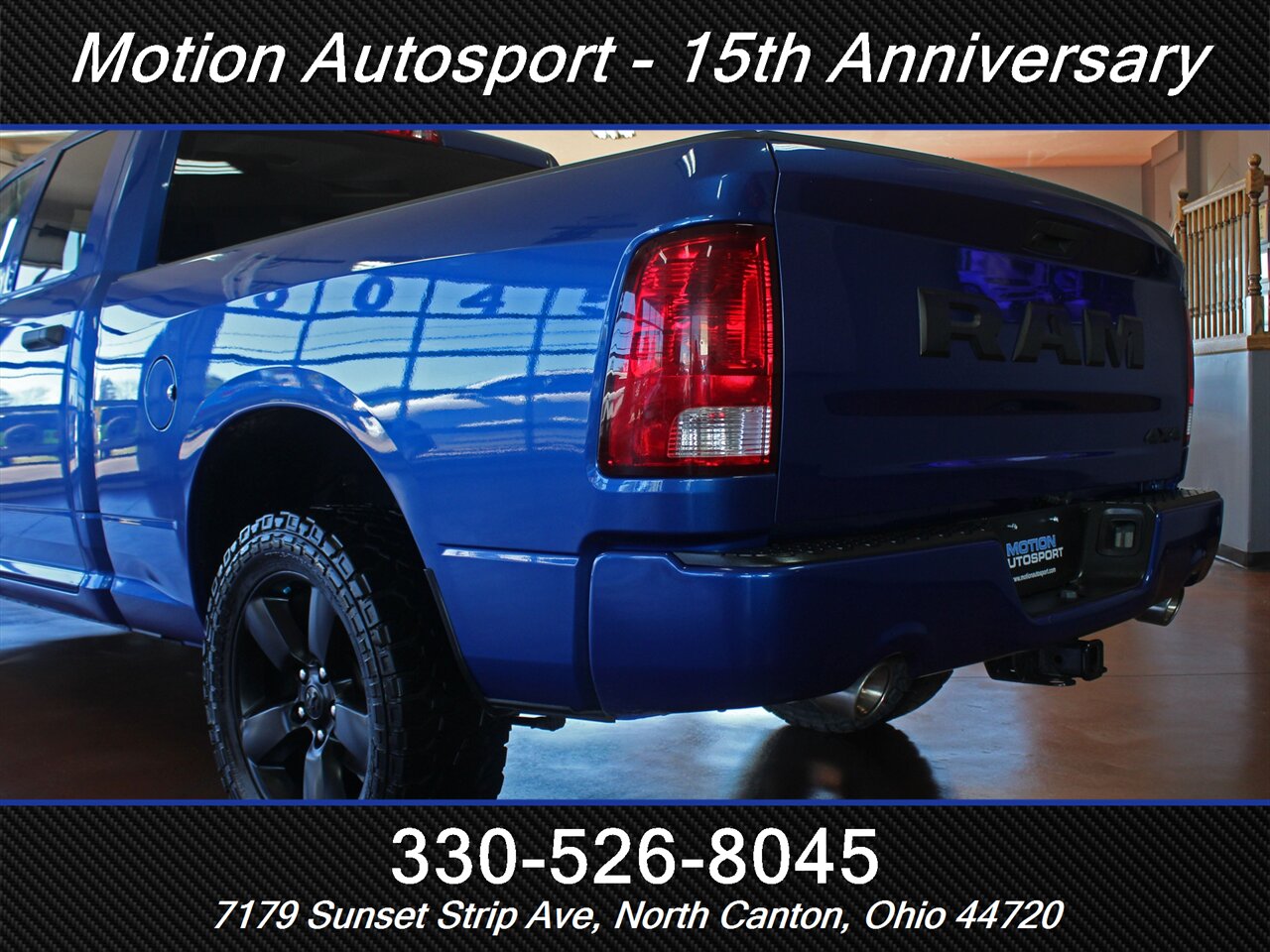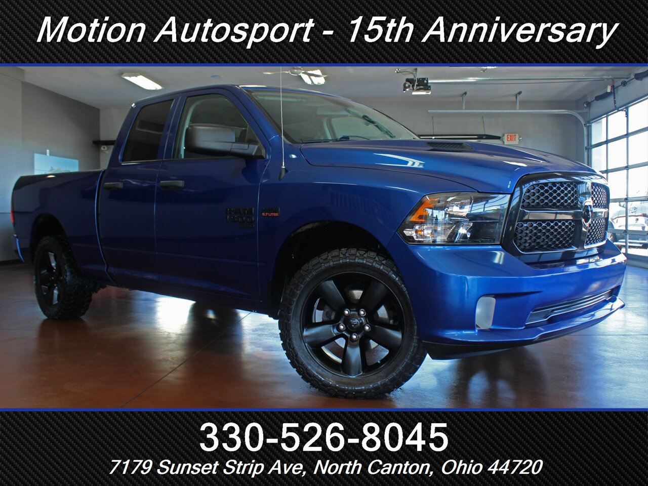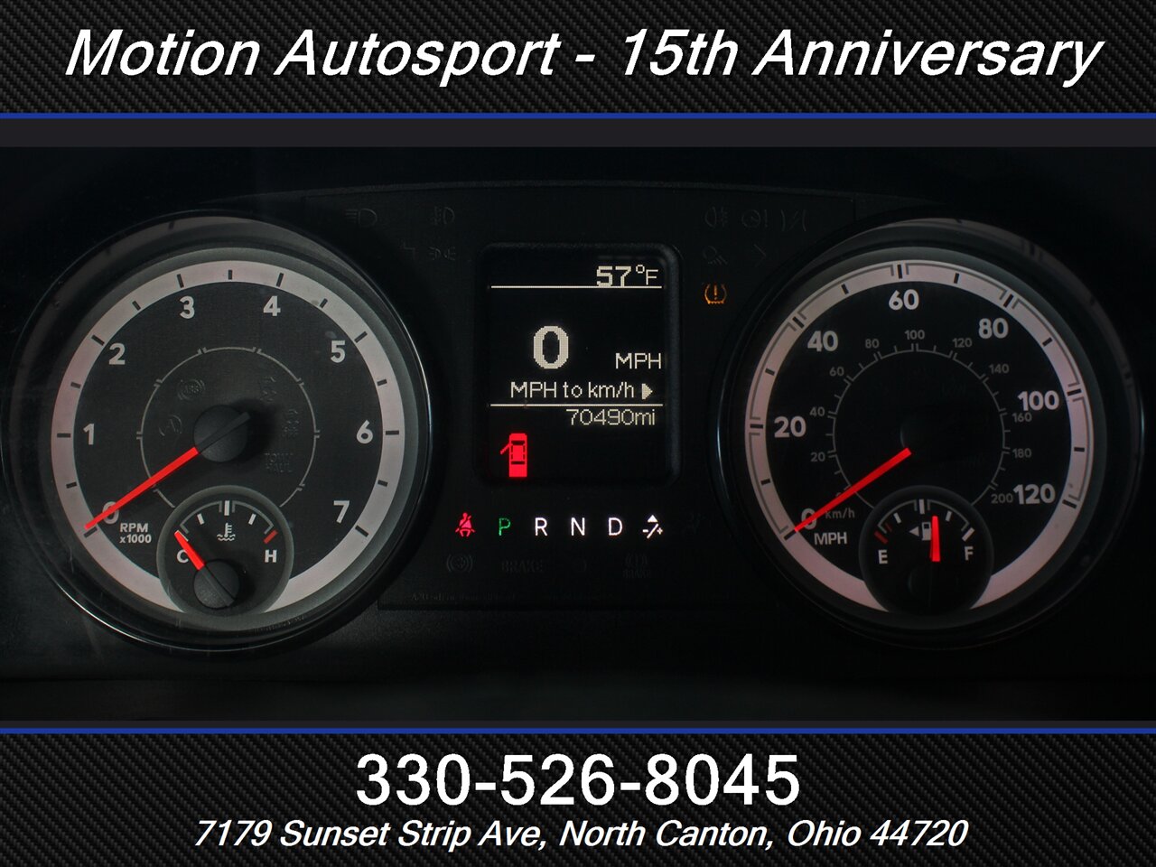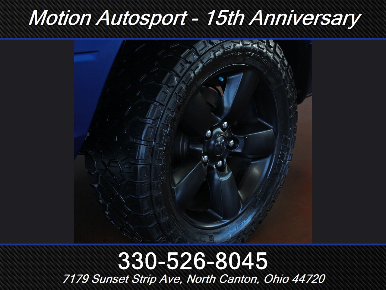 BE THE BAD BOY ON THE BLOCK WITH THIS Night Edition Ram! Loaded Express with the rare Night Edition Package! Stunning and rare true blue metallic paint, touch screen audio, back up, Uconnect, fresh service and an impeccable Carfax! ONLY 70,000 VERY WELL KEPT MILES! Ask us about our spectacular financing and extended service contracts. We take trades and ship vehicles nationwide. Visit www.motionautosport.com for 60 detailed photos. Internet price is dealer finance only. Cash price is 26,966. Call Brandon for more detail at 330-526-8045