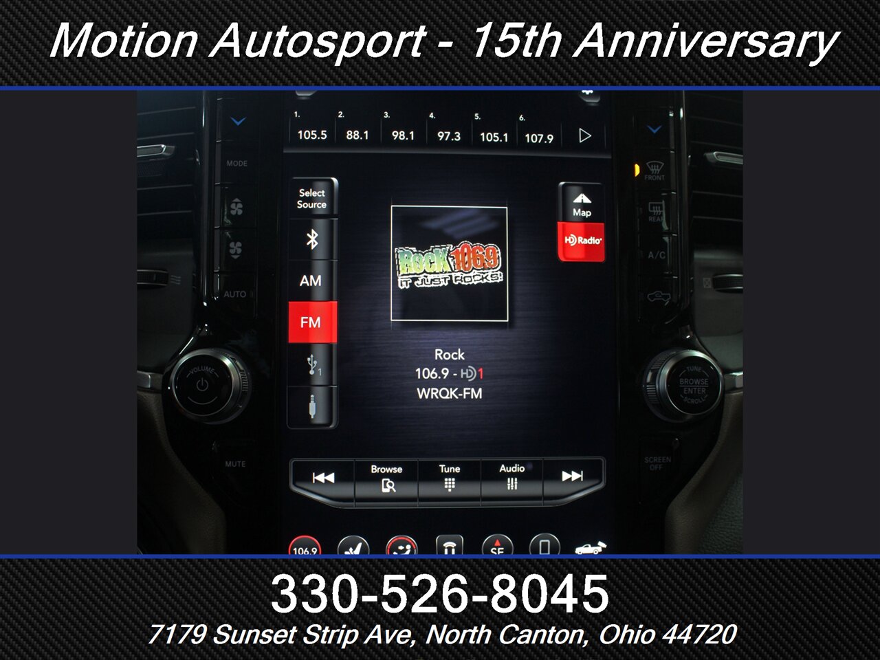 - Radio: AM/FM, touch screen display, voice operated