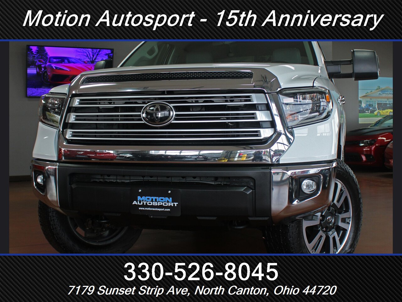 Another absolutely stunning Tundra! Only 81,000 miles and absolutely impeccable condition! Fully loaded Limited package Crew Max with the TRD Off road package, moon roof, navigation, GRAY LEATHER, small lift kit or front level kit, and finished in very popular super white! NOT AN EASY TRUCK TO FIND SO DO NOT WAIT TO CALL! ABSOLUTELY MINT CONDITION INSIDE AND OUT! THIS BAD BOY WILL NOT LAST! Comes complete with fresh service and detail and an impeccable Carfax! Ask us about our spectacular financing and extended service contracts. We take trades and ship vehicles nationwide. Visit www.motionautosport.com for 60 detailed photos. Call Mike for more details at 330-526-8045. Internet price is a finance price only. Visit our website for full pricing details